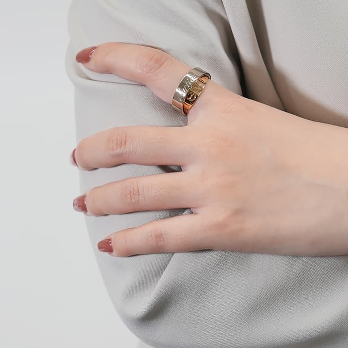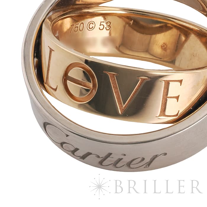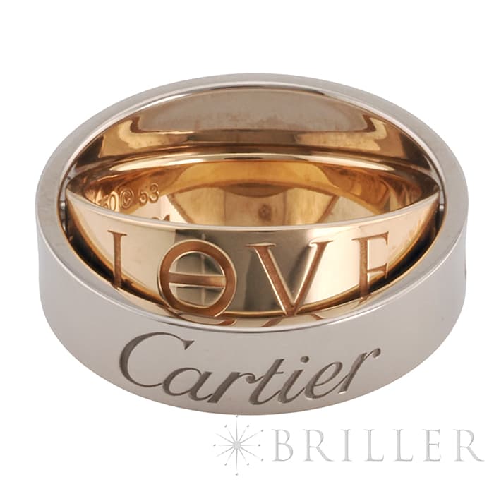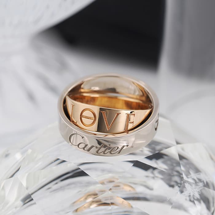 フランスで誕生し世界五大ジュエラーの一角である「カルティエ」。独創的なデザインや技術力の高さから圧倒的な支持を受けるブランドです。「LOVE」シリーズは人気が高くビスモチーフがデザインされているのが特徴。こちらの「シークレット ラブ リング」は2005年にホリデーシーズン限定モデルとして発表されました。外側のホワイトゴールドリングにはカルティエのロゴとビスがデザインされ、内側のピンクゴールドリングには「LOVE」コレクションのロゴがデザインされています。内側のリングを回転させることで、ペンダントトップとしても使用可能なデザインです。
