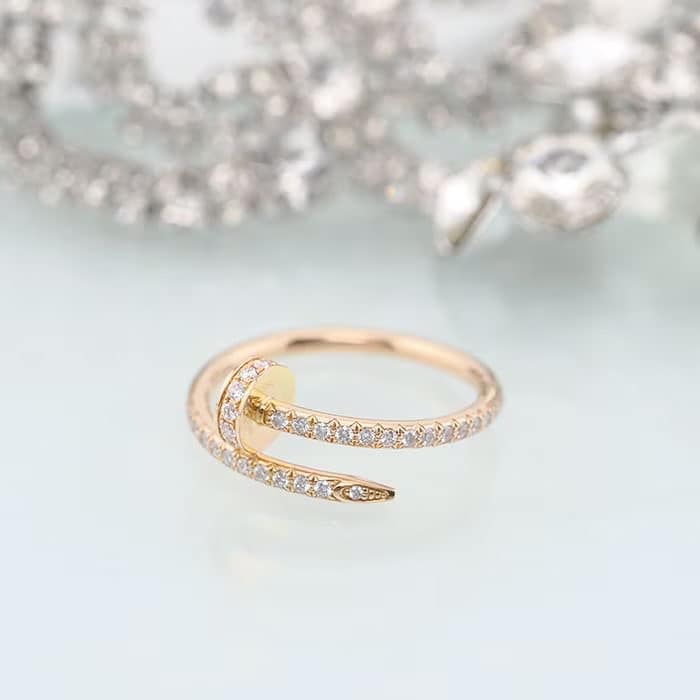 フランスで誕生し、独創的なデザインや技術力の高さから圧倒的な支持を受けるブランド「カルティエ」。1本の釘から誕生したジュエリー「ジュスト アンクル」は刺激的かつ力強さのあるコレクションです。肌なじみのよいピンクゴールドにダイヤモンドをセッティングしたこちらのリングは、エッジの効いた個性派ジュエリーとしておすすめです