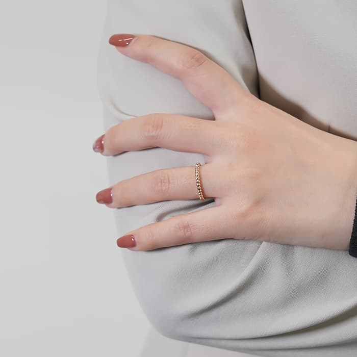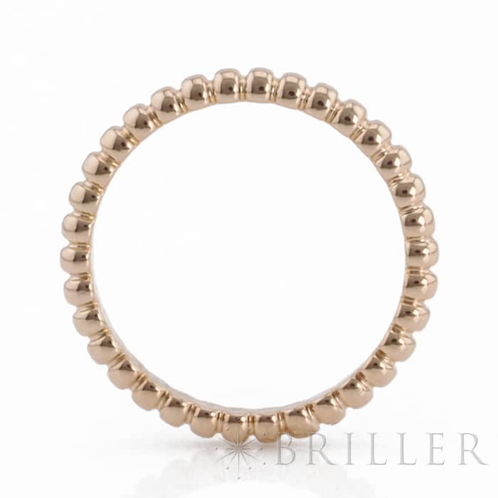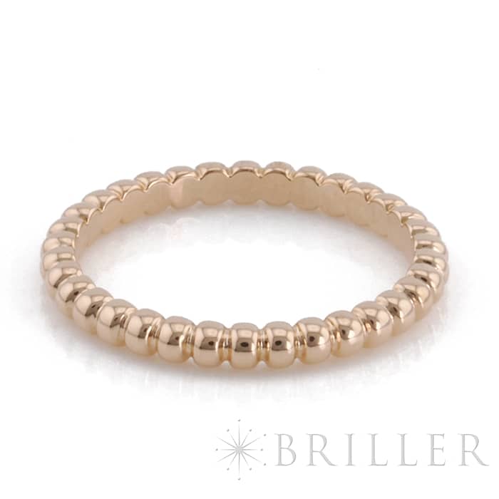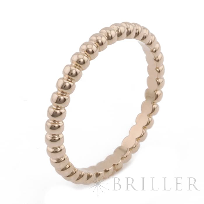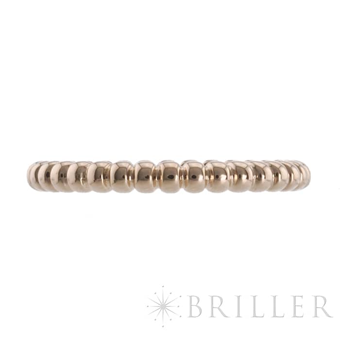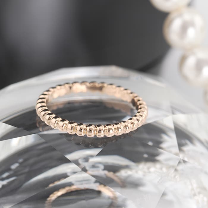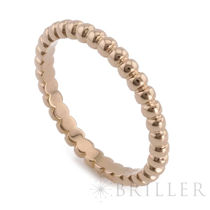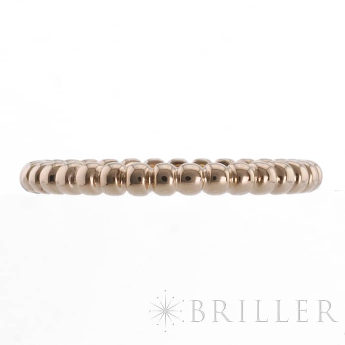 フランス語で真珠を意味する「ペルレ」。繊細なゴールドビーズがフェミニンな印象を演出する、ヴァンクリーフ&アーペルの技術の粋を集めたジュエリーコレクションです。温かみのある色合いのピンクゴールドは肌なじみがよく、他のリングと重ねても邪魔することなく調和するデザインはマルチに活躍し、装いの幅が広がりそうです。