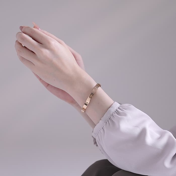世界5大ジュエラーのひとつである「カルティエ」。 1970年代にニューヨークで生まれたLOVE コレクションは、愛の絆を象徴するビスモチーフが特徴のコレクションです。 デザインの特徴でもあるビスを実際にドライバーで回して着脱を行うユニークな仕様。一人ではつけ外しができないことから「愛の絆」を表現しています。 シンプルなバングル形状ですので、ほかのジュエリーとの重ね付けにも違和感なくお使いいただけます。