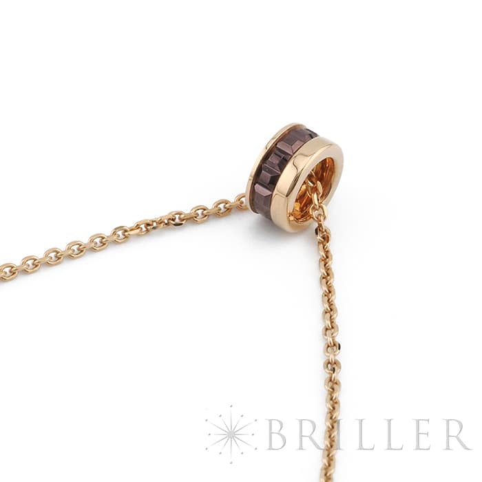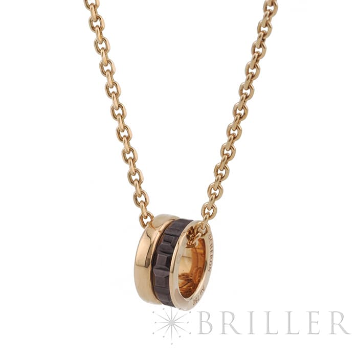 メレリオ・ショーメ・モーブッサン・ヴァンクリーフ&アーペルと共に、パリ5大ジュエラー「グランサンク」に数えられる「ブシュロン」。2004年に発表されたキャトルコレクションは多色のゴールドとテクスチャーが調和するモダンなデザインです。イエローゴールドとピンクゴールドにブラウンPVDのクル ド パリを組み合わせたペンダントネックレスです。