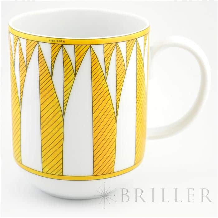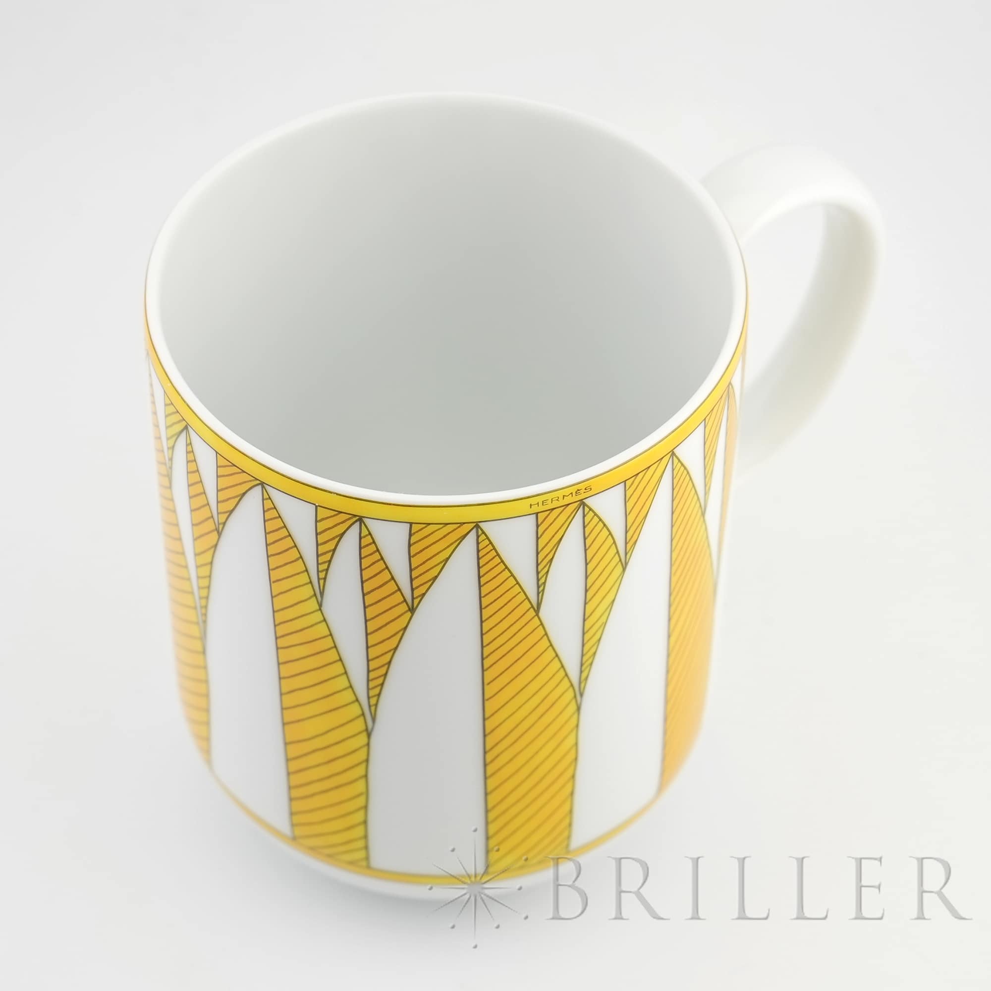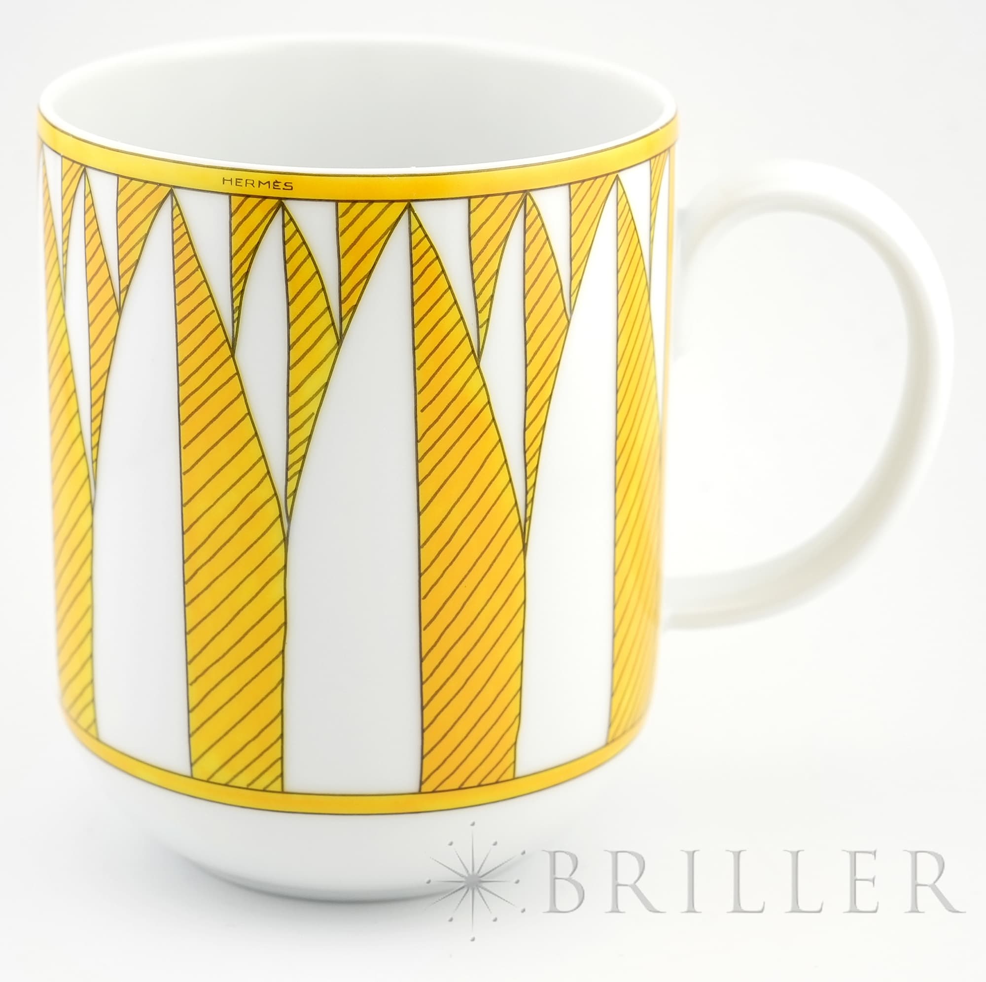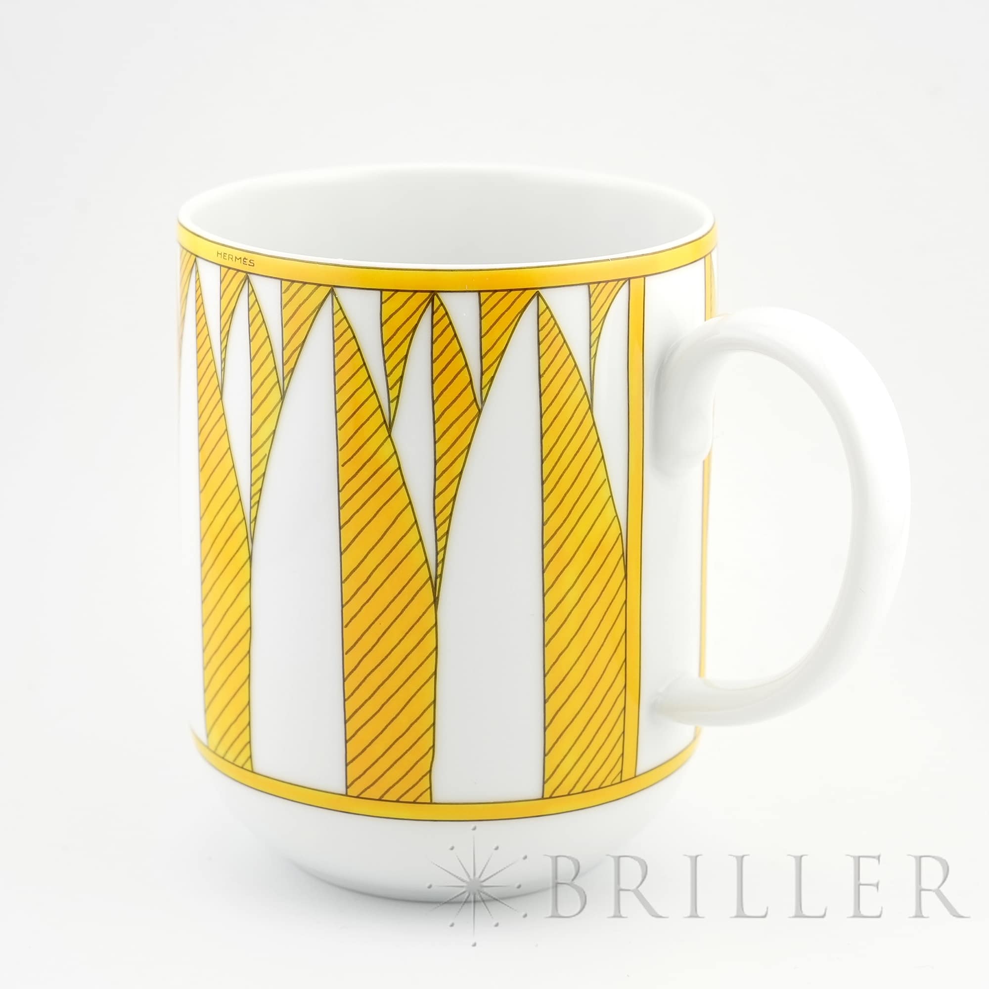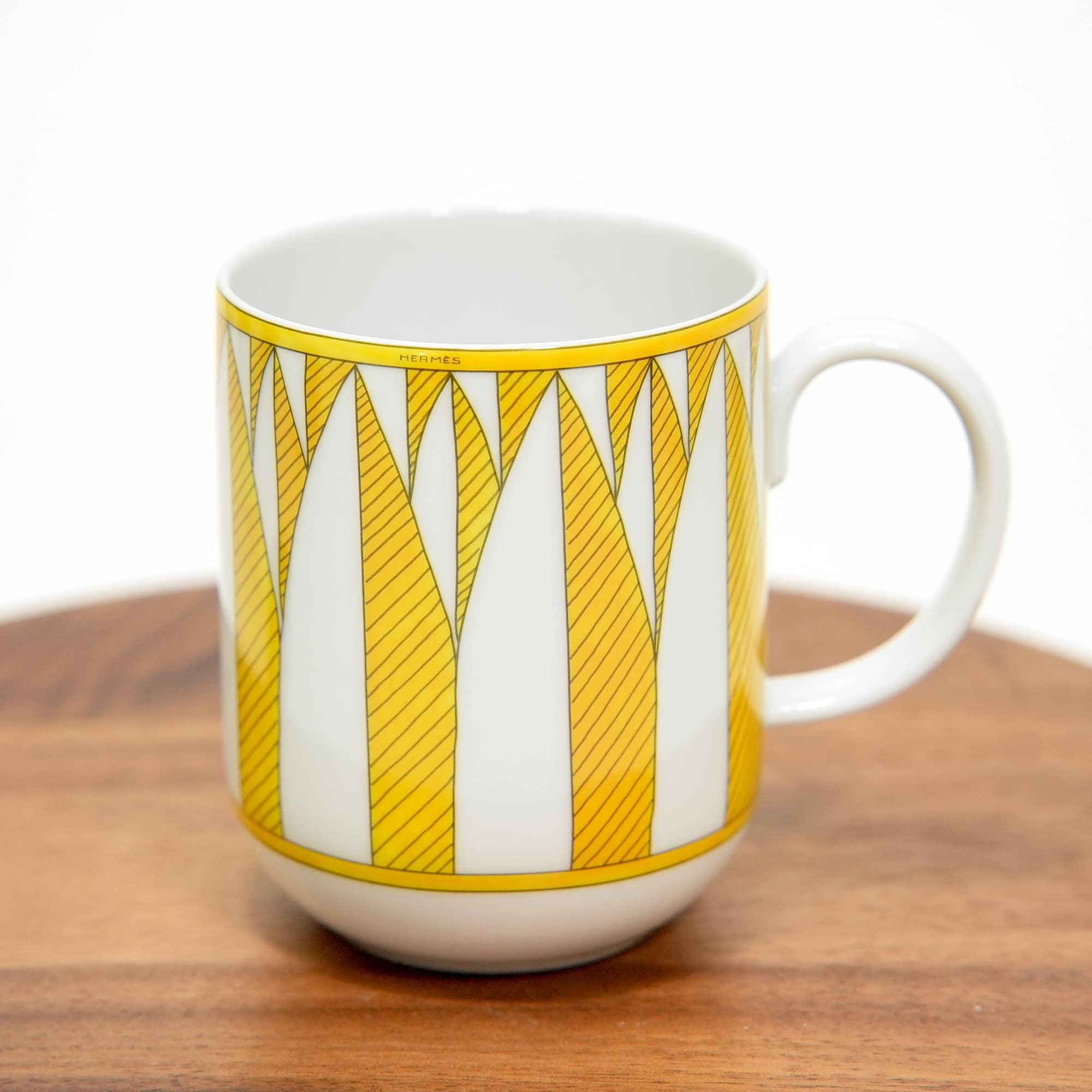 エルメス マグ ソレイユ・ドゥ・エルメス No2 HERMES地中海の陽光まぶしい夏の日々にインスピレーションを得たコレクション『ソレイユ』。デザイナーのアリエル・ド・ブリシャンボーによるホワイトポーセリンとイエロー、エネルギッシュなカラーが魅力的なシリーズです。ポーセリンの白に深いイエローが調和、細線で引き立てた万華鏡のように広がるパルメット模様。ビビットなイエローと縁取りやハッチングのダークグレーからは、その強いコントラストにより光と影を感じます。国内の正規店にて買い付けを行った新品コンディションのものを、「未使用品」と表記しております。一般のお客様から買取をしたお品物ではございませんのでご安心ください。使用不可能:電子レンジ、オーブン、トースター / 非推奨:食洗器、乾燥機