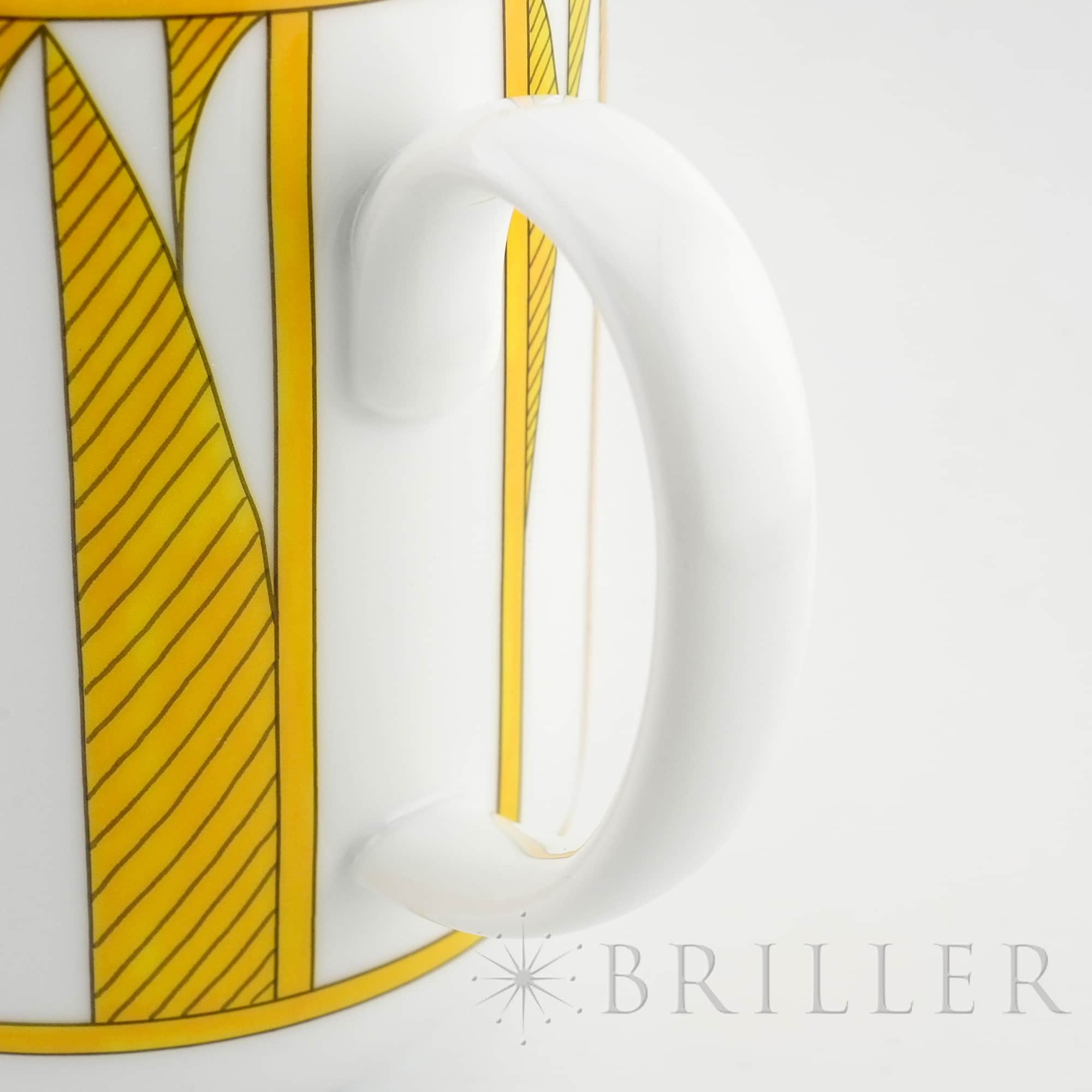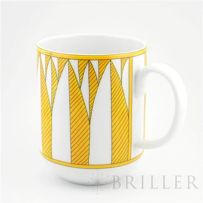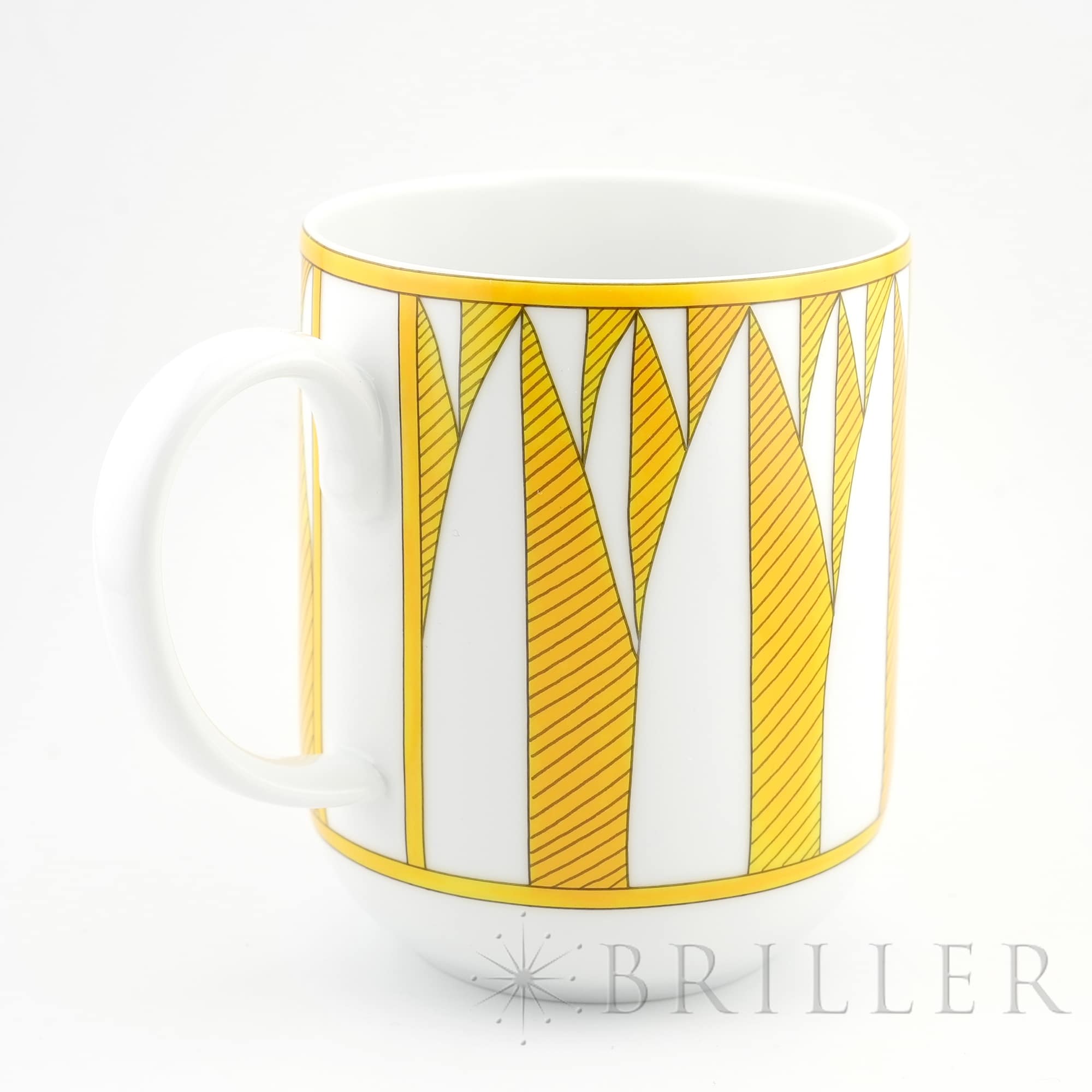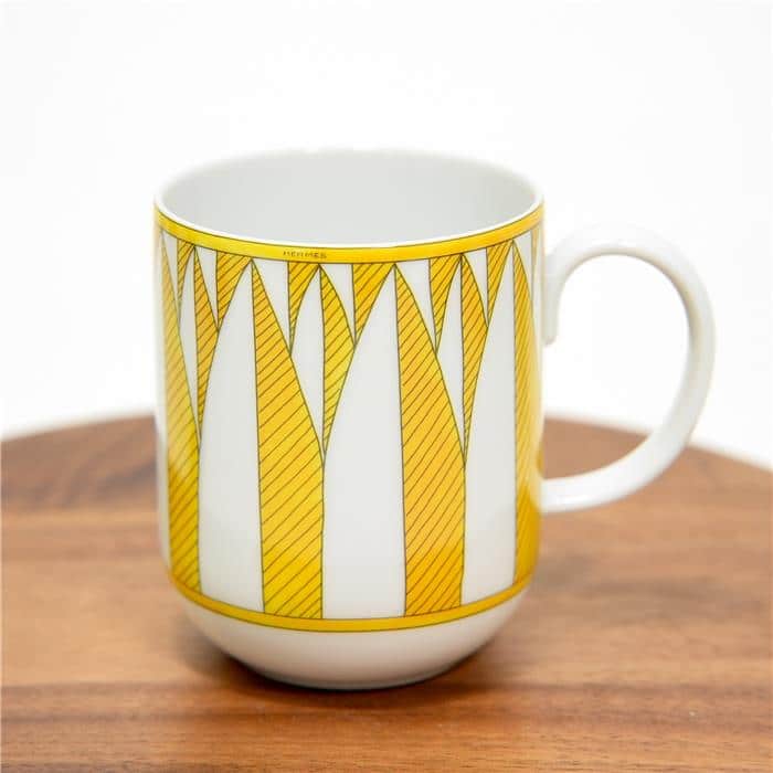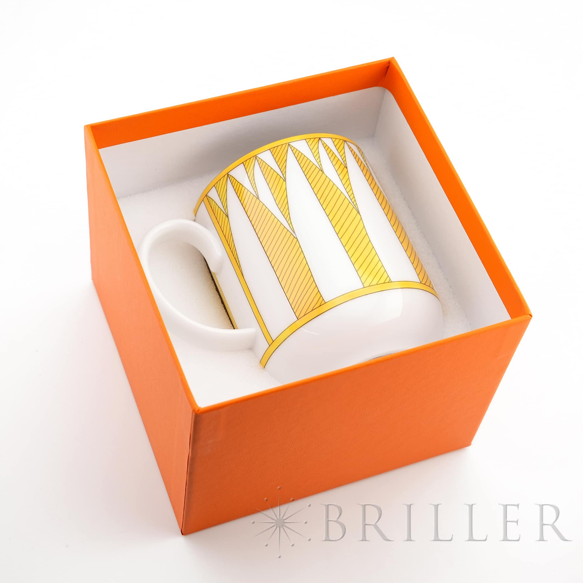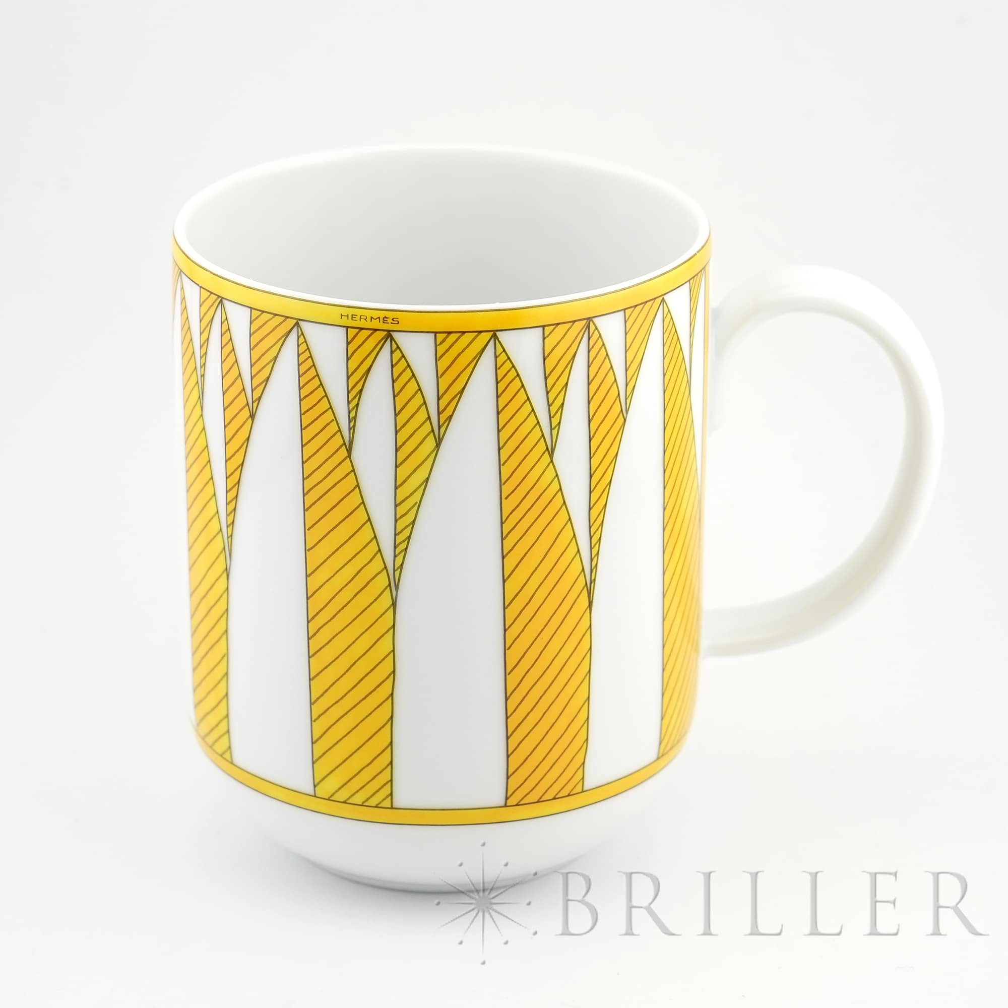 エルメス マグ ソレイユ・ドゥ・エルメス No2 HERMES地中海の陽光まぶしい夏の日々にインスピレーションを得たコレクション『ソレイユ』。デザイナーのアリエル・ド・ブリシャンボーによるホワイトポーセリンとイエロー、エネルギッシュなカラーが魅力的なシリーズです。ポーセリンの白に深いイエローが調和、細線で引き立てた万華鏡のように広がるパルメット模様。ビビットなイエローと縁取りやハッチングのダークグレーからは、その強いコントラストにより光と影を感じます。国内の正規店にて買い付けを行った新品コンディションのものを、「未使用品」と表記しております。一般のお客様から買取をしたお品物ではございませんのでご安心ください。使用不可能:電子レンジ、オーブン、トースター / 非推奨:食洗器、乾燥機