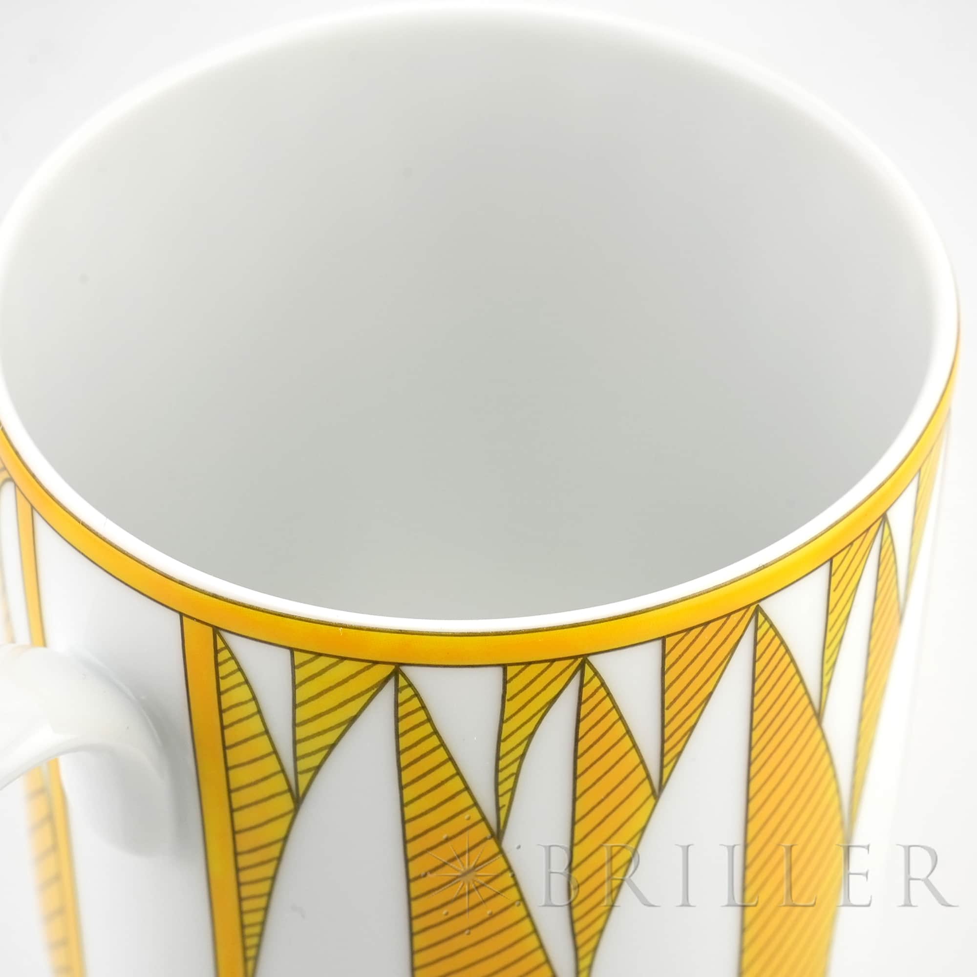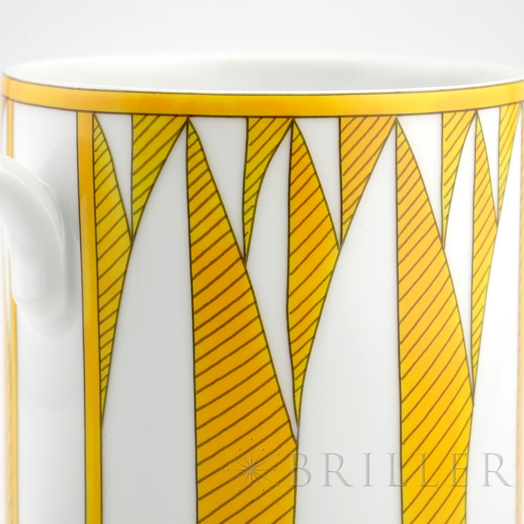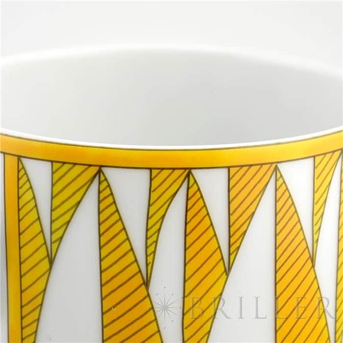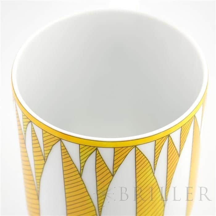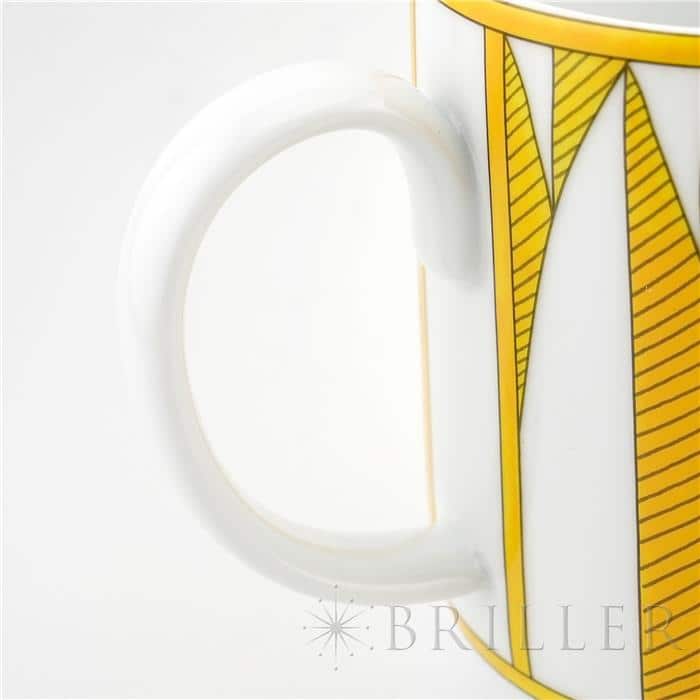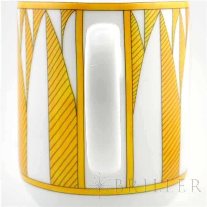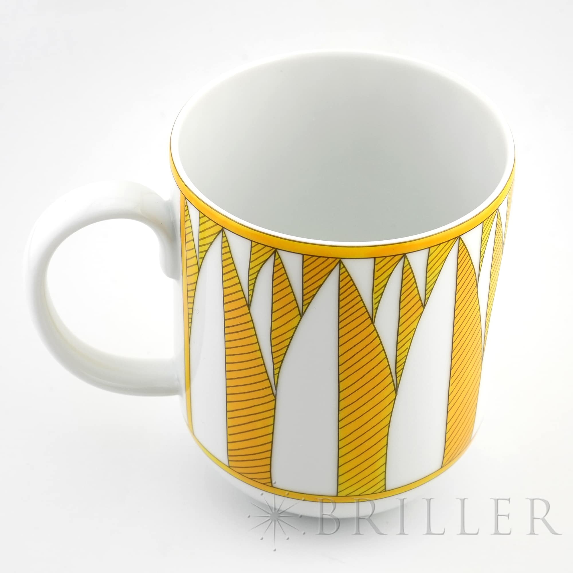 エルメス マグ ソレイユ・ドゥ・エルメス No2 HERMES地中海の陽光まぶしい夏の日々にインスピレーションを得たコレクション『ソレイユ』。デザイナーのアリエル・ド・ブリシャンボーによるホワイトポーセリンとイエロー、エネルギッシュなカラーが魅力的なシリーズです。ポーセリンの白に深いイエローが調和、細線で引き立てた万華鏡のように広がるパルメット模様。ビビットなイエローと縁取りやハッチングのダークグレーからは、その強いコントラストにより光と影を感じます。国内の正規店にて買い付けを行った新品コンディションのものを、「未使用品」と表記しております。一般のお客様から買取をしたお品物ではございませんのでご安心ください。使用不可能:電子レンジ、オーブン、トースター / 非推奨:食洗器、乾燥機