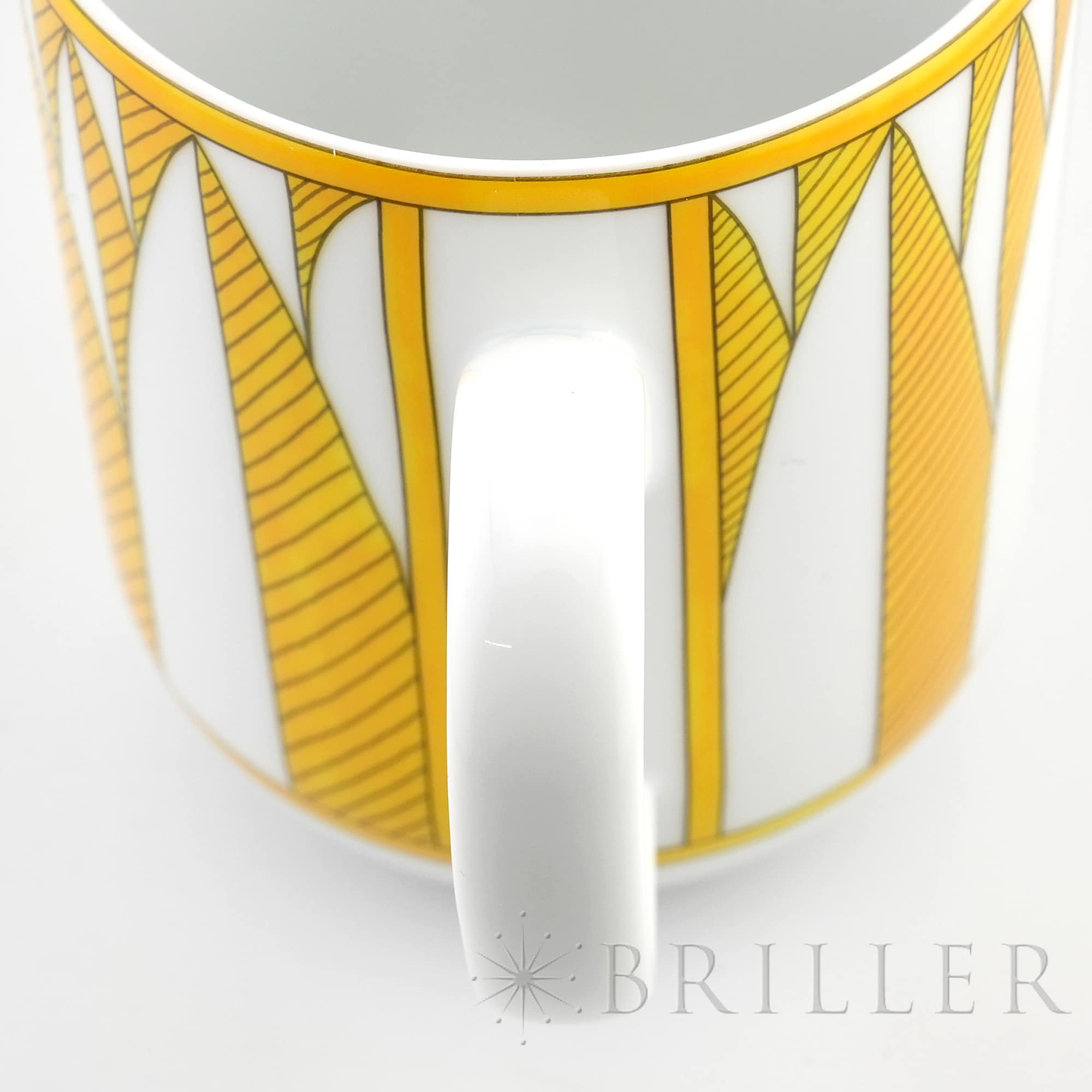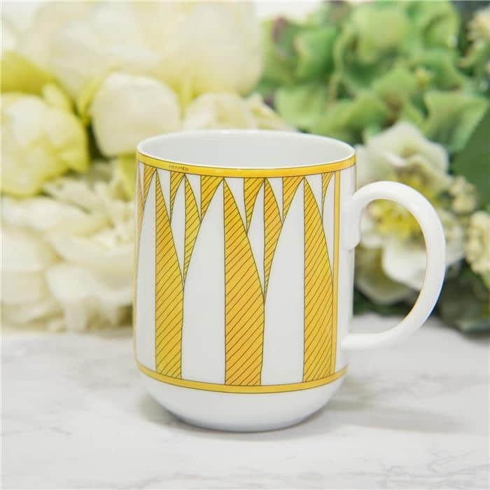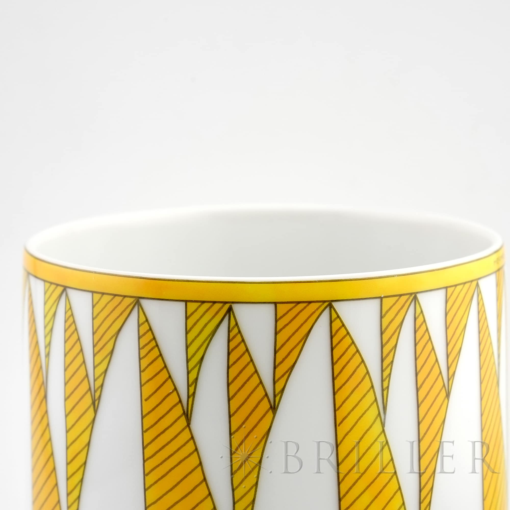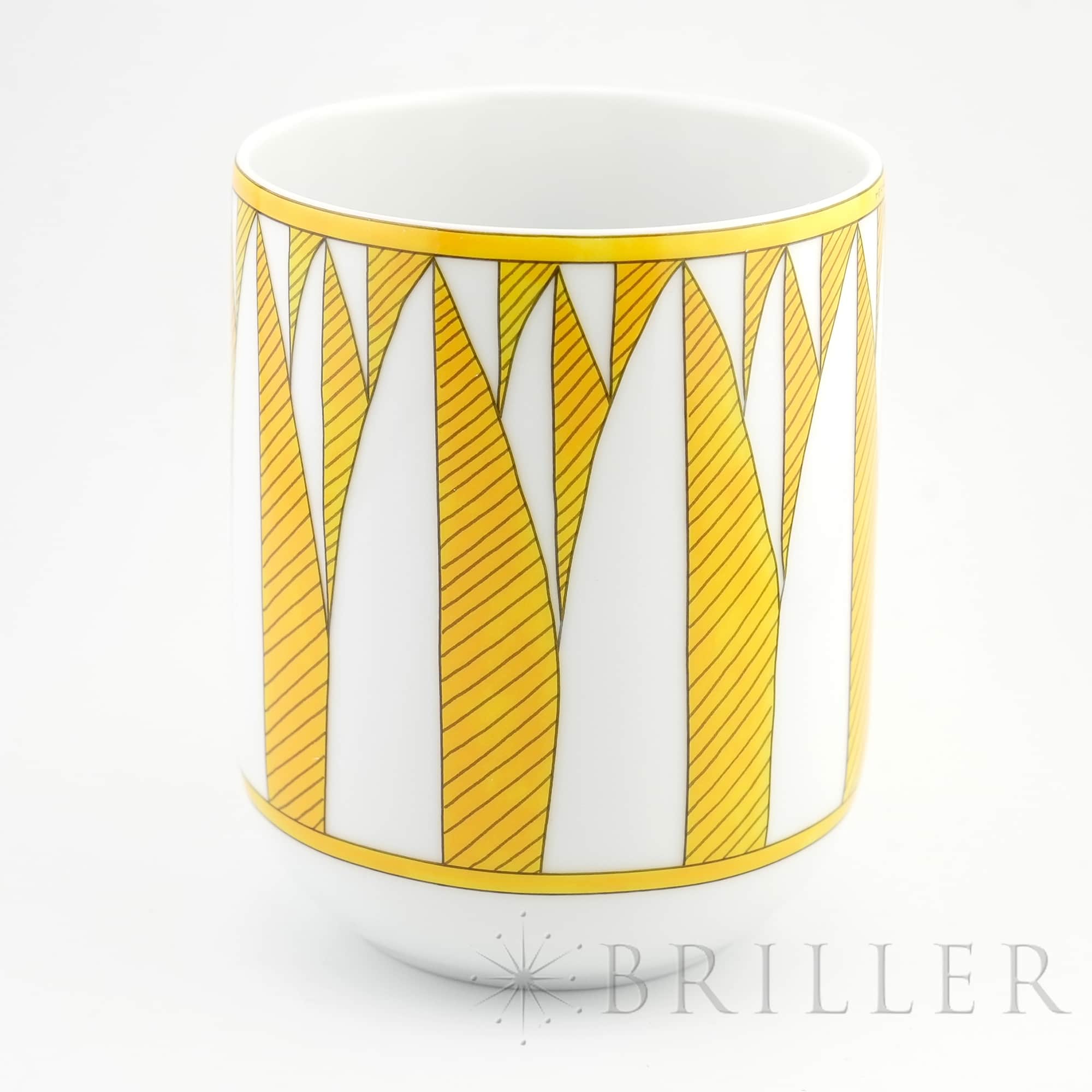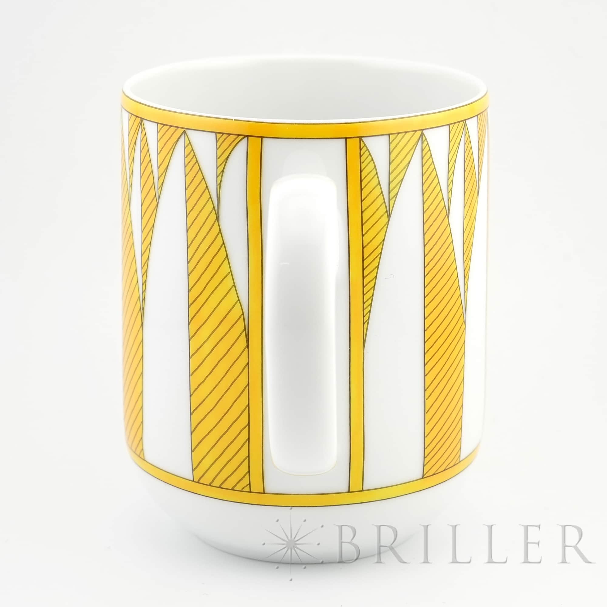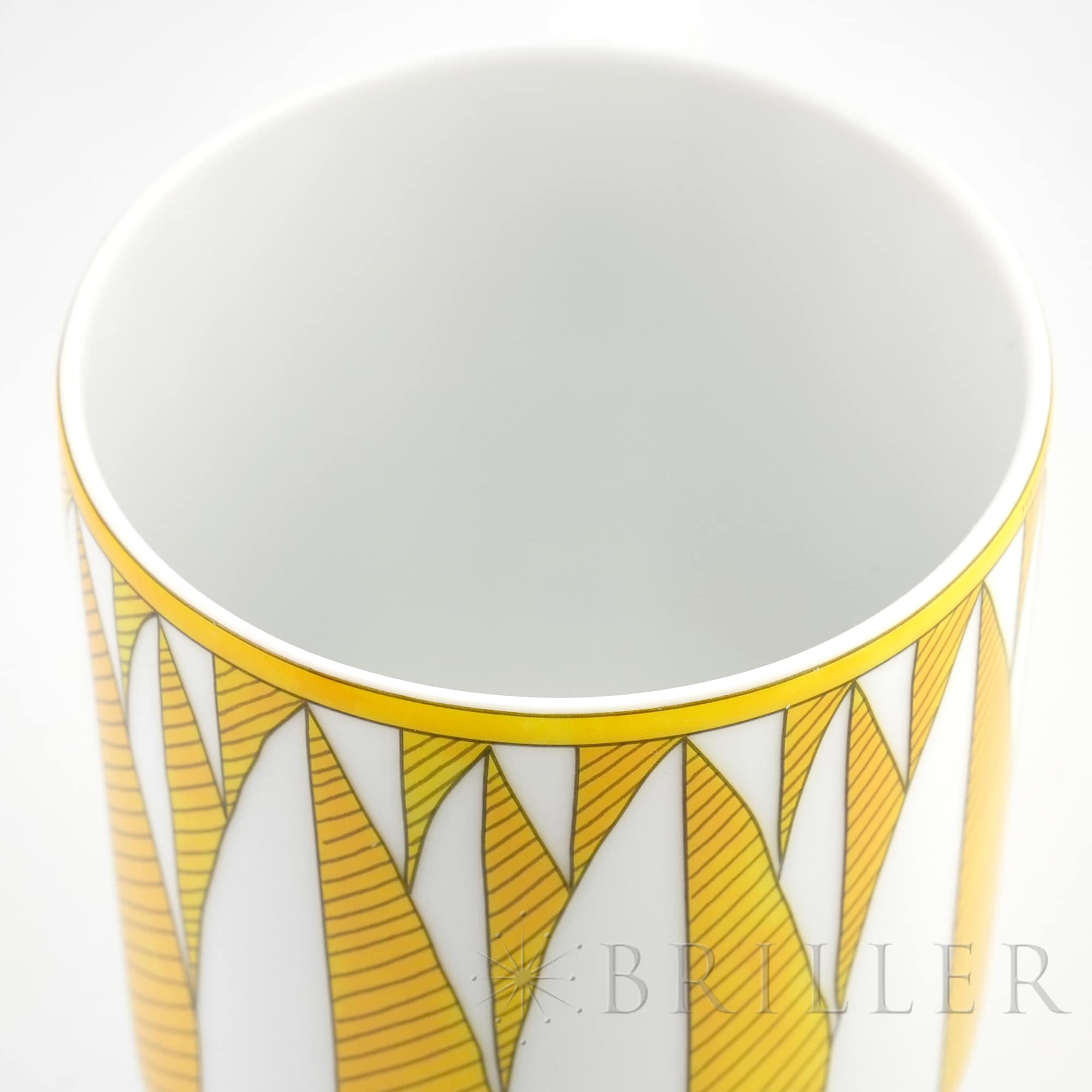 エルメス マグ ソレイユ・ドゥ・エルメス No2 HERMES地中海の陽光まぶしい夏の日々にインスピレーションを得たコレクション『ソレイユ』。デザイナーのアリエル・ド・ブリシャンボーによるホワイトポーセリンとイエロー、エネルギッシュなカラーが魅力的なシリーズです。ポーセリンの白に深いイエローが調和、細線で引き立てた万華鏡のように広がるパルメット模様。ビビットなイエローと縁取りやハッチングのダークグレーからは、その強いコントラストにより光と影を感じます。国内の正規店にて買い付けを行った新品コンディションのものを、「未使用品」と表記しております。一般のお客様から買取をしたお品物ではございませんのでご安心ください。使用不可能:電子レンジ、オーブン、トースター / 非推奨:食洗器、乾燥機
