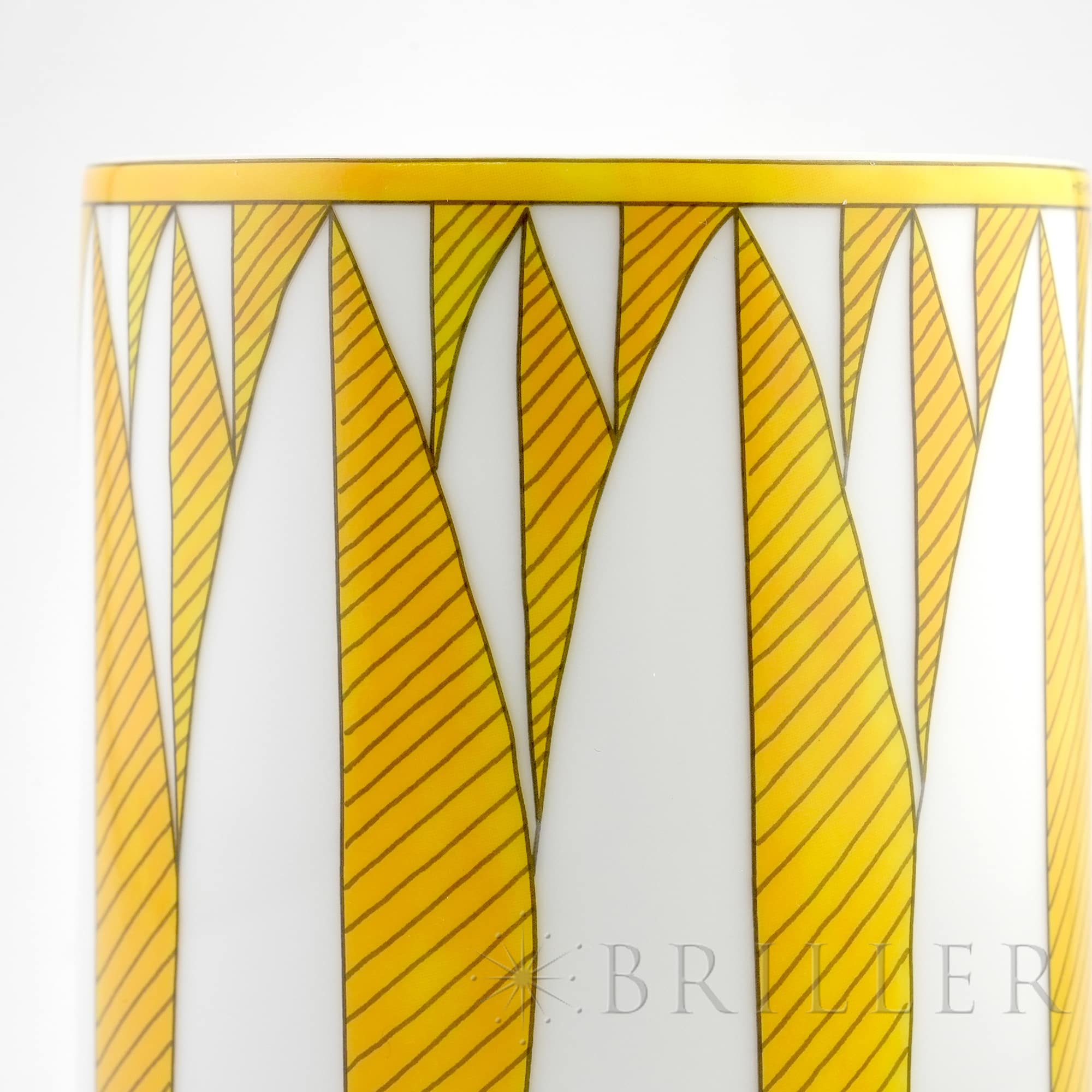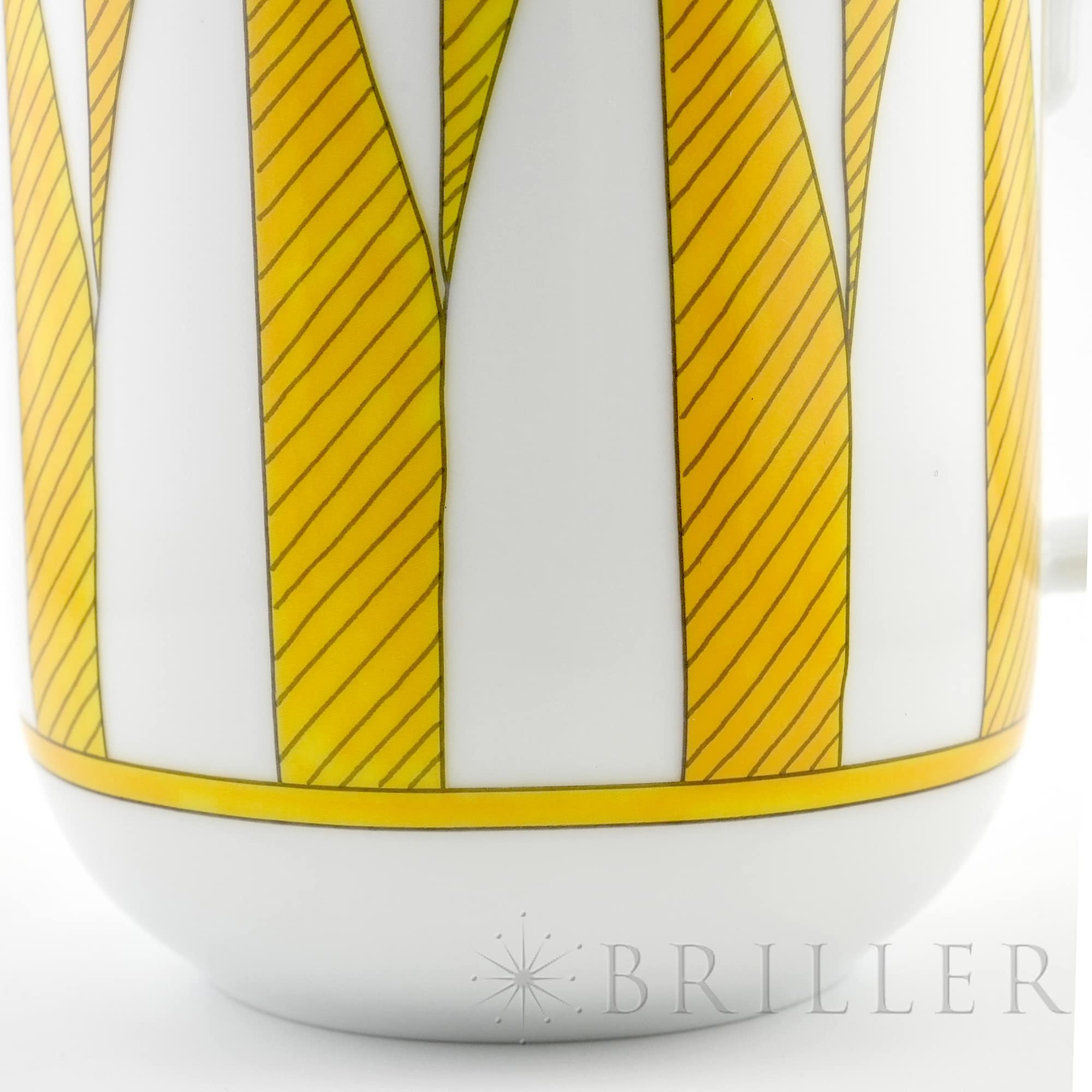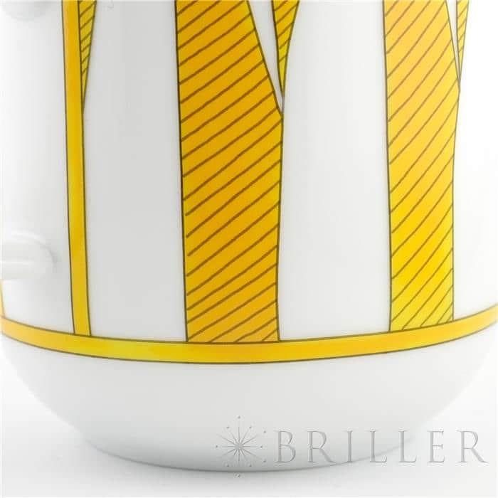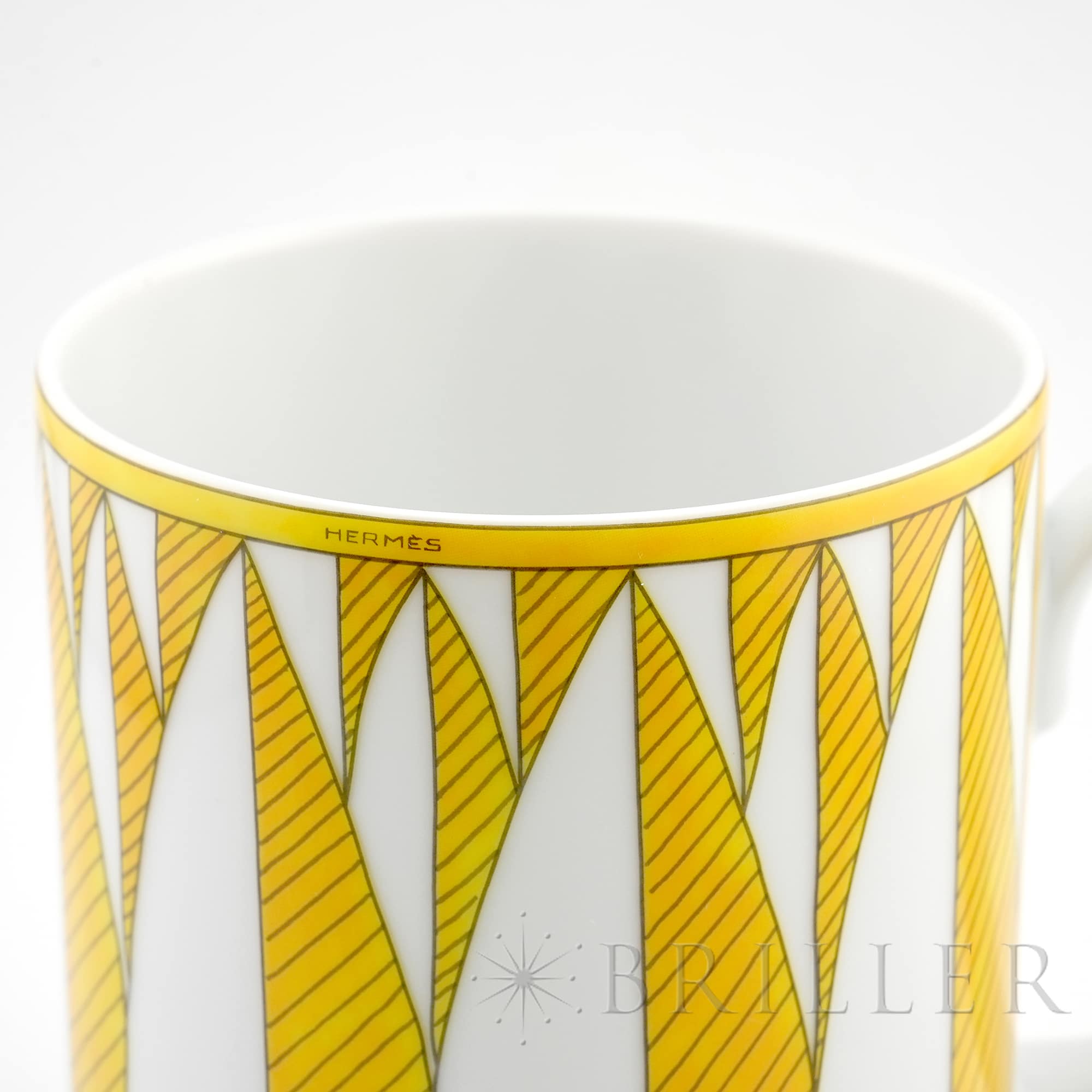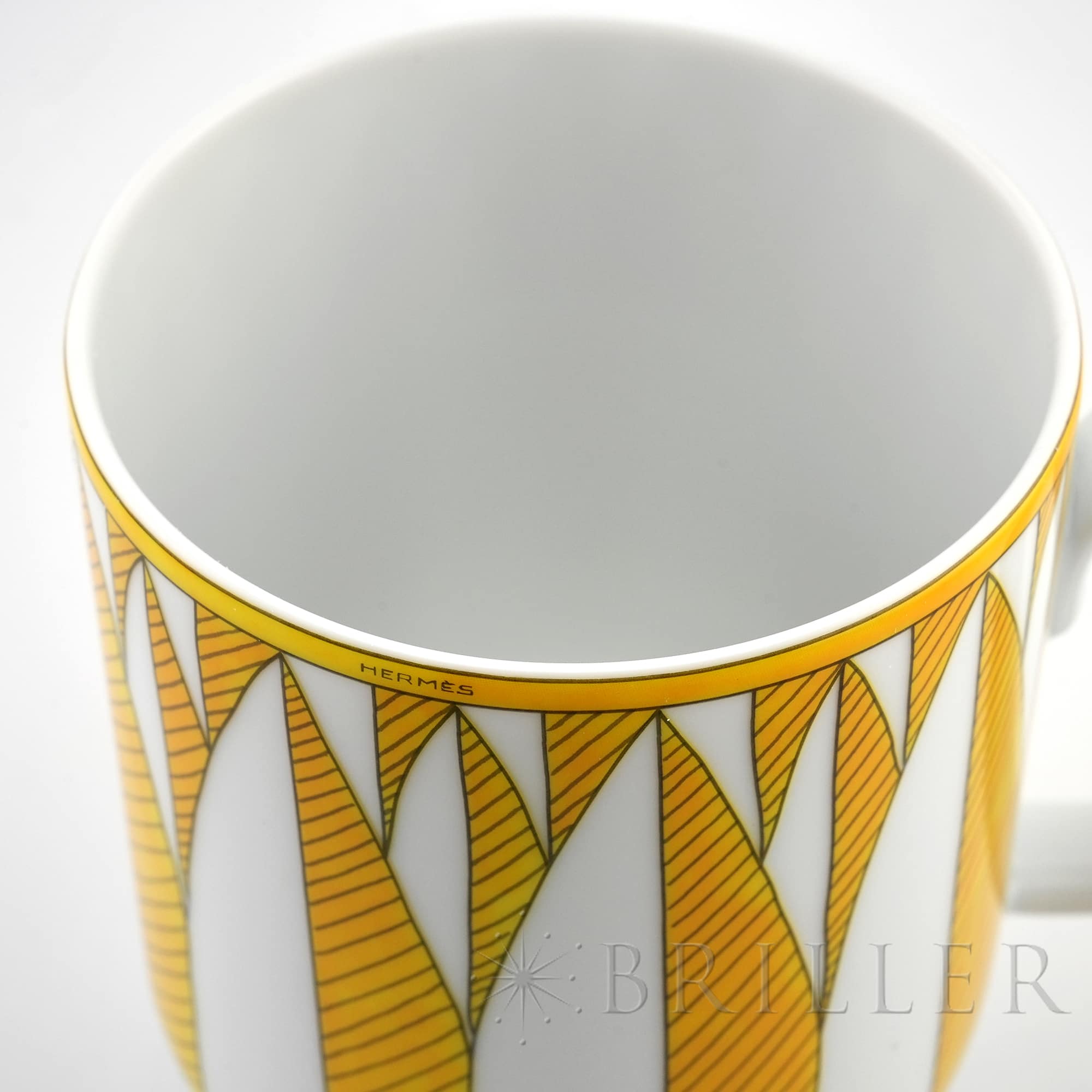 エルメス マグ ソレイユ・ドゥ・エルメス No2 HERMES地中海の陽光まぶしい夏の日々にインスピレーションを得たコレクション『ソレイユ』。デザイナーのアリエル・ド・ブリシャンボーによるホワイトポーセリンとイエロー、エネルギッシュなカラーが魅力的なシリーズです。ポーセリンの白に深いイエローが調和、細線で引き立てた万華鏡のように広がるパルメット模様。ビビットなイエローと縁取りやハッチングのダークグレーからは、その強いコントラストにより光と影を感じます。国内の正規店にて買い付けを行った新品コンディションのものを、「未使用品」と表記しております。一般のお客様から買取をしたお品物ではございませんのでご安心ください。使用不可能:電子レンジ、オーブン、トースター / 非推奨:食洗器、乾燥機