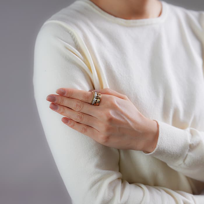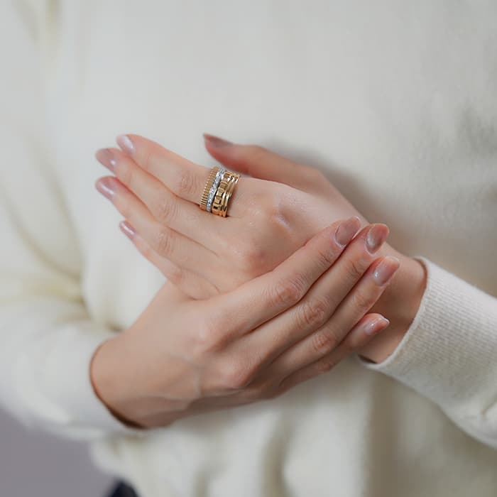 メレリオ・ショーメ・モーブッサン・ヴァンクリーフ&アーペルと共に、パリ5大ジュエラー「グランサンク」に数えられる「ブシュロン」。グログラン、ダブル ゴドロン、クル ド パリ、ダイヤモンドの4つのコードをモダンに表現したデザインです。