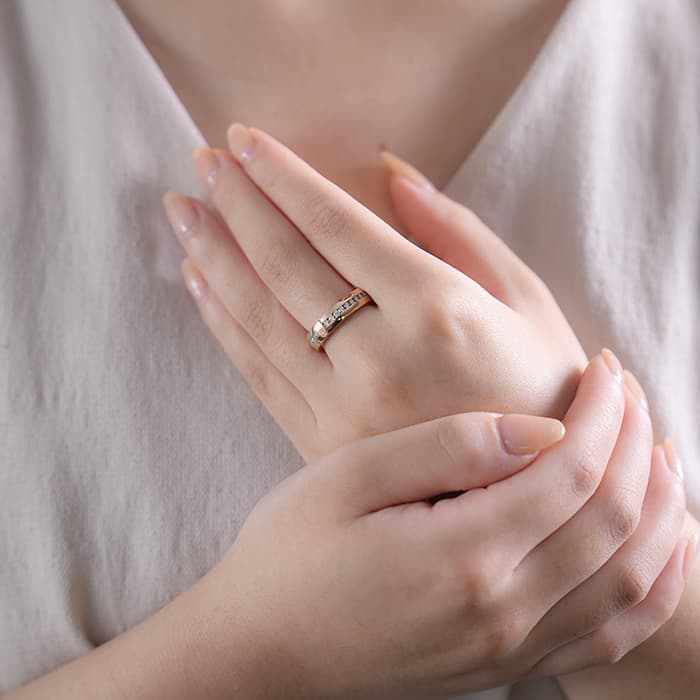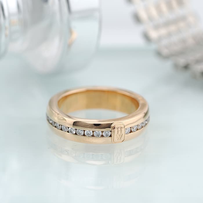 世界五大ジュエラーの一つであり「キング・オブ・ダイヤモンド」とも称されるハリーウィンストン。最高品質のダイヤモンドを使って、美しい輝きのジュエリーを生み出します。33個のラウンド・ダイヤモンドがセッティングされたローズゴールドリングにハリーウィンストンを象徴するエメラルドカットのHとWのブランドロゴがあしらわれたアイコニックなデザインです。