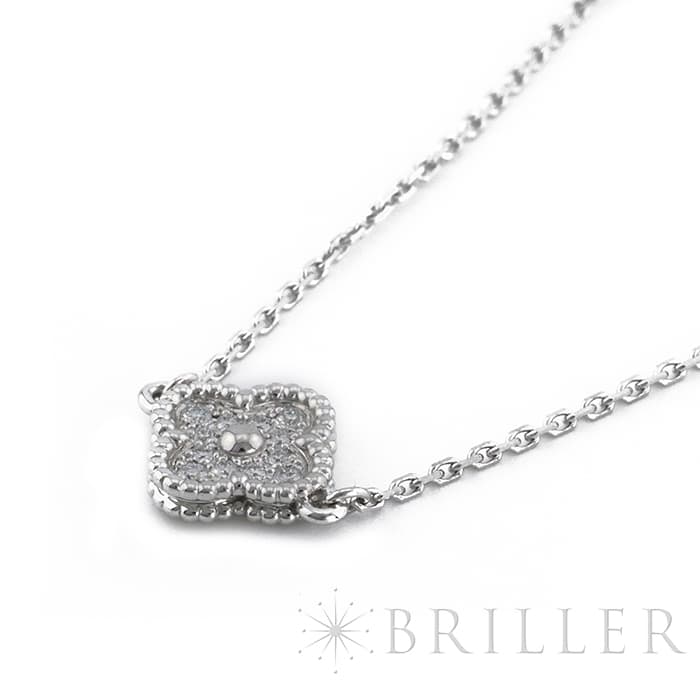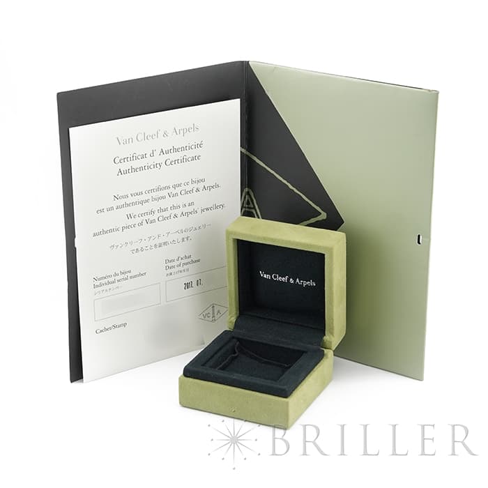 フランスに本店のあるハイジュエラー「ヴァンクリーフ&アーペル」。1906年に誕生し、数多くのセレブリティから愛されているブランドです。定番コレクションとして愛される「アルハンブラ」には主に4つのサイズ展開がございますが、こちらは「スウィート(9.5mm)」サイズになります。 モチーフが薄くて華奢な為、ブランドの主張を抑えながらも楽しむことができ、オススメのジュエリーです。