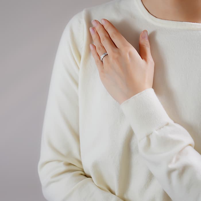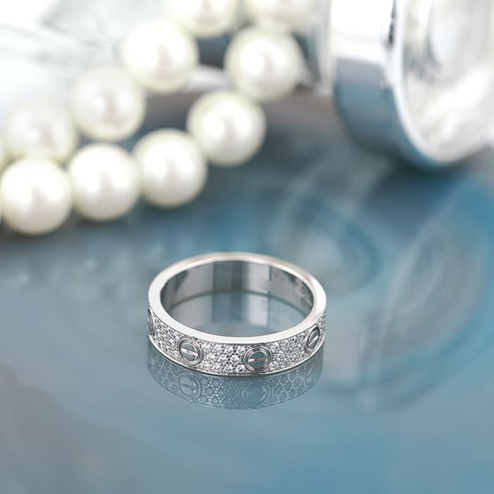 フランスで誕生し世界五大ジュエラーの一角である「カルティエ」。独創的なデザインや技術力の高さから圧倒的な支持を受けるブランドです。「LOVE」シリーズは人気が高くビスモチーフがデザインされているのが特徴。ラブリング スモールモデルは通常のラブリングに比べ細く、スッキリとした印象を与えます。ホワイトゴールド素材にダイヤが散りばめられており、より高級感を感じられる華やかなデザインとなっています。
