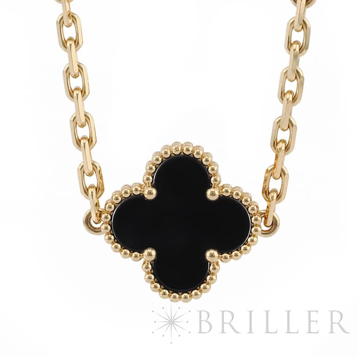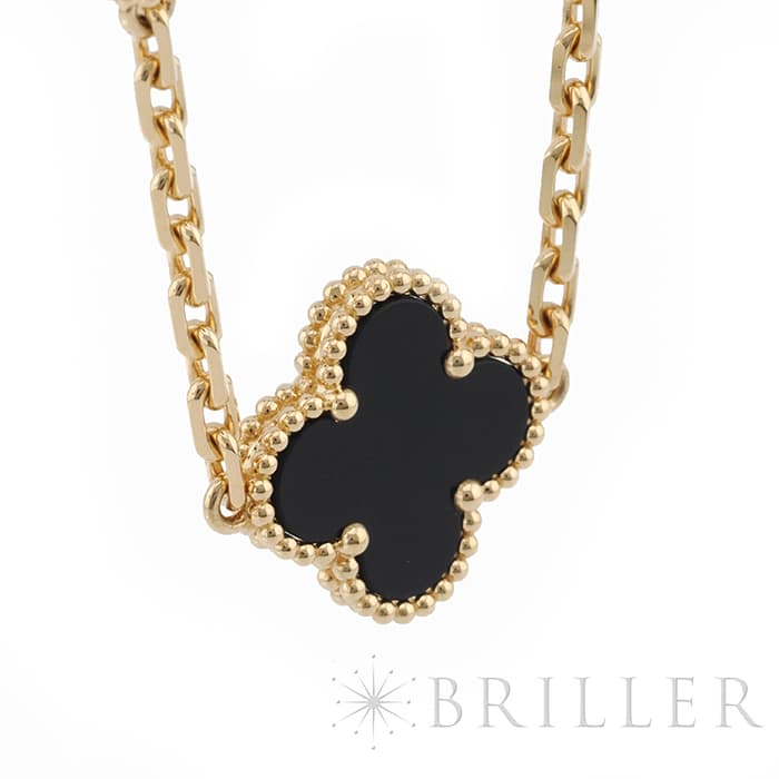 フランスに本店のある宝石、時計、香水を扱うハイジュエラー「ヴァンクリーフ&アーペル」。1906年に誕生し、数多くのセレブリティから愛されているブランドです。定番モデル「アルハンブラ」には複数のサイズ展開があり、こちらは「 ヴィンテージ アルハンブラ」と呼ばれる最もベーシックなモチーフです。 イエローゴールド素材にブラックオニキスが大変上品で美しいブレスレットです。