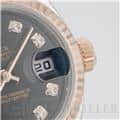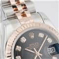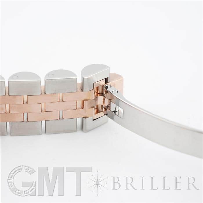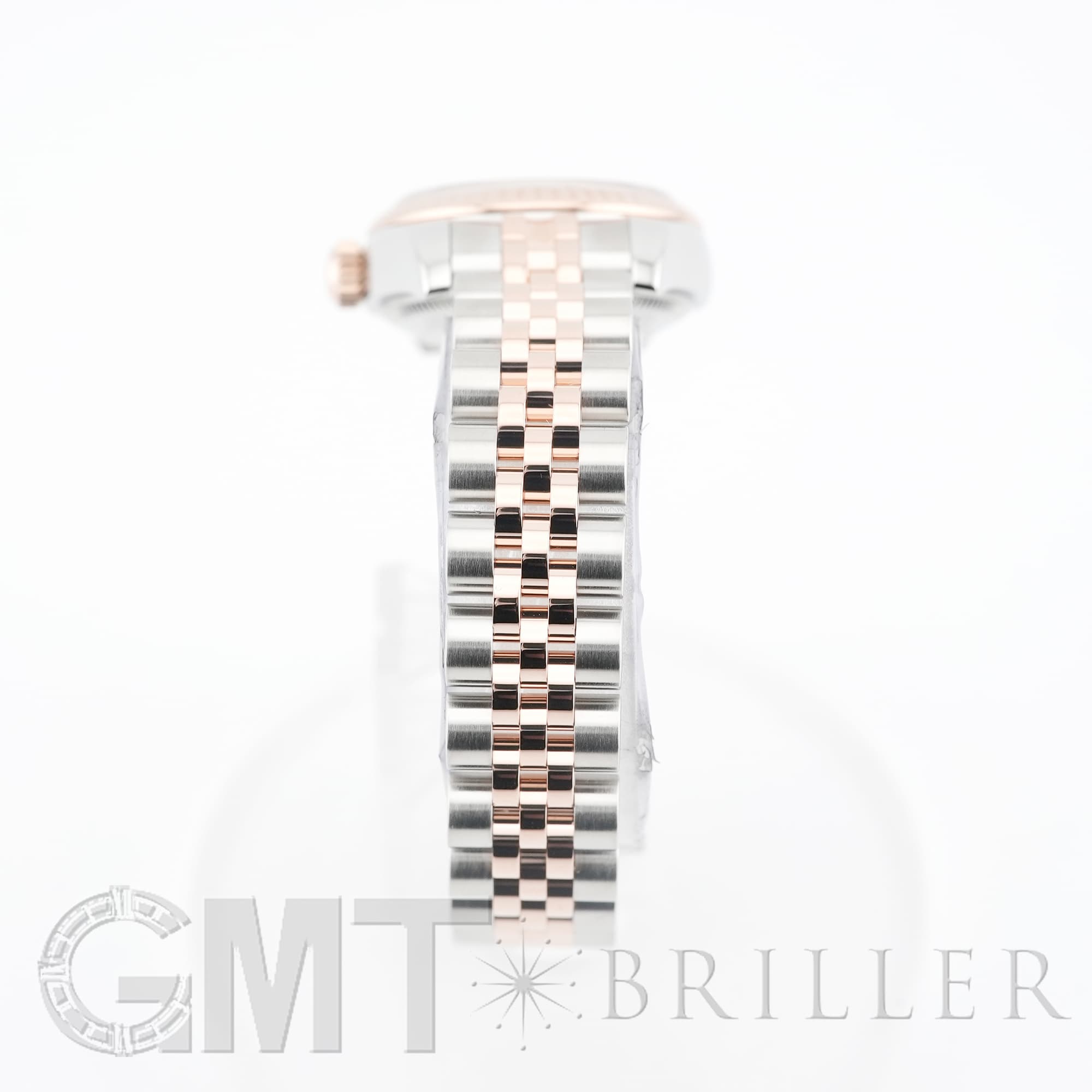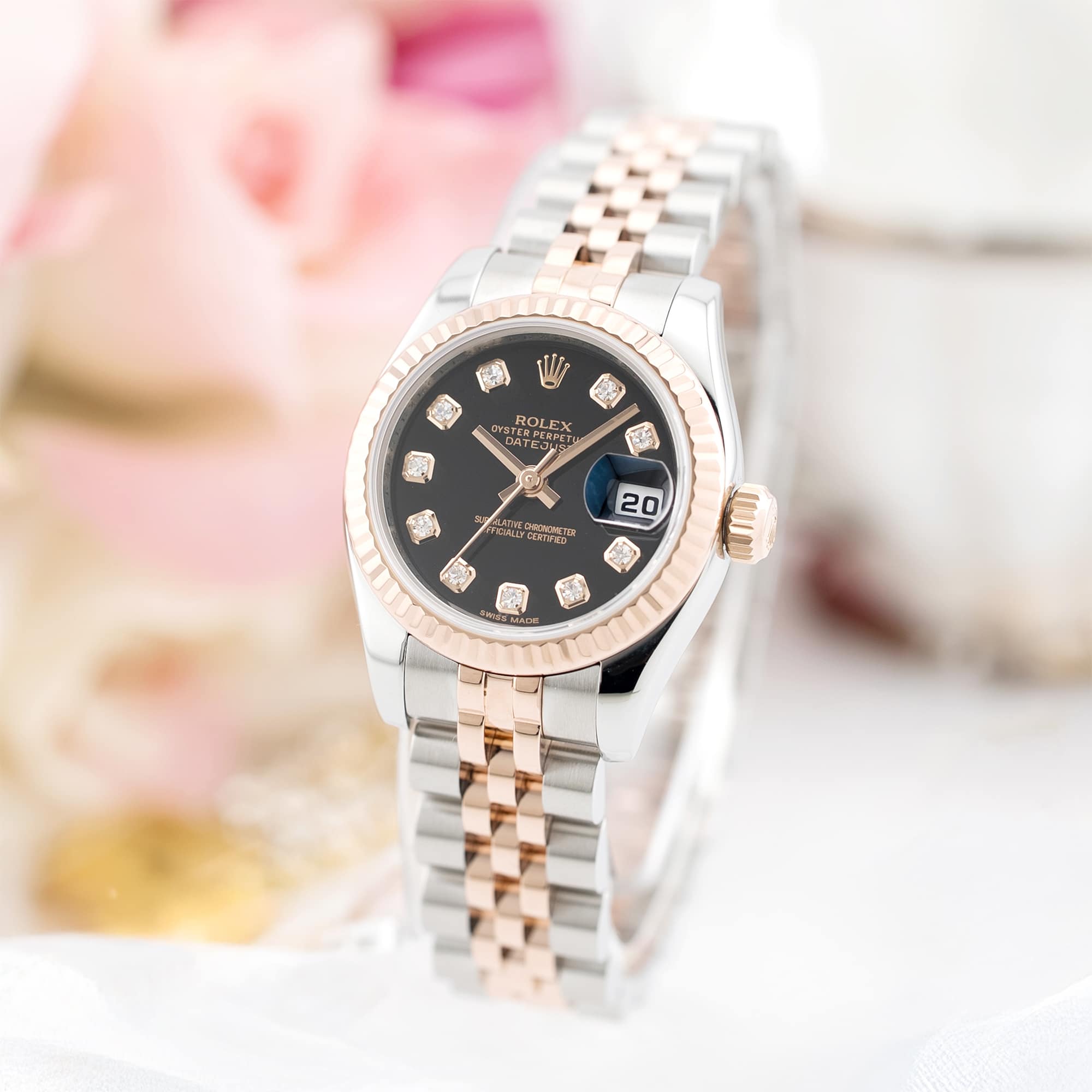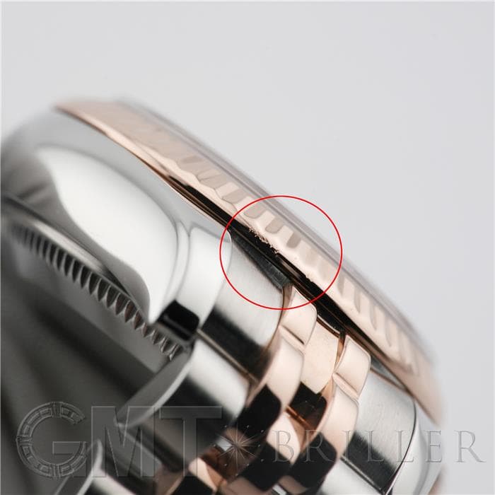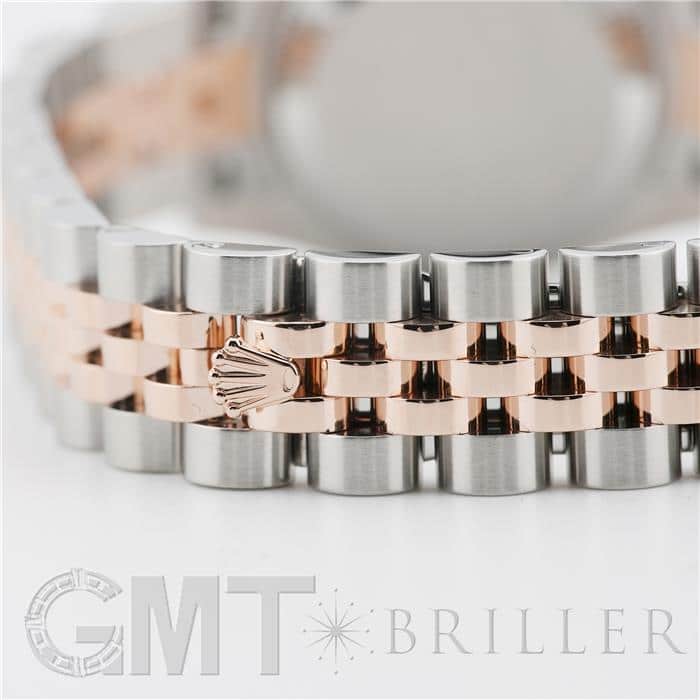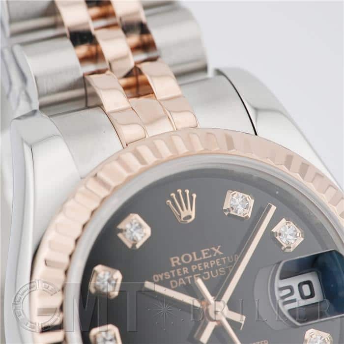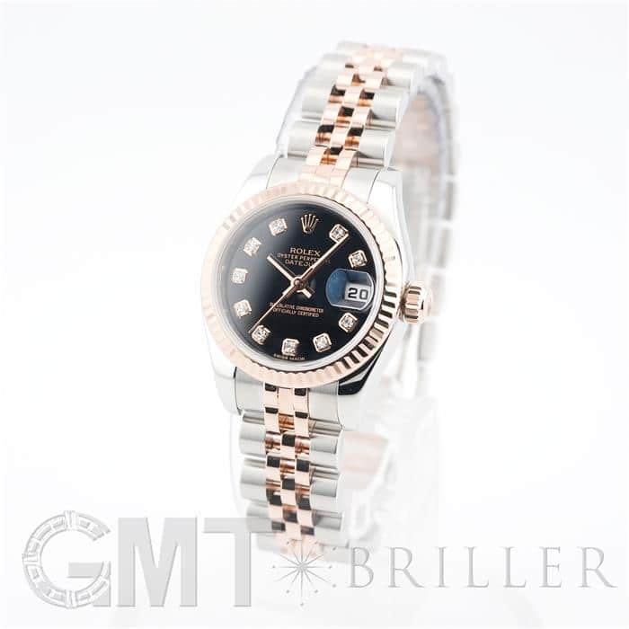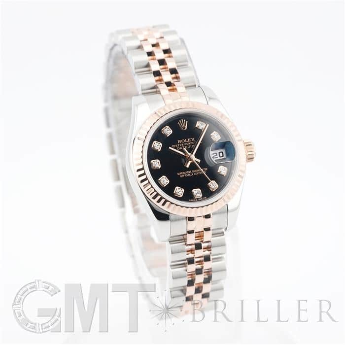 ロレックス デイトジャスト26 179171G ブラック ロレックス「デイトジャスト26」Ref.179171Gは、すでに生産が終了した希少な26mmケースを採用した、極めて上品なレディースモデルです。 小ぶりなケースサイズは、女性の手元にさりげない華やかさと可憐な印象を与え、まるでジュエリーのような存在感を放ちます。 ケースおよびブレスレットは、エバーローズゴールドとステンレススチール(ロレックス独自のオイスタースチール)によるコンビ仕様。 文字盤には、シックで洗練されたブラックダイアルを採用し、どのような装いにも馴染む汎用性の高さが魅力です。10ポイントにあしらわれたダイヤモンドインデックスが、さりげなくも確かな輝きで手元を彩ります。 ベゼルには高級感あふれるフルーテッドベゼルを採用し、光の角度によって美しい陰影を生み出します。 ロレックスならではの伝統と革新が融合した、まさに資産価値をも兼ね備えた逸品。永く愛用いただける、ラグジュアリーかつ実用性を備えた傑作です。 シリアル ランダム(保証書日付 2015年7月) 2025年5月 当社提携工房にてオーバーホール・外装仕上済み ベゼルにキズが見られ、また裏ブタに打痕が見られます。 当社の中古品はインターネットでも安心してご購入頂けるよう、しっかりとした点検整備を行っております。 ロレックス 時計の買取り・下取りも行っておりますので、お気軽にご相談ください。