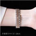 メジャーを手首に巻きつけて、手首のサイズを測ります。 サイズを確認して、ピッタリのサイズをお知らせください。お知らせいただいたサイズを元に、「標準的な余裕」がでるようにブレスレットサイズを調整いたします。 写真の場合、手首周りは「14cm」となります。