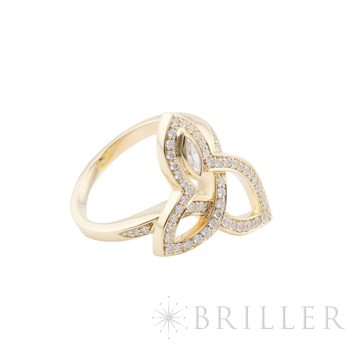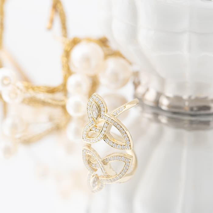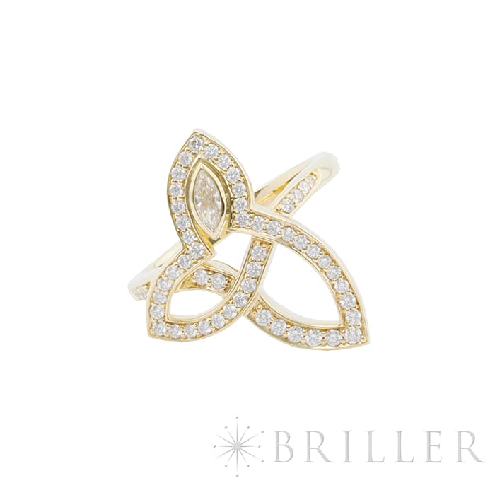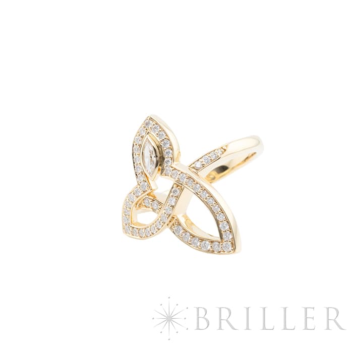 世界五大ジュエラーの一つであり「キング・オブ・ダイヤモンド」とも称されるハリーウィンストン。「リリークラスター」はユリの花の自然な美しさにインスピレーションを受け誕生しました。イエローゴールド素材に加え花びらに贅沢に1個のマーキースカットと54個のラウンド・ダイヤモンドがセッティングされたダイヤモンドが美しい、ハリーウィンストンらしい高級感溢れるリングです。
