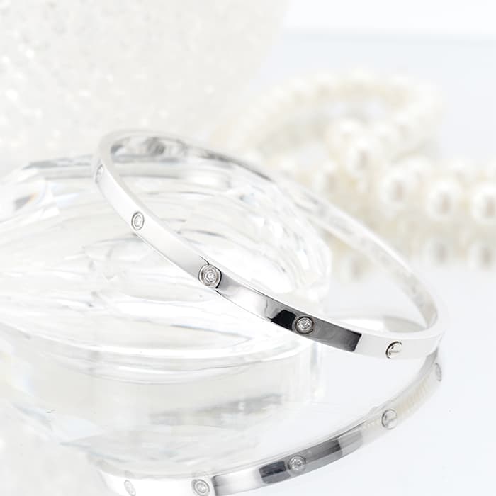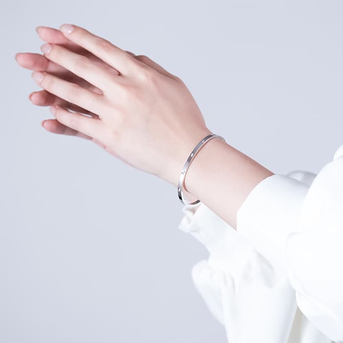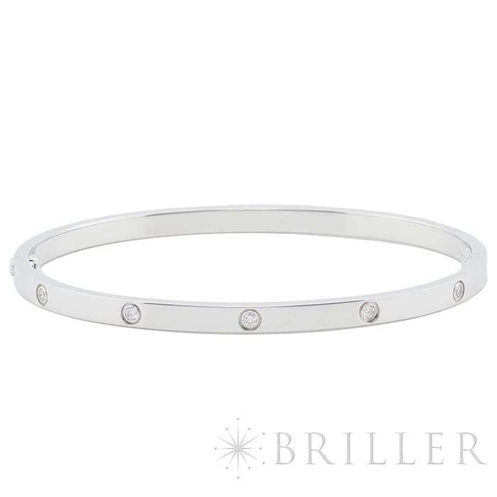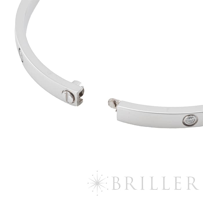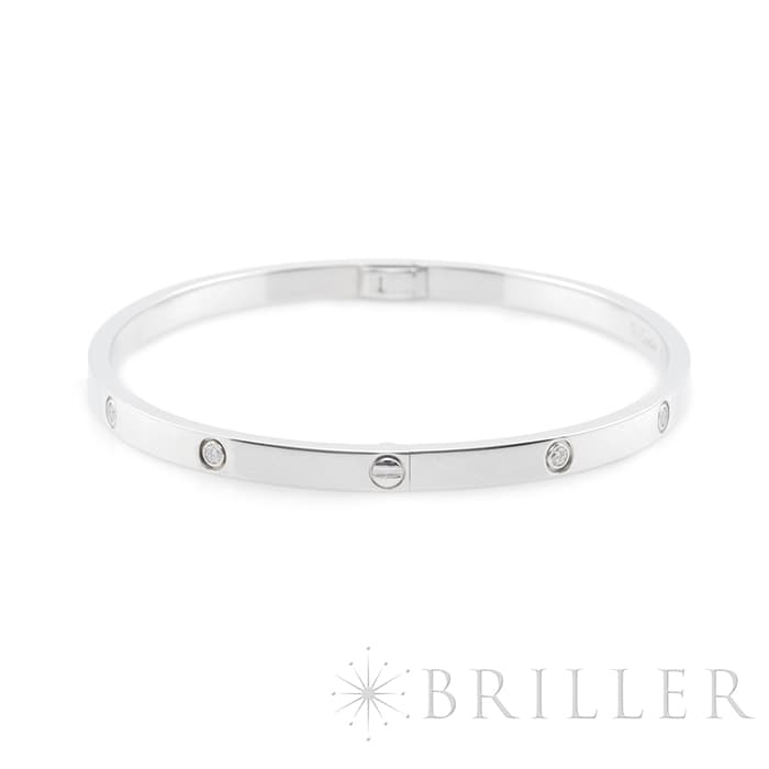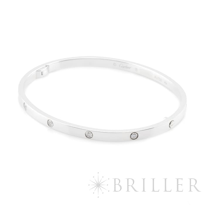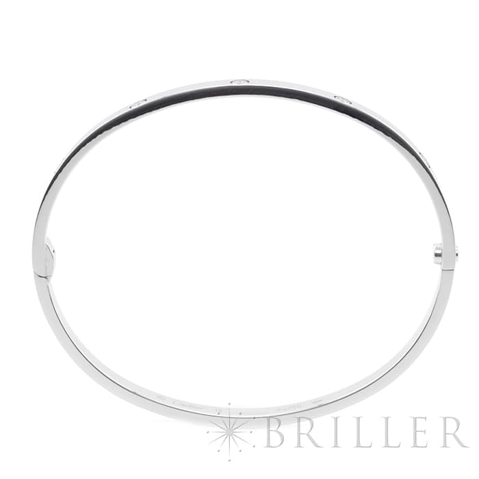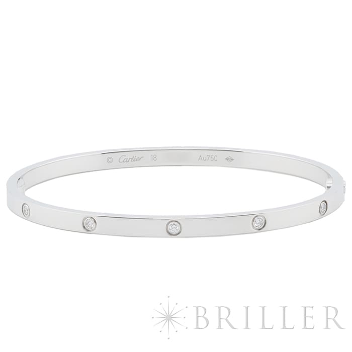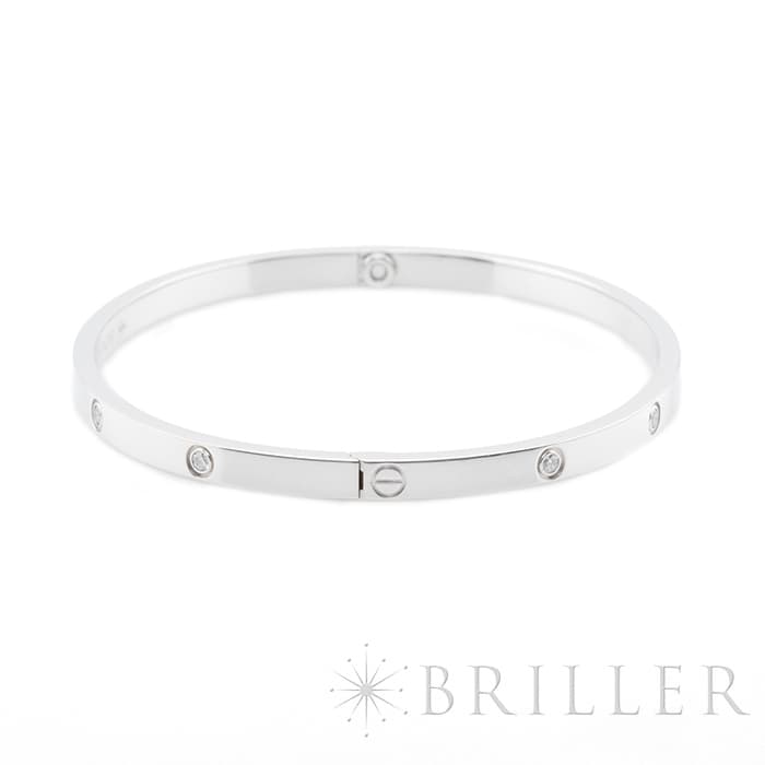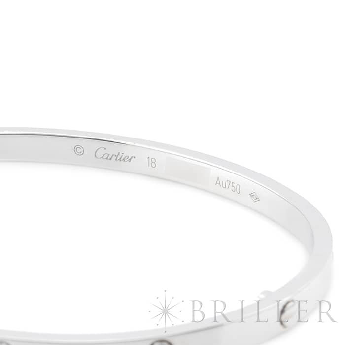カルティエ ラブ ブレスレット SM 10ダイヤモンド ホワイトゴールド B6048018 18号 CARTIER世界5大ジュエラーのひとつである「カルティエ」。1970年代にニューヨークで生まれたLOVE コレクションは、愛の絆を象徴するビスモチーフが特徴です。当商品はホワイトゴールドを採用。ほかのジュエリーとも相性が良いシンプルなデザインでありながらも、ポイントで使用されたダイヤモンドが輝きます。販売証明書日付 2018年7月中古のお品物のため小傷がございますが、ご着用時に気になるような傷はございません。