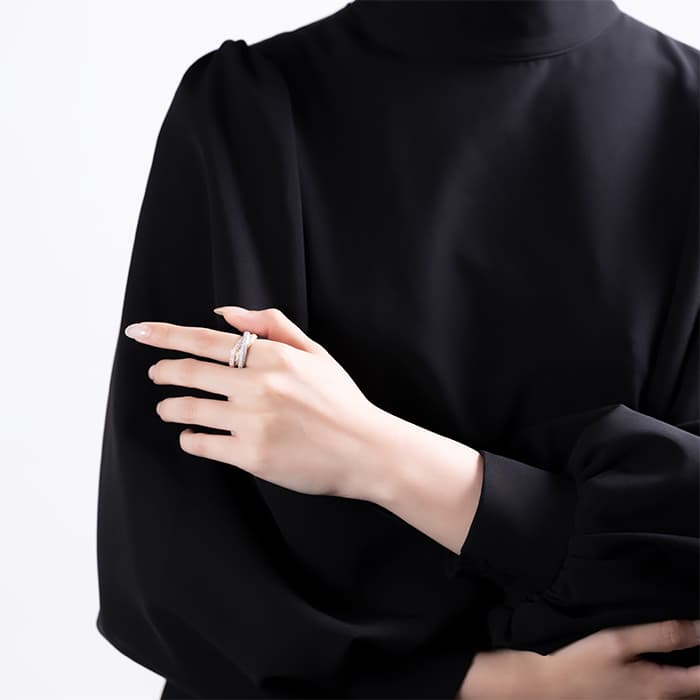 フランスで誕生し世界五大ジュエラーの一角である「カルティエ」。独創的なデザインや技術力の高さから圧倒的な支持を受けるブランドです。トリニティは英語で「3重、3つ組、3つ」を意味しその名の通り3つのリングが連なったデザインが特徴的で、 3色それぞれのリングには、合計468個(約1.93ct)ものダイヤモンドが緻密にセッティングされ、手元に眩い輝きをもたらし、華やかでありながら気品も漂う、カルティエならではのバランス感覚が光る逸品。 特別な日の装いにはもちろん、日常にさりげないラグジュアリーを添えるジュエリーとしてもおすすめです。