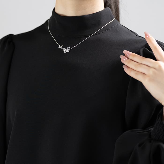 ダイヤモンドのクオリティにおいてトップレベルと評されるイギリスのジュエラー「GRAFF(グラフ)」。煌めくダイヤモンドで描かれた2匹のバタフライがホワイトゴールドの上でエレガントに舞う、フェミニンで軽やかなバタフライシルエットのネックレスです。華奢なサイズのモチーフは、デイリーでも身に着けることができます。