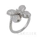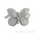 グラフ ベビー プリンセス バタフライ リング ダイヤモンド ホワイトゴールド 8号 GRAFF ダイヤモンドのクオリティにおいてトップレベルと評されるイギリスのジュエラー「GRAFF(グラフ)」。 バタフライコレクションはグラフのアイコニックな存在で、パヴェダイヤモンドの繊細かつ上品な美しさが印象的です。エッジにまで贅沢にセッティングされた,154個のダイヤモンドは極上の輝きを放ちます。指に添うように、華奢にねじれるようなデザインとなっており、エレガントな雰囲気を纏っています。 販売証明書日付 2017年7月 中古のお品物ではございますがご着用時に気になるような傷はございません。