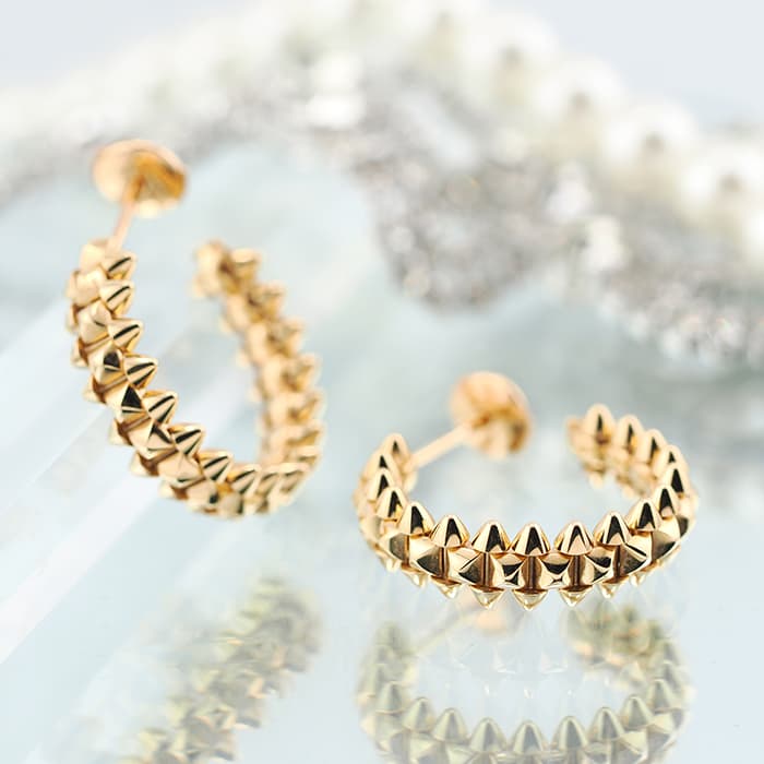 世界5大ジュエラーとして世界中から愛されるブランド「カルティエ」。二面性をテーマとし、クラシックでエキセントリックなデザインを打ち出すクラッシュ ドゥ カルティエ コレクションは新たなシグネチャージュエリーとして人気を博しています。アイコニックなデザインは耳元で抜群の存在感を放ちます。