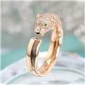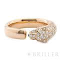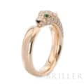 カルティエ パンテール パンテール ドゥ カルティエ リング スモールモデル セミパヴェセッティング ピンクゴールド 13号 N4765700 Cartier フランスで誕生し、独創的なデザインや技術力の高さから圧倒的な支持を受けるブランド「カルティエ」。クリエイションのシンボルである「パンテール ドゥ カルティエ」は、気高くも力強い個性を感じる豹のデザインが施されています。こちらのリングの全体はピンクゴールドで作られ、贅沢にパヴェダイヤモンドがセッティングされています。オニキスとエメラルドが目 と鼻にセッティングされています。 中古のお品物ではございますがご着用時に気になるような傷はございません。