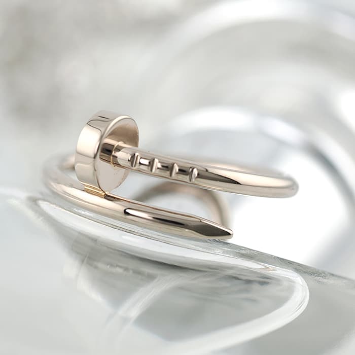 フランスで誕生し、独創的なデザインや技術力の高さから圧倒的な支持を受けるブランド「カルティエ」。1本の釘から誕生したジュエリー「ジュスト アンクル」が入荷いたしました。素材にホワイトゴールドを使用したこちらのリングは、重厚感はありつつもシンプルでモダンなデザインのため、あらゆるシーンで活躍します。