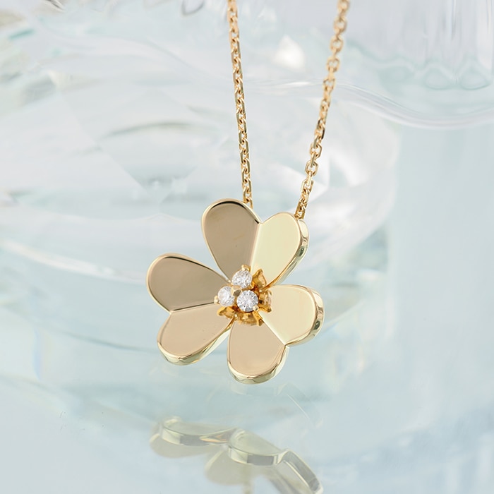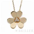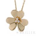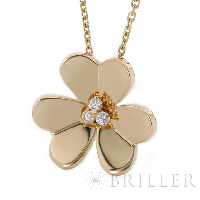 ヴァン クリーフ&アーペル フリヴォル ペンダント ネックレス ラージモデル イエローゴールド ダイヤモンド VCARC96800 Van Cleef & Arpels フランスに本店のあるハイジュエラー「ヴァンクリーフ&アーペル」。1906年に誕生し、数多くのセレブリティから愛されているブランドです。代表モデルの一つ「フリヴォル」コレクション。今ではアルハンブラと並びヴァンクリーフ&アーペルの代表コレクションの一つとして高い人気を誇ります。そよ風にゆれる花々からインスピレーションを得ており、立体的な花のモチーフが愛らしいです。こちらはイエローゴールドに中央にエメラルドをセッティング。華奢ながらも可愛らしいデザインです。 証明書日付 2020年5月 中古のお品物ではございますがご着用時に気になるような傷はございません。