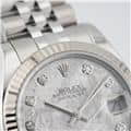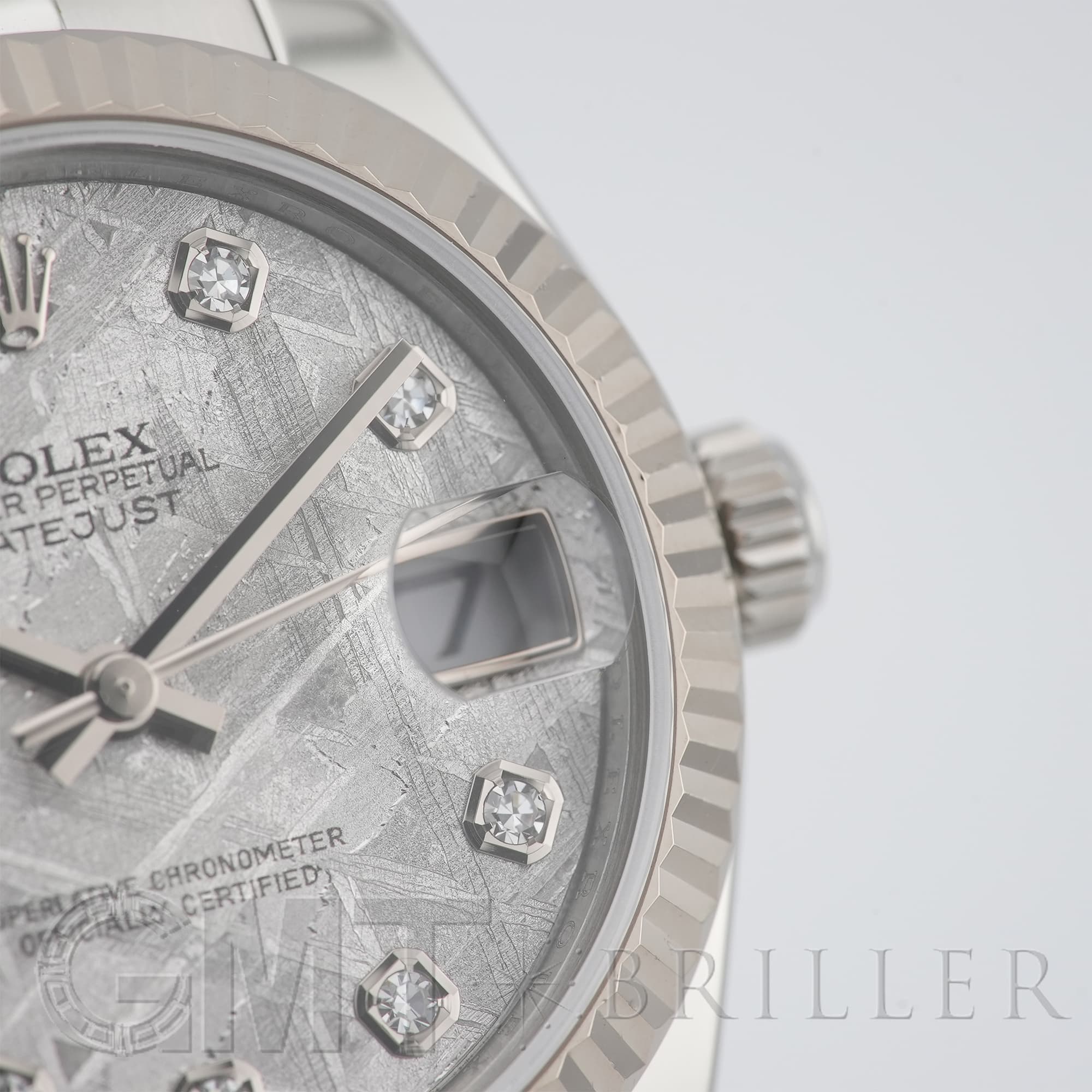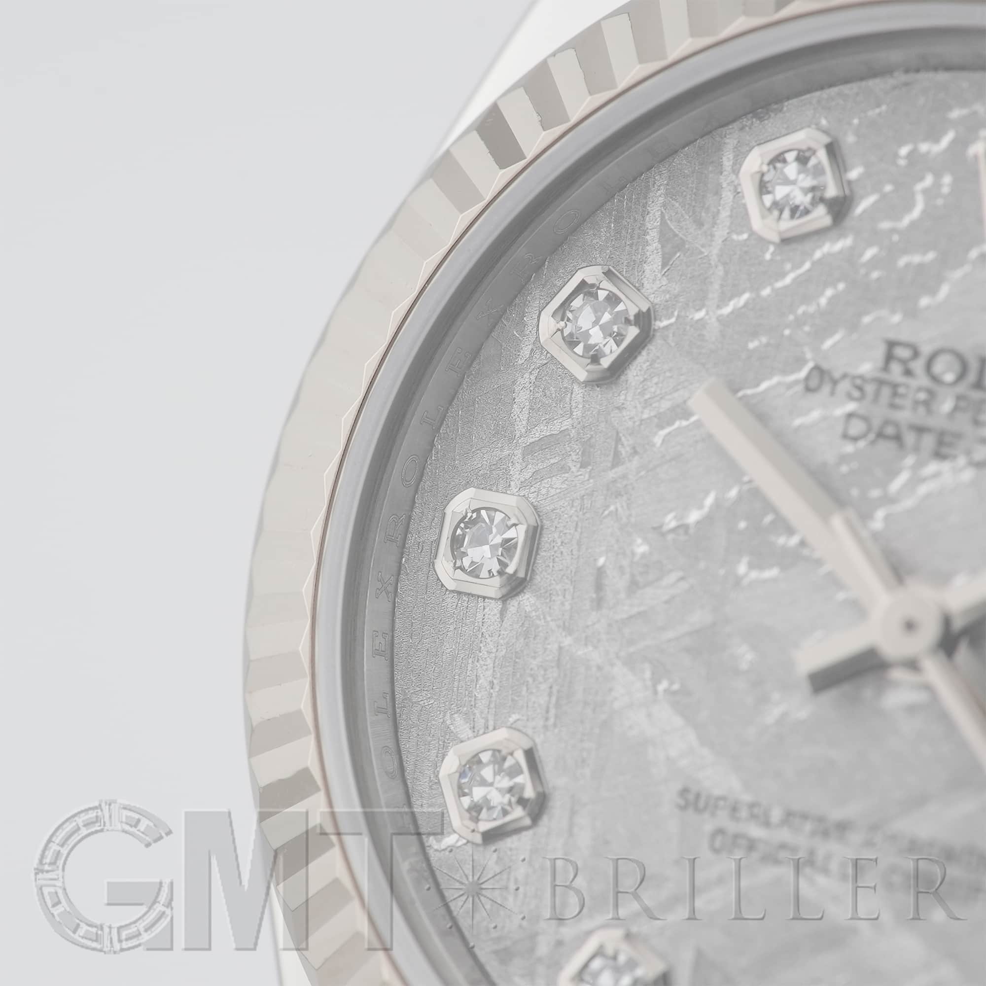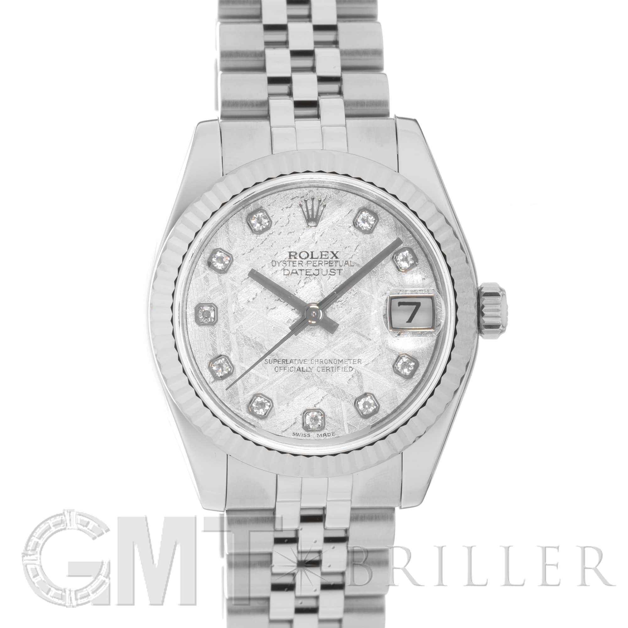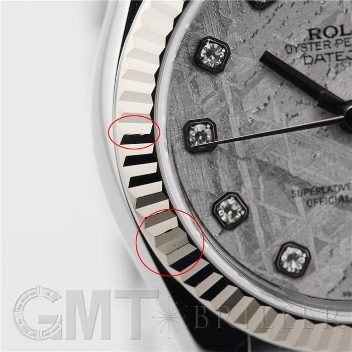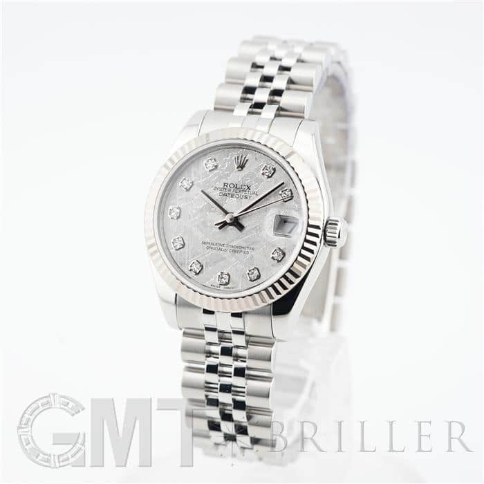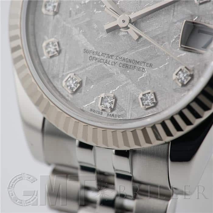 ロレックス デイトジャスト 178274G メテオライト ROLEX ロレックスの3大発明「デイトジャスト機構」「オイスターケース」「パーペチュアル機構」 を搭載したデイトジャスト。 数ある文字盤バリエーションの中でもひときわ特別感のある『メテオライト(隕石)』は個体によって全く異なる表情を見せる繊細な文字盤です。 この個体は特に石の模様が大きくはっきりとしており、キラキラとした風合いが際立っています。 少し大きめの31mmケース、ダイヤルに10ポイントダイヤ、ベゼルにはホワイトゴールドを使用し、 シンプルな色味でありながらラグジュアリーな雰囲気も持ち合わせたデザインで、日常から特別なシーンまで上品な存在感を演出いたします。 保証書日付 2011年2月(シリアル V番) 2025年11月 提携修理会社にてオーバーホール、外装仕上げ済み ベゼル、ラグ裏に傷・打痕がございます。 当社の中古品はインターネットでも安心してご購入頂けるよう、しっかりとした点検整備を行っております。ロレックス 買取り・下取りも行っておりますので、お気軽にご相談ください。