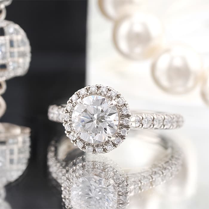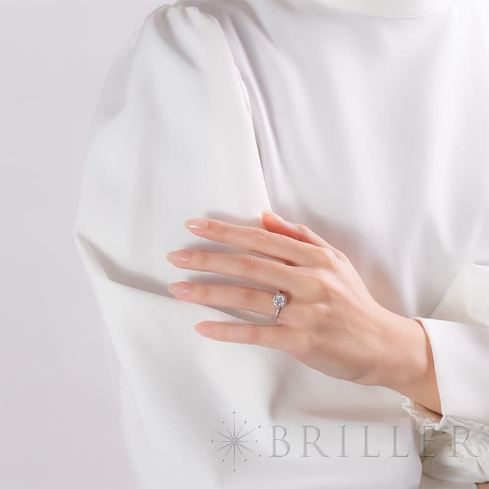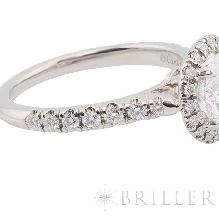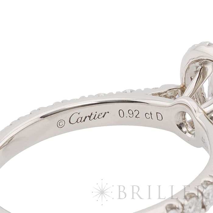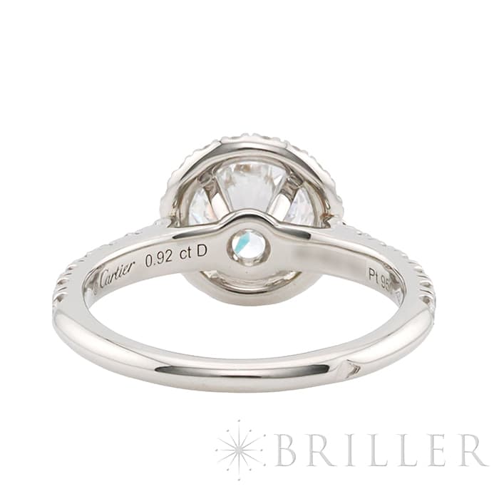 ブリリアントカット ダイヤモンドが光輪のように輝く、カルティエ「デスティネ」コレクション。中央に宝石を配したソリテールの名にふさわしく、主役となるダイヤモンドは0.92ctの大粒。その周囲を繊細に敷き詰めたパヴェダイヤが、さらなる存在感と華やぎを添えています。センターストーンは、最高評価に限りなく近い品質を誇る、 カラー:D / クラリティ:IF / カット:Very Good、 眩いほどの透明感と、吸い込まれそうな煌めきは一見するだけで心を奪われます。カルティエの卓越したクラフツマンシップと、美しいダイヤモンドが響き合う、贅を尽くしたラグジュアリーなリングです。