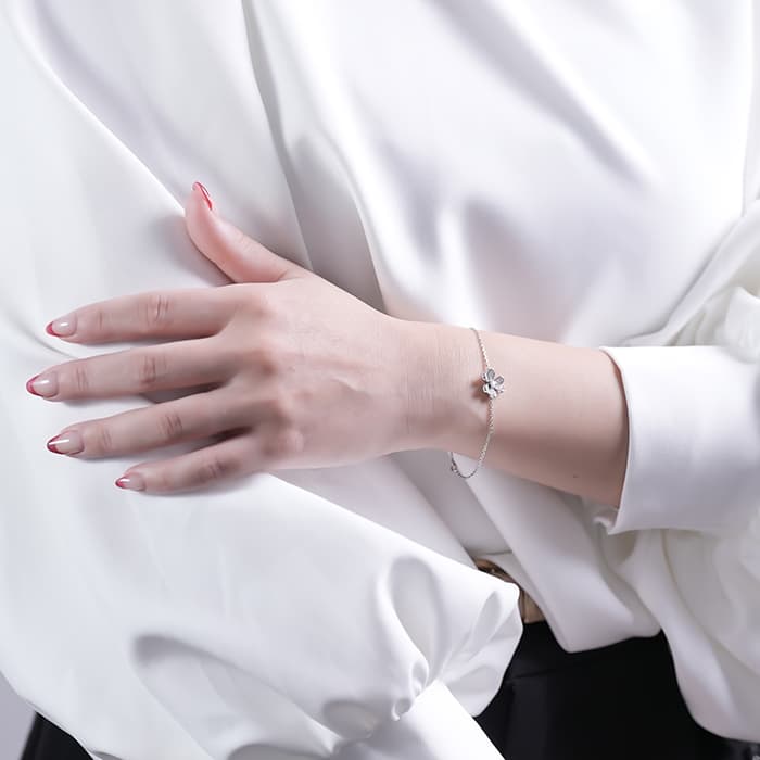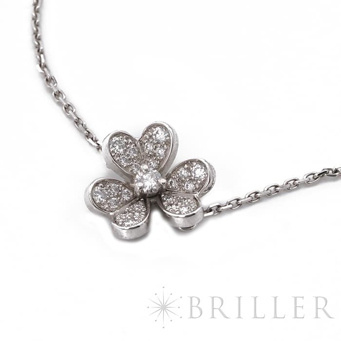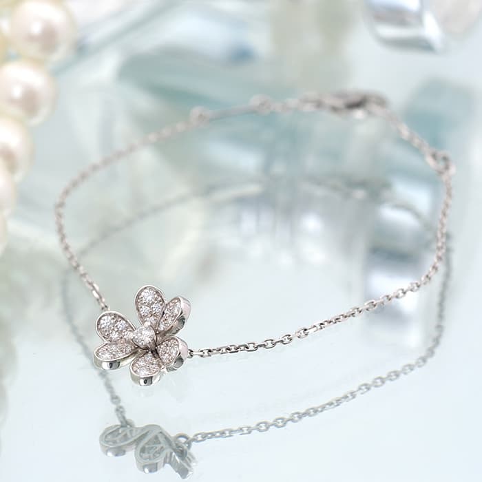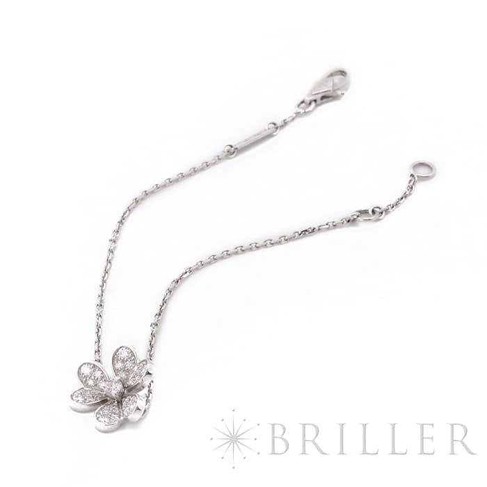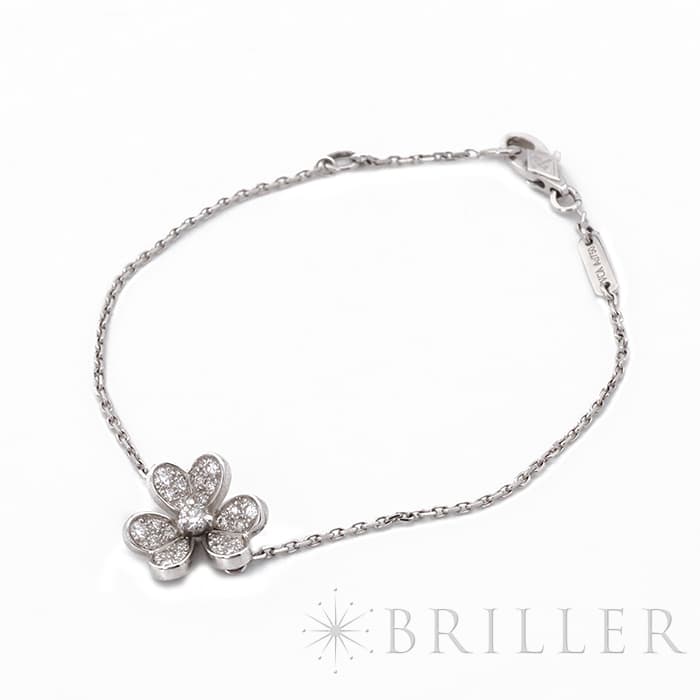 ヴァン クリーフ&アーペル フリヴォル ブレスレット ミニモデル ホワイトゴールド ダイヤモンド VCARP3W200 Van Cleef & Arpelsフランスに本店のある宝石、時計、香水を扱うハイジュエラー「ヴァンクリーフ&アーペル」。1906年に誕生し、数多くのセレブリティから愛されているブランドです。花や蝶など自然のデザインをモチーフとしており、こちらのモデルもハート型の花びらをデザイン。角度のついた立体的なデザインは躍動感があります。ホワイトゴールド素材とダイヤモンドが上品な印象を与え、腕元を彩ります。証明書日付 2023年12月中古のお品物ではございますが、ご着用時に気になる傷はございません。