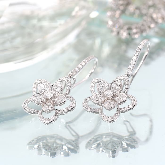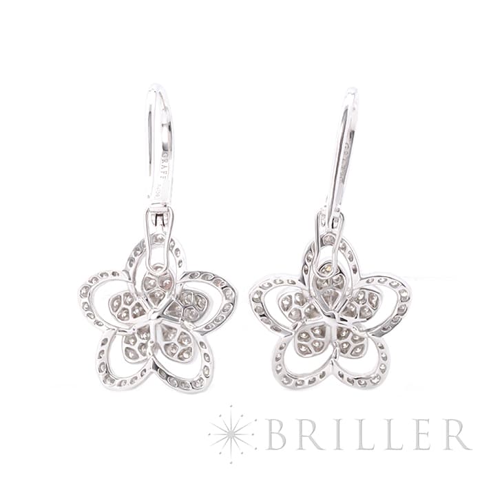 グラフ ワイルドフラワー ダイヤモンド イヤリング ホワイトゴールド RGE1668 GRAFF「鉱山から女性を飾るジュエリーまで」の理念を掲げるるイギリスのジュエラー「GRAFF(グラフ)」。徹底した品質管理のもと販売されるダイヤモンドは、「キング・オブ・ダイヤモンド」と称されるハリーウィンストンとも肩を並べるほどです。「ワイルドフラワー」は伝統的なイングリッシュガーデンの魅力をモダンに表現しています。グラフの美しいダイヤモンドが際立つピアスに仕上がっております。証明書日付 2024年6月中古のお品物ではございますが、ご着用に気になる傷はございません。