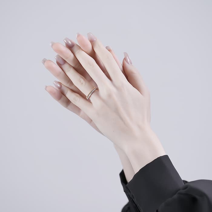 2004年に誕生したブシュロンの象徴的コレクション「キャトル」。こちらは、永遠の愛を象徴するゴドロンと、パリ・ヴァンドーム広場を想起させるクル ド パリを組み合わせた「キャトル ラディアント」のハーフリングです。やわらかなピンクゴールドにダイヤモンドをあしらい、シャープなラインと上品な輝きが指元を美しく引き立てます。ハーフタイプのため日常使いしやすく、重ね着けにも取り入れやすい一本。ブシュロンならではの意匠と気品を楽しめるジュエリーです。