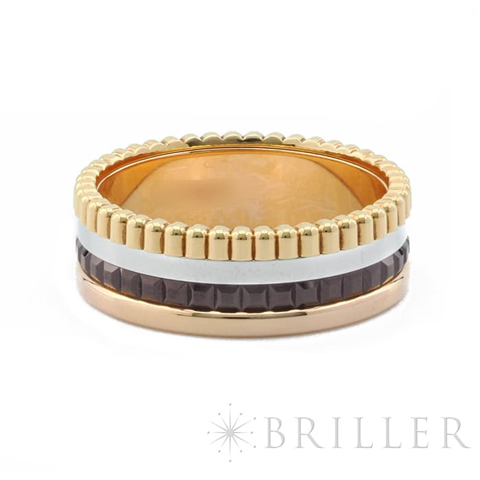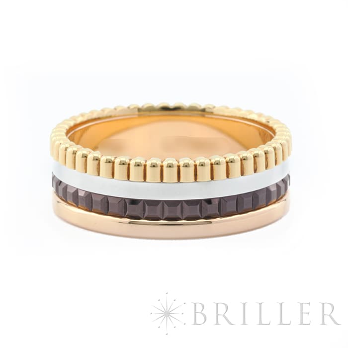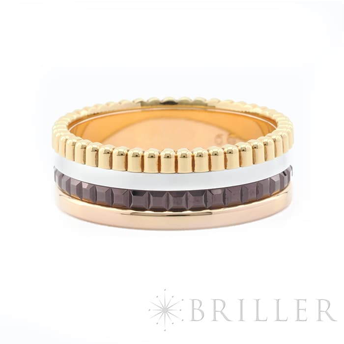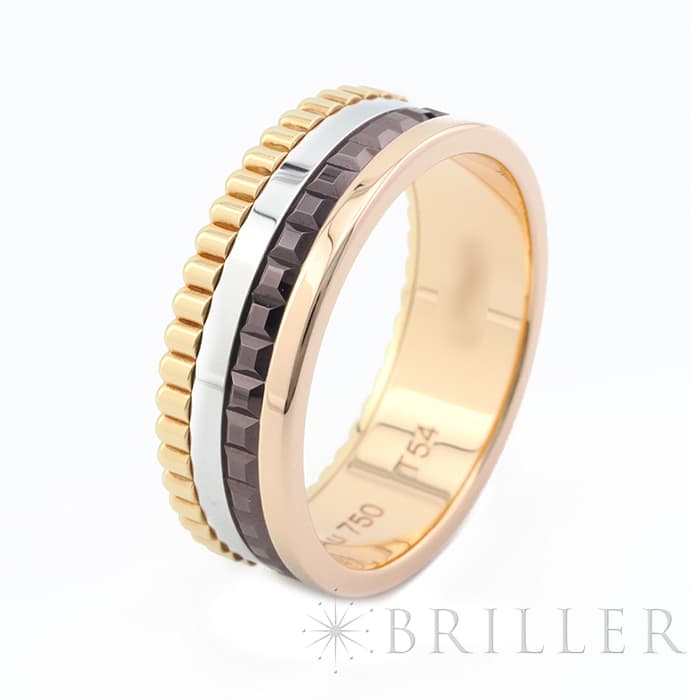 身に着ける人の個性に自然と寄り添う、ブシュロンを代表する「キャトル クラシック リング」スモールモデル。メゾンに受け継がれる4つのコードを、多彩なゴールドとブラウンPVDで表現し、ひと目でキャトルと分かる意匠に仕上げられています。直線と立体感が生み出す端正なデザインは、主張しすぎることなく手元に確かな存在感をプラス。スモールサイズならではの使いやすさで、日常から特別な装いまで幅広く活躍するアイコニックな一本です。