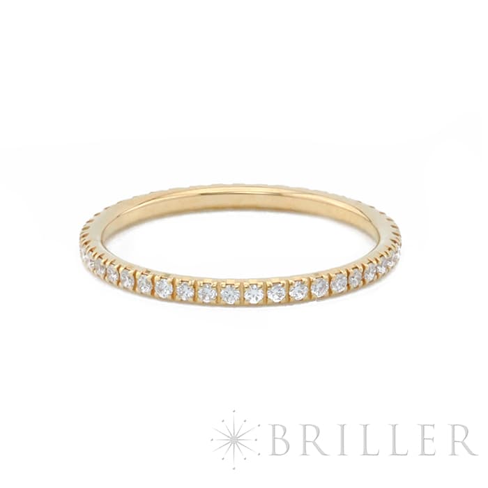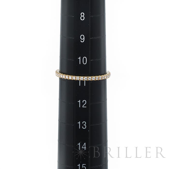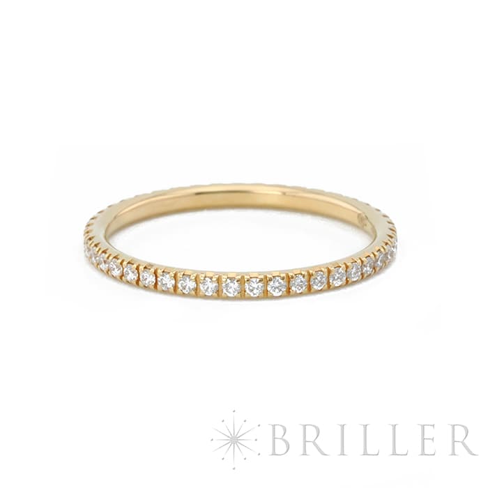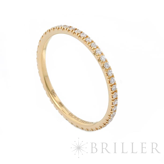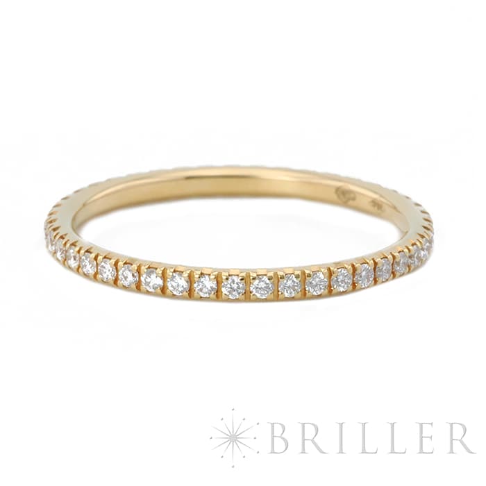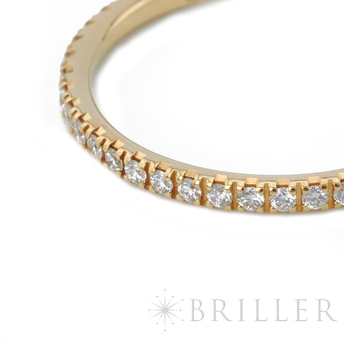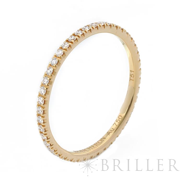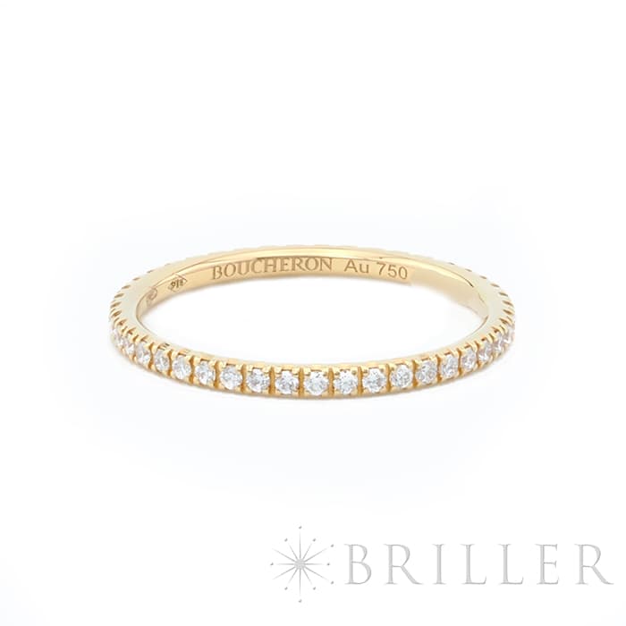 ブシュロン エピュール ダイヤモンドリング 1ロー イエローゴールド 11号 JAL01180 BOUCHERON ブシュロンの美意識を端正に表現した「エピュール」コレクションのダイヤモンドリング。イエローゴールドのなめらかなリングラインに、ダイヤモンドを1列パヴェセッティングし、均整の取れた輝きを添えています。装飾を抑えたシンプルな造形だからこそ、素材の質感とダイヤモンドのきらめきが際立ち、手元に上品な華やかさをもたらします。細身で着け心地も良く、一本使いはもちろん、他のリングとの重ね着けにも好相性。日常の装いからフォーマルなシーンまで自然に馴染む、洗練されたジュエリーです。 【未使用品】 ※コンディションにつきまして、こちらは使用されていない「未使用」状態です。