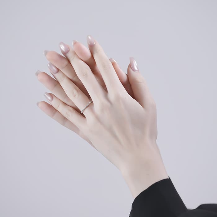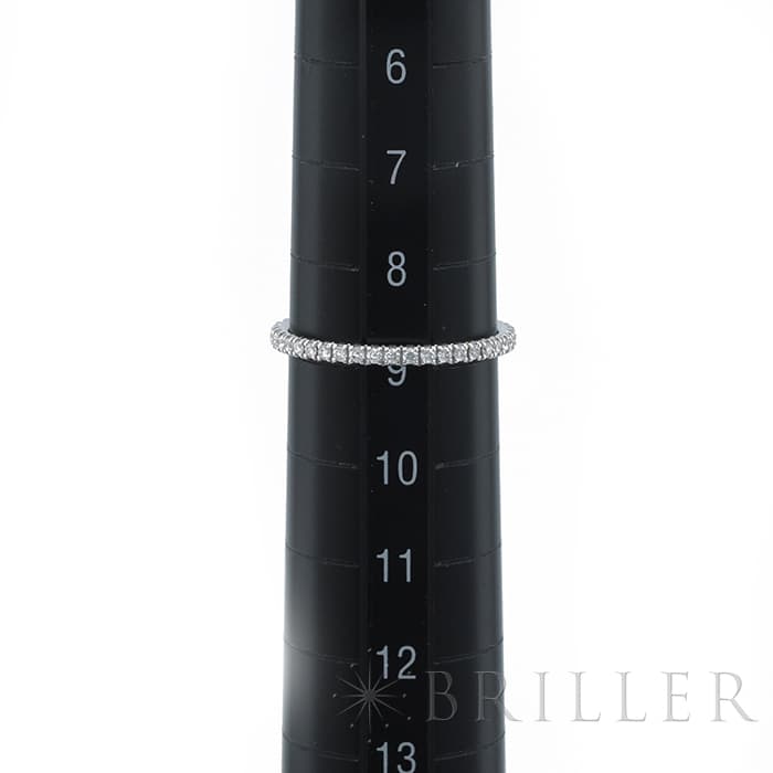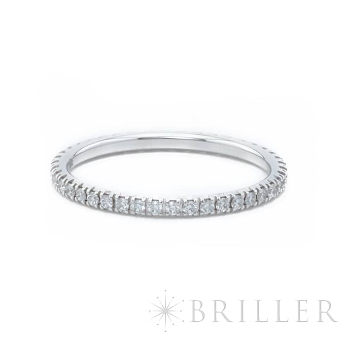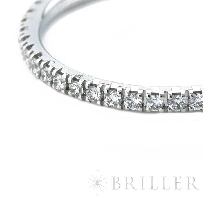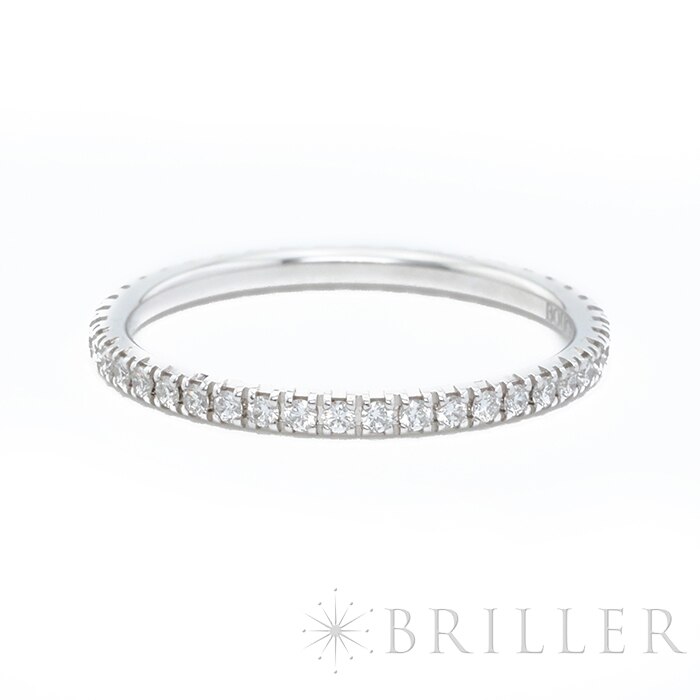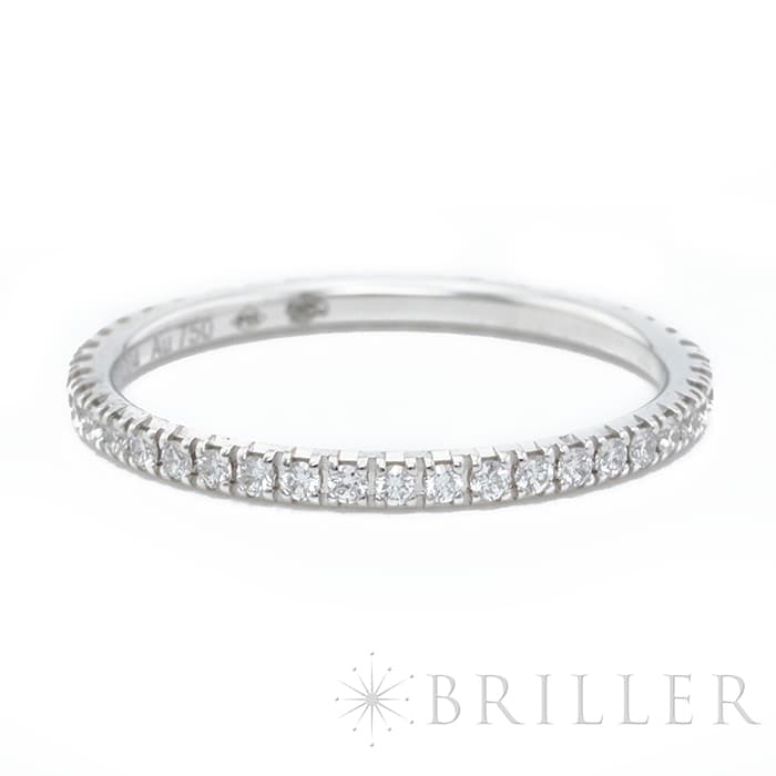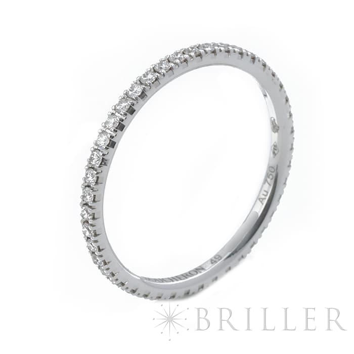ブシュロンの美意識を端正に映し出す「エピュール」コレクションのダイヤモンドリング。ホワイトゴールドのすっきりとした輝きに、ダイヤモンドを1列パヴェセッティングし、均一でクリアな光を添えています。無駄を削ぎ落としたミニマルなフォルムだからこそ、素材の質感とダイヤモンド本来の輝きが際立ち、指元に凛とした印象を演出。細身で着け心地も良く、一本で上品に、重ね着けで表情を変えて楽しめます。装いを選ばず、日常からフォーマルまで幅広く活躍するリングです。