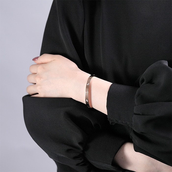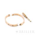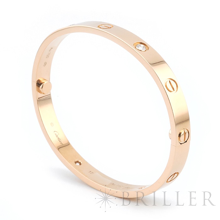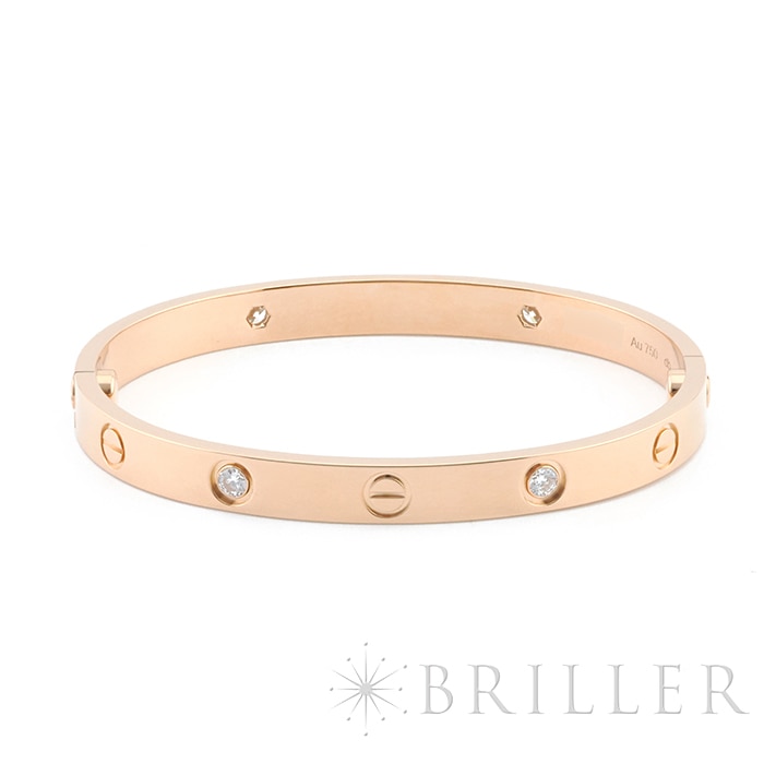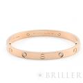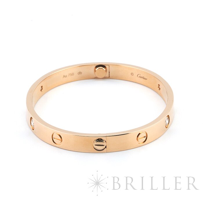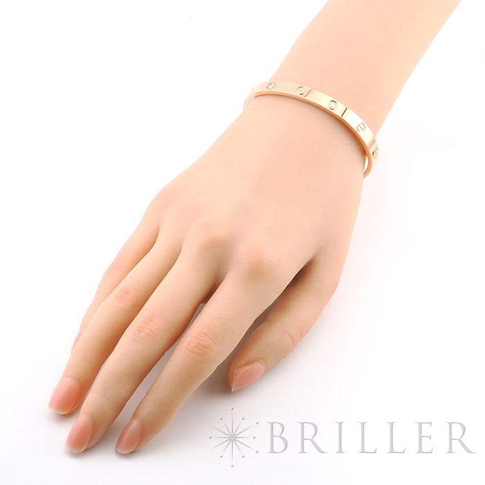 カルティエ ラブブレスレット クラシックモデル ダイヤモンド4石 ピンクゴールド 17号 Cartierカルティエを代表する「LOVE」コレクション。1970年代にニューヨークで誕生し、愛の絆を象徴するデザインとして世界中で支持されています。本モデルは肌なじみの良いピンクゴールドに、ビスモチーフの代わりにブリリアントカットダイヤモンドを贅沢にセッティング。手元で上質な輝きを放ち、1本でも確かな存在感を演出します。シンプルなバングル型で、他のアイテムとの重ね付けにも最適です。日常から特別な日まで活躍するお品物です。保証書日付 2023年1月2024年2月 カルティエにて磨き済み中古のお品物ではございますが、ご着用時に気になる傷はございません。