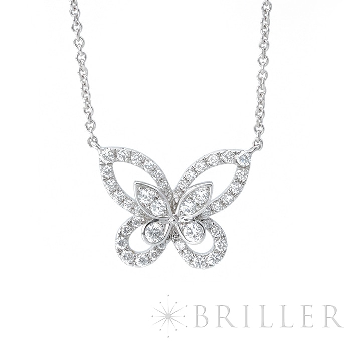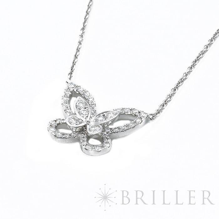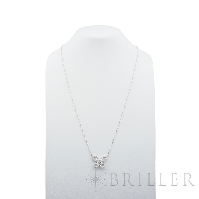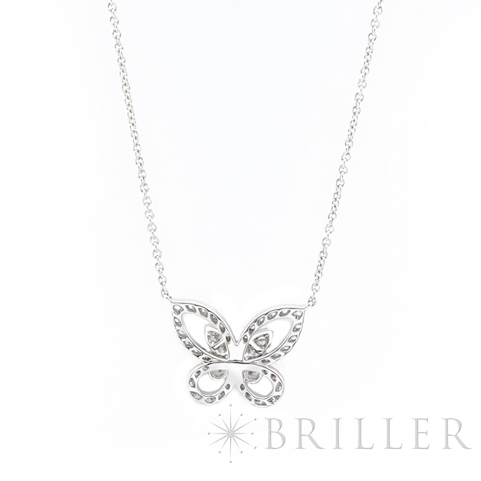 グラフ バタフライ シルエット ダイヤモンド ミニ ペンダント ネックレス ホワイトゴールド RGP695 GRAFFグラフを象徴するバタフライモチーフを、繊細かつ軽やかに表現した「バタフライ シルエット ダイヤモンド ミニ ペンダント」。羽の外側をパヴェダイヤモンドのラインで縁取り、その内側に小さなバタフライを配したオープンワーク仕様が、奥行きと躍動感を演出します。二重構造ならではの華やかさと可憐さが調和し、身に着ける人の魅力をさりげなく引き立てる、上品なホワイトゴールドネックレスです。証明書日付 2024年7月中古のお品物ではございますが、ご着用時に気になる傷はございません。