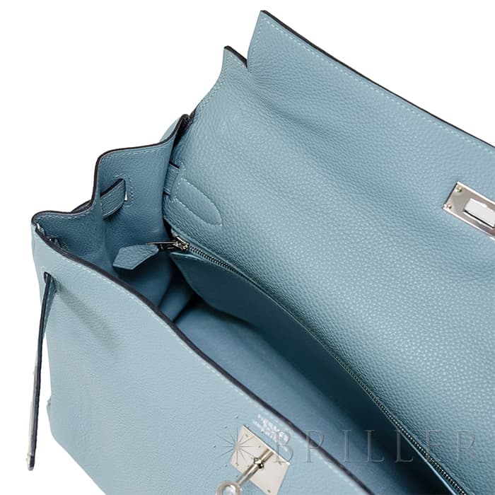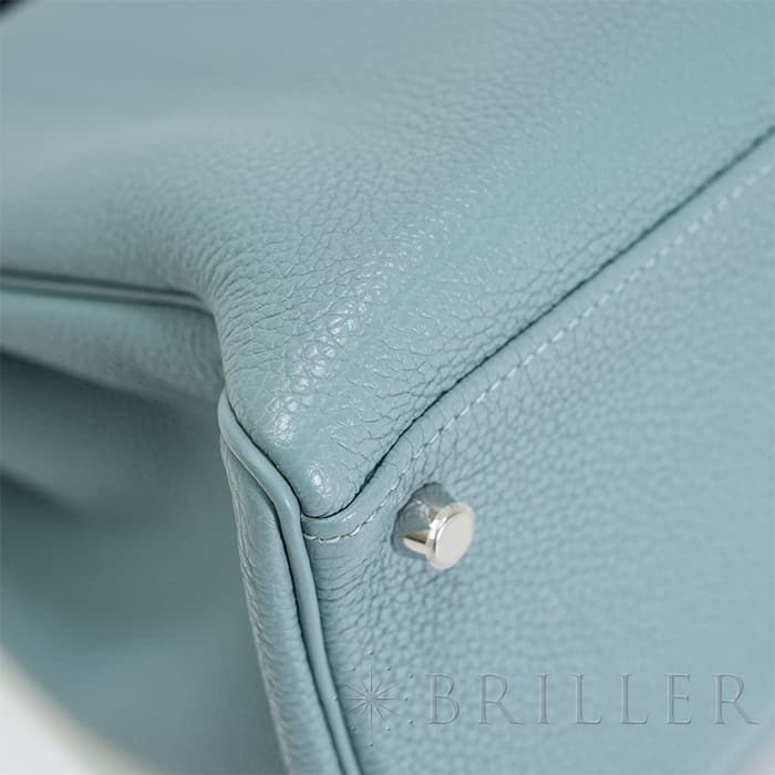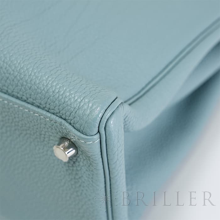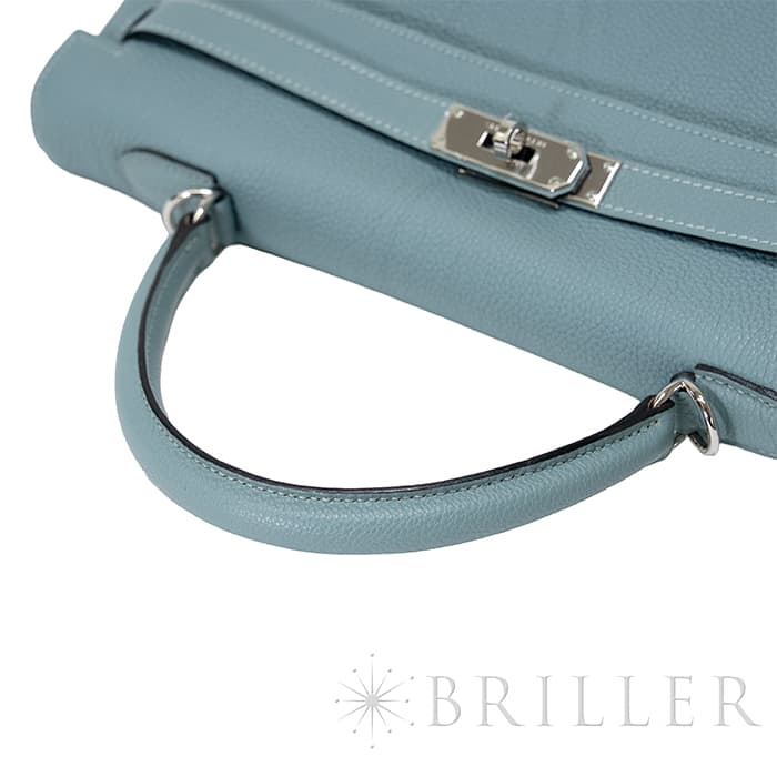エルメスを代表するアイコンバッグ「ケリー」は、1935年に「サック・ア・クロア」として誕生しました。後に女優グレース・ケリーが愛用したことをきっかけに、その名で親しまれる存在となります。こちらは内縫い仕様のケリー35。外縫いに比べて丸みのある柔らかなフォルムが特徴で、上品さの中に穏やかな印象を備えています。容量にもゆとりがあり、500mlのペットボトルや長財布、ポーチ類を収納できる実用的なサイズ感。淡く澄んだブルーが印象的なカラー「シエル」は、爽やかさと落ち着きを兼ね備え、シルバー金具との組み合わせが洗練された表情を演出します。日常から特別なシーンまで、幅広く活躍するエレガントなバッグです。