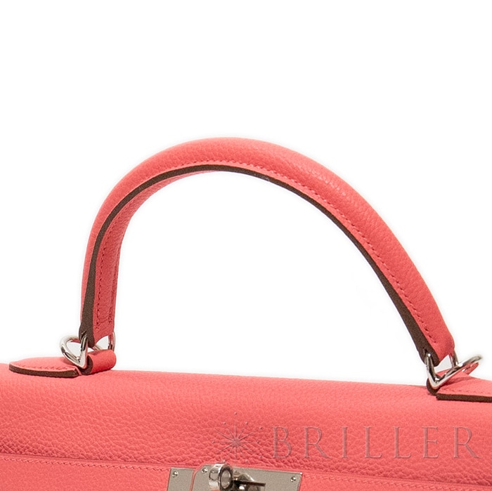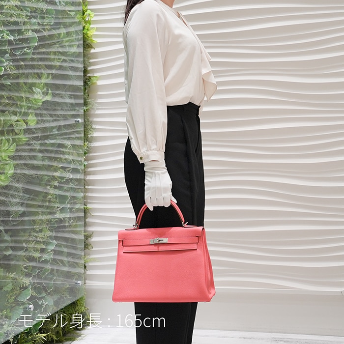 エルメス ケリー32 トゴ ローズリップスティック シルバー金具 HERMES 1935年に「サック・ア・クロア」として誕生し、後にグレース・ケリーが愛用したことで名を広めたケリー。32サイズは収納力と上品さのバランスに優れ、内縫い特有の柔らかなフォルムが日常使いにも自然に馴染みます。ショルダーストラップを使えば両手が空き、外出時にも快適。素材のトゴは使うほどにしなやかさが増し、落ち着いた質感を楽しめます。鮮やかなローズリップスティックにシルバー金具を合わせた華やかな配色が、装いのアクセントとして映えるお品物です。 O刻印(2013年)中古のお品物です。 開口部、四隅、ハンドルの付け根等に擦れがございます。 内部に目立つ傷、擦れ等はなく綺麗な状態です。 ※中古品の特性上、写真に写りきらない微細な傷、スレ、型崩れ等がある場合がございます。