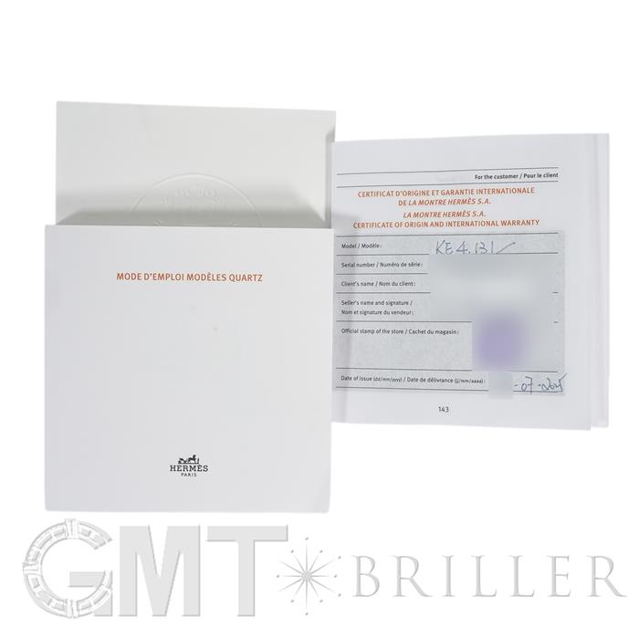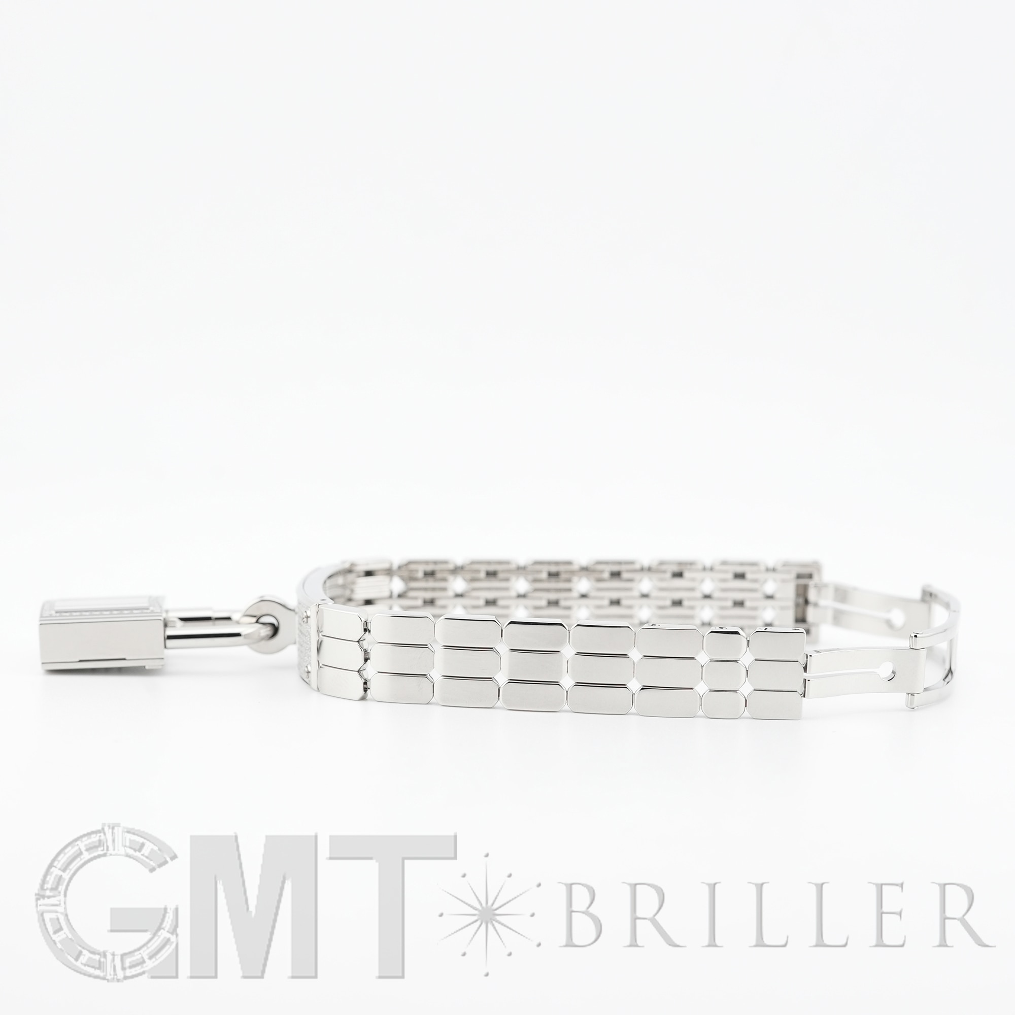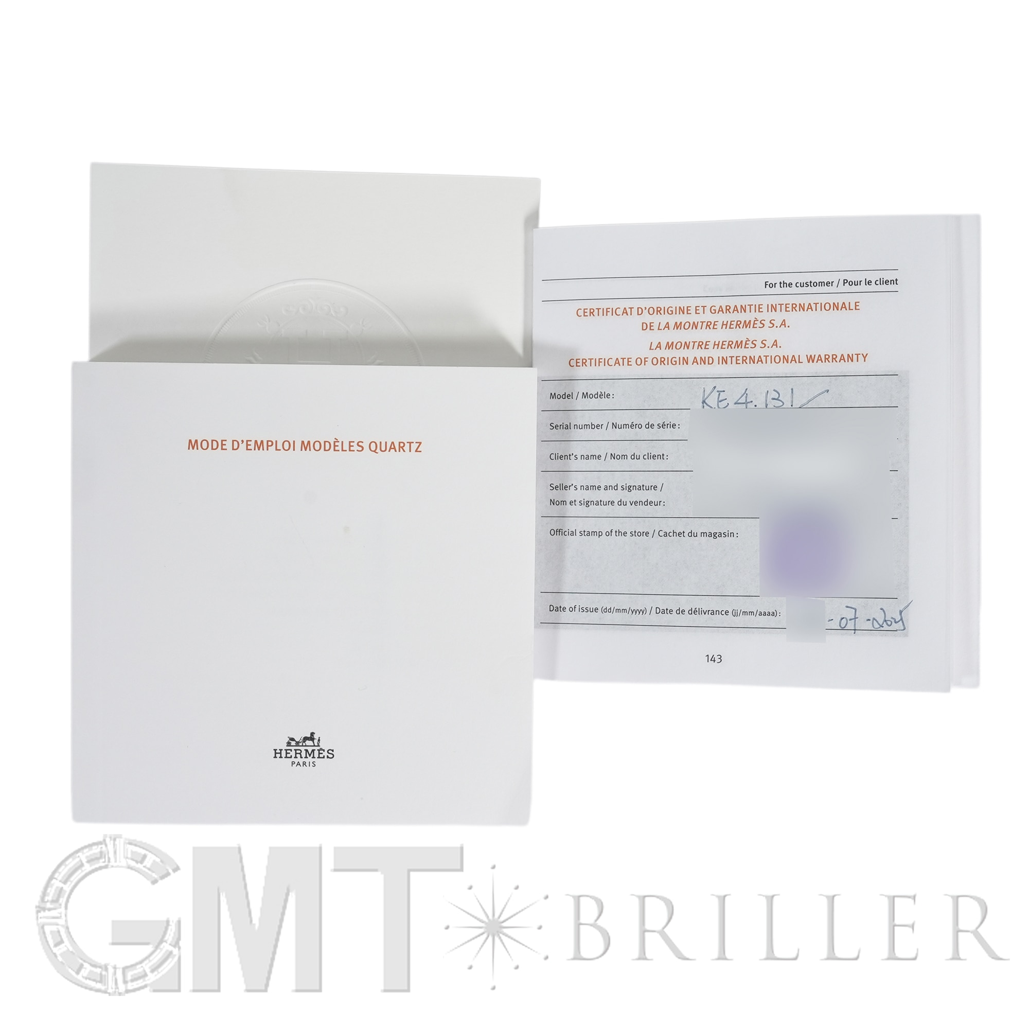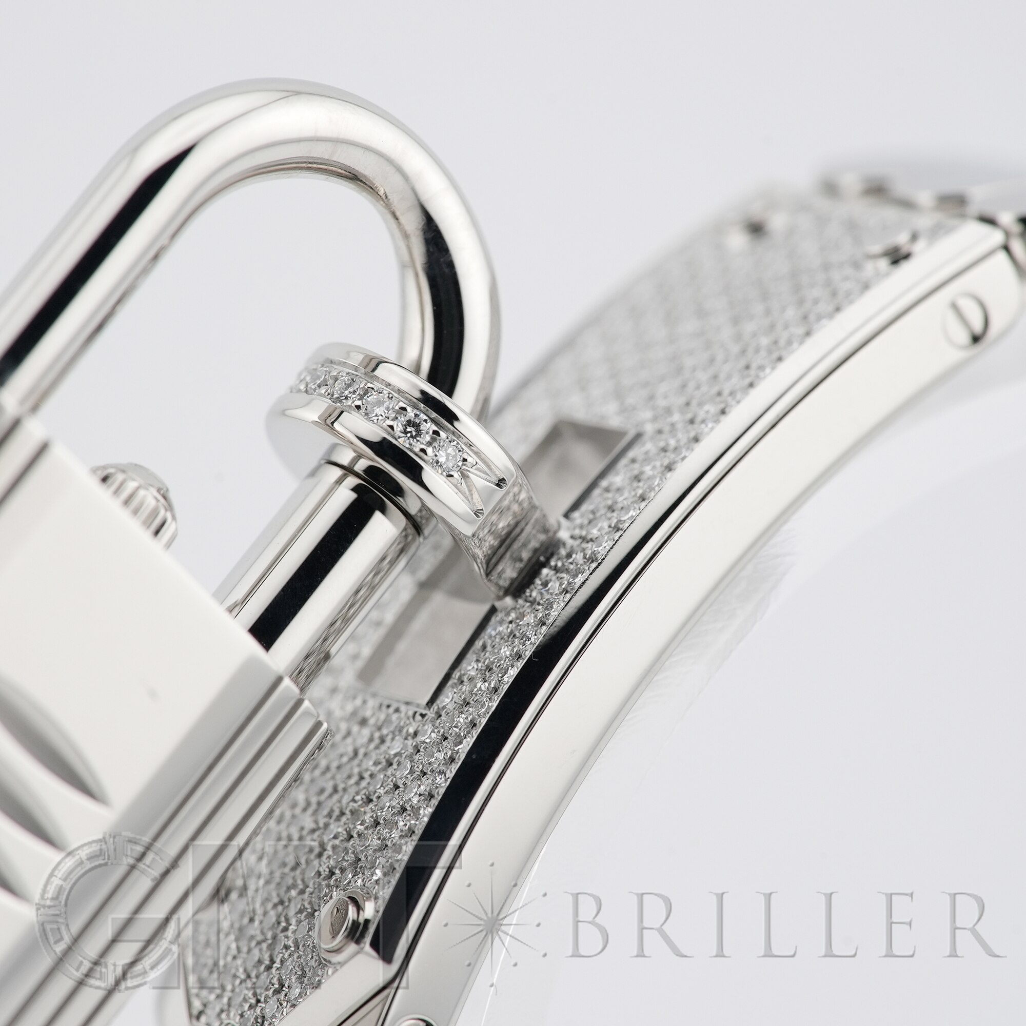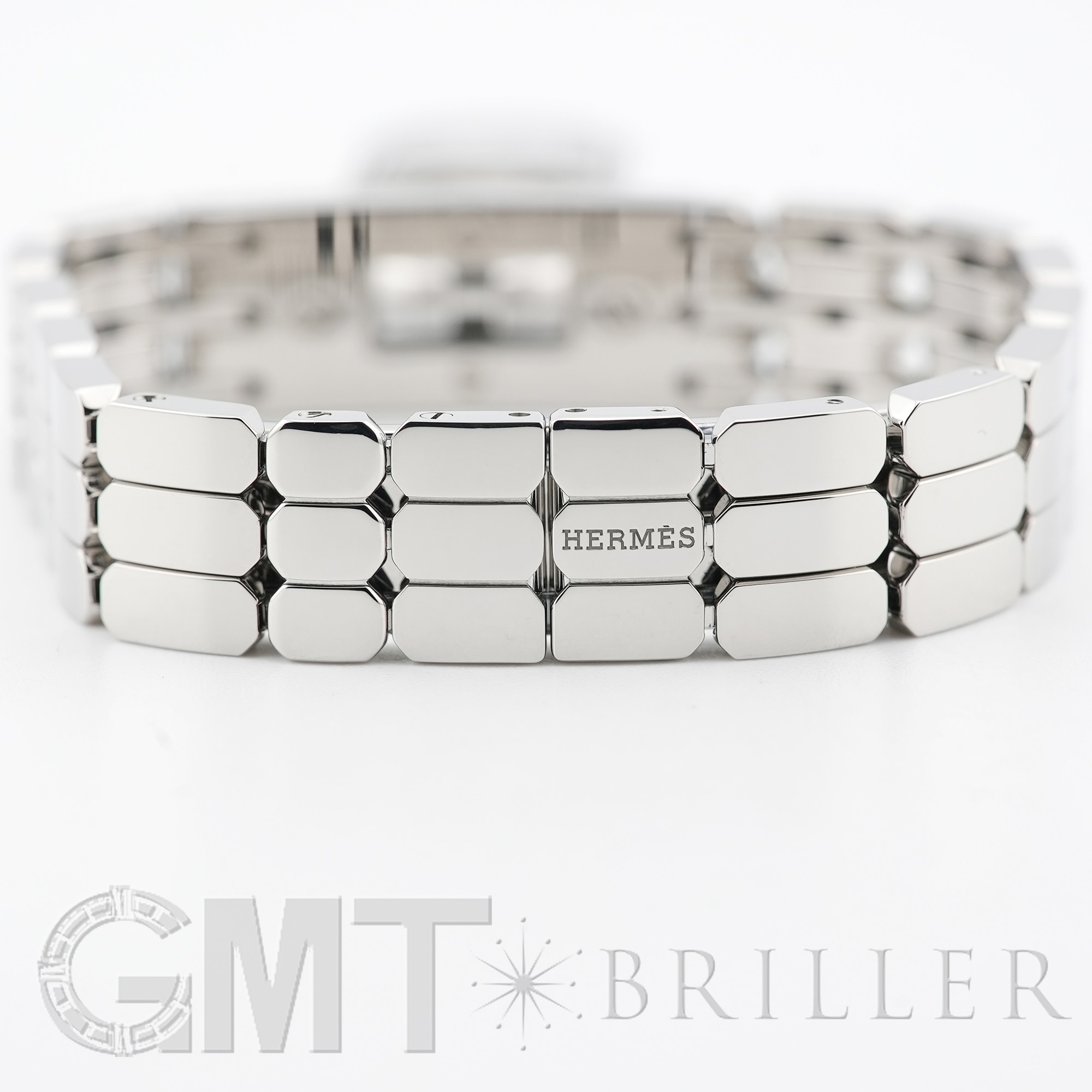 エルメス ケリーウォッチ ホワイトシェル ダイヤモンド KE4.131 HERMESエルメスを象徴する「ケリーバッグ」のカデナ(南京錠)をモチーフにした、まるでジュエリーのような佇まいのケリーウォッチ。立体的に造形されたカデナケースが手元で揺れ、装いにさりげない華やぎを添えます。こちらはステンレススティール製ブレスレットを採用したモデルで、しなやかな着け心地と上品な輝きを両立。ホワイトシェルダイヤルの柔らかな光沢に、ダイヤモンドをあしらったベゼルが気品ある煌めきを演出します。シャックル部分は取り外し可能で、エルメスらしい遊び心も魅力。時計でありながら、アクセサリー感覚で楽しめるエレガントな一本です。保証書日付 2025年7月中古のお品物ではございますが、ご着用時に気になる傷はございません。当社の中古品はインターネットでも安心してご購入頂けるよう、しっかりとした点検整備を行っております。エルメス 買取り・下取りも行っておりますので、お気軽にご相談ください。