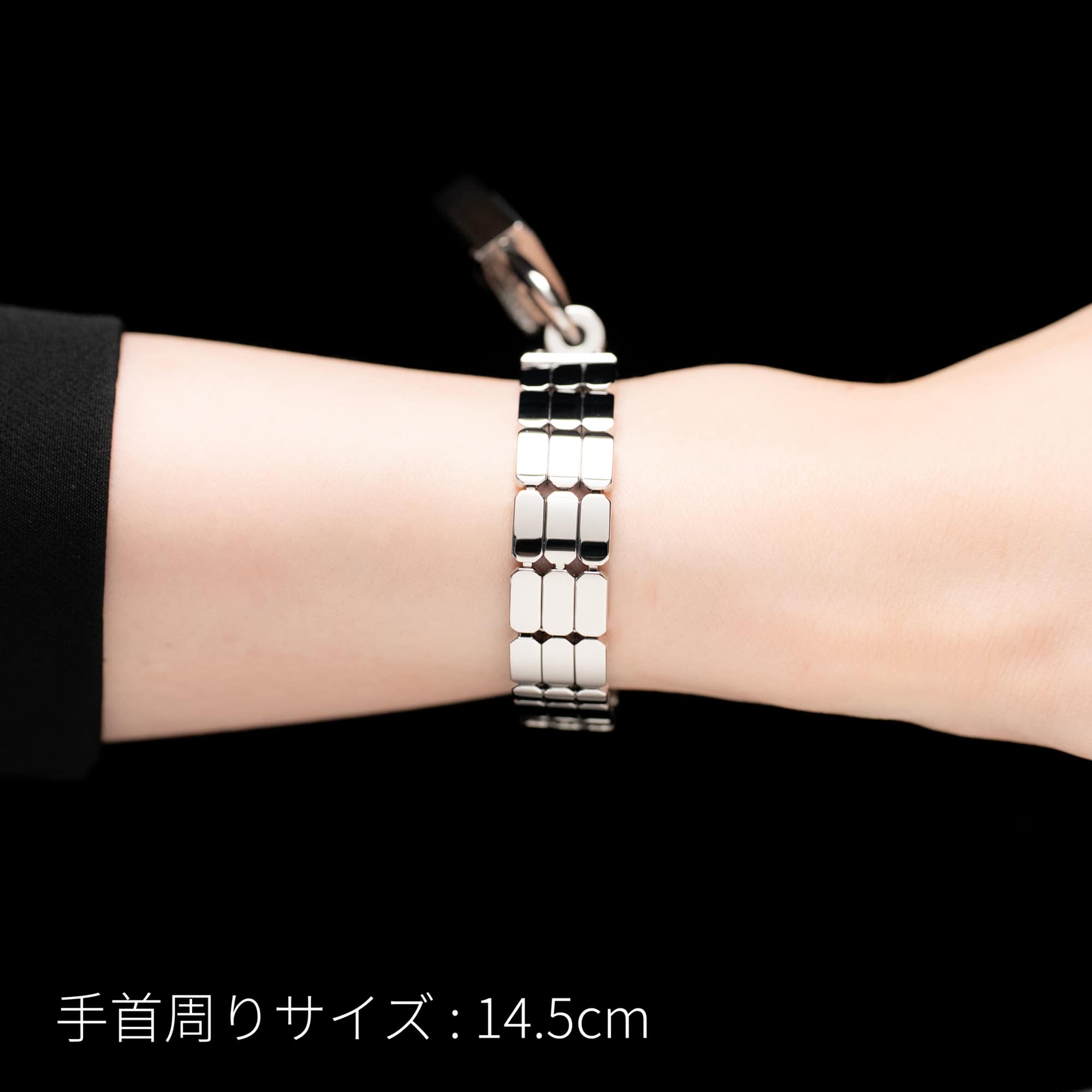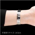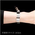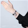メジャーを手首に巻きつけて、手首のサイズを測ります。 サイズを確認して、ピッタリのサイズをお知らせください。お知らせいただいたサイズを元に、「標準的な余裕」がでるようにブレスレットサイズを調整いたします。 写真の場合、手首周りは「14cm」となります。