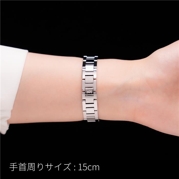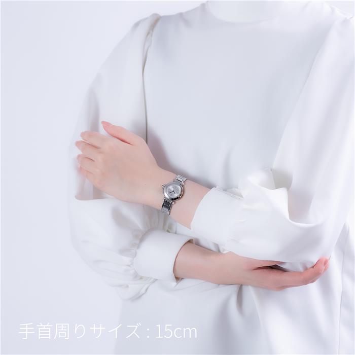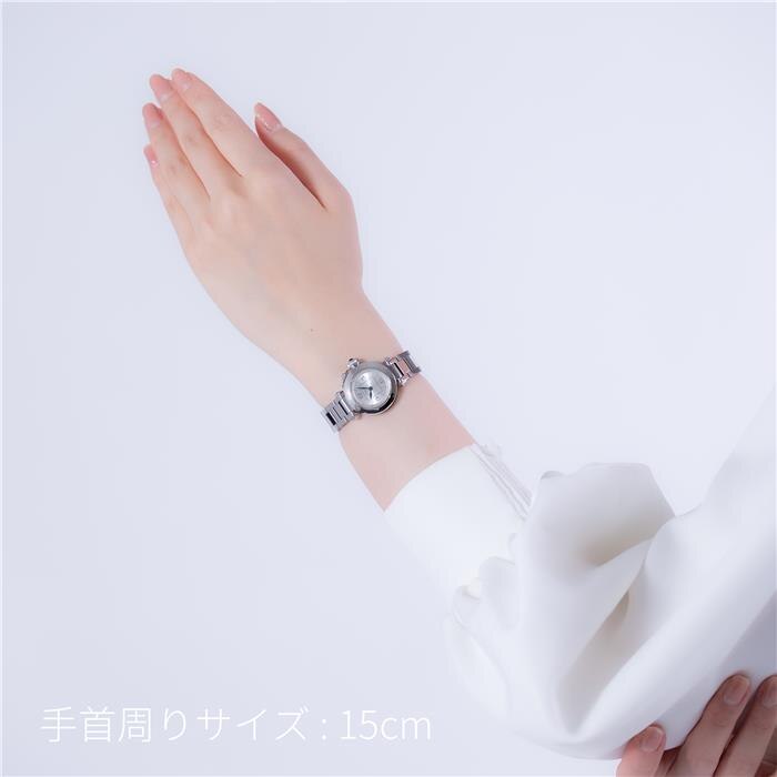 丸みを帯びた愛らしいフォルムが魅力的な「ミスパシャ」。 シルバー文字盤には、象徴的なアラビア数字が気品豊かに並びます。 ブルースティールの剣型針が、高い視認性と洗練された表情を演出。 27mmの小ぶりなケースは、女性の華奢な手首に優しくフィットします。 滑らかなブレスレットは、美しい装飾性と快適な着け心地を両立。 鎖でつながれたリューズプロテクターが、手元に程よい遊び心を添えてくれます。 傷に強いサファイア風防を備え、美しい輝きを長く保つことが可能。 日常防水と高精度のクォーツムーブメントを搭載し、実用性も抜群です。 どのような装いにも上品に寄り添い、確かな存在感を放ちます。 日々のあらゆる瞬間を美しく彩る、エレガントなタイムピースです。