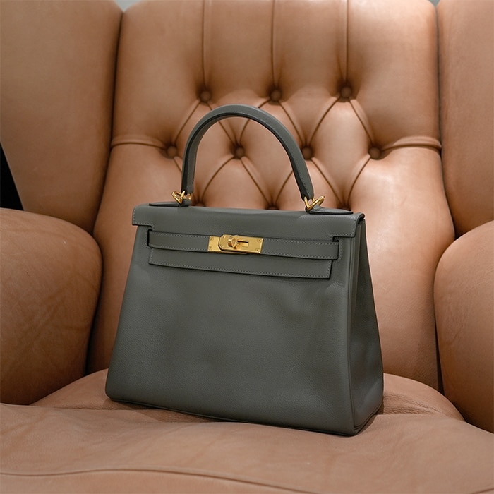 エルメスを代表するアイコンバッグ「ケリー」。端正な台形フォルムと気品ある佇まいは、世代を超えて愛され続けています。こちらは柔らかな印象を備える内縫い仕様のケリー28。丸みを帯びたシルエットが上品で、落ち着いたエレガンスを演出します。素材には滑らかで程よい張り感が魅力のエバーカラーを採用し、日常使いにも適した耐久性を備えています。上品で落ち着いたグリメイヤーにゴールド金具を組み合わせ、控えめながらも華やかさを感じさせる洗練された一品です。
