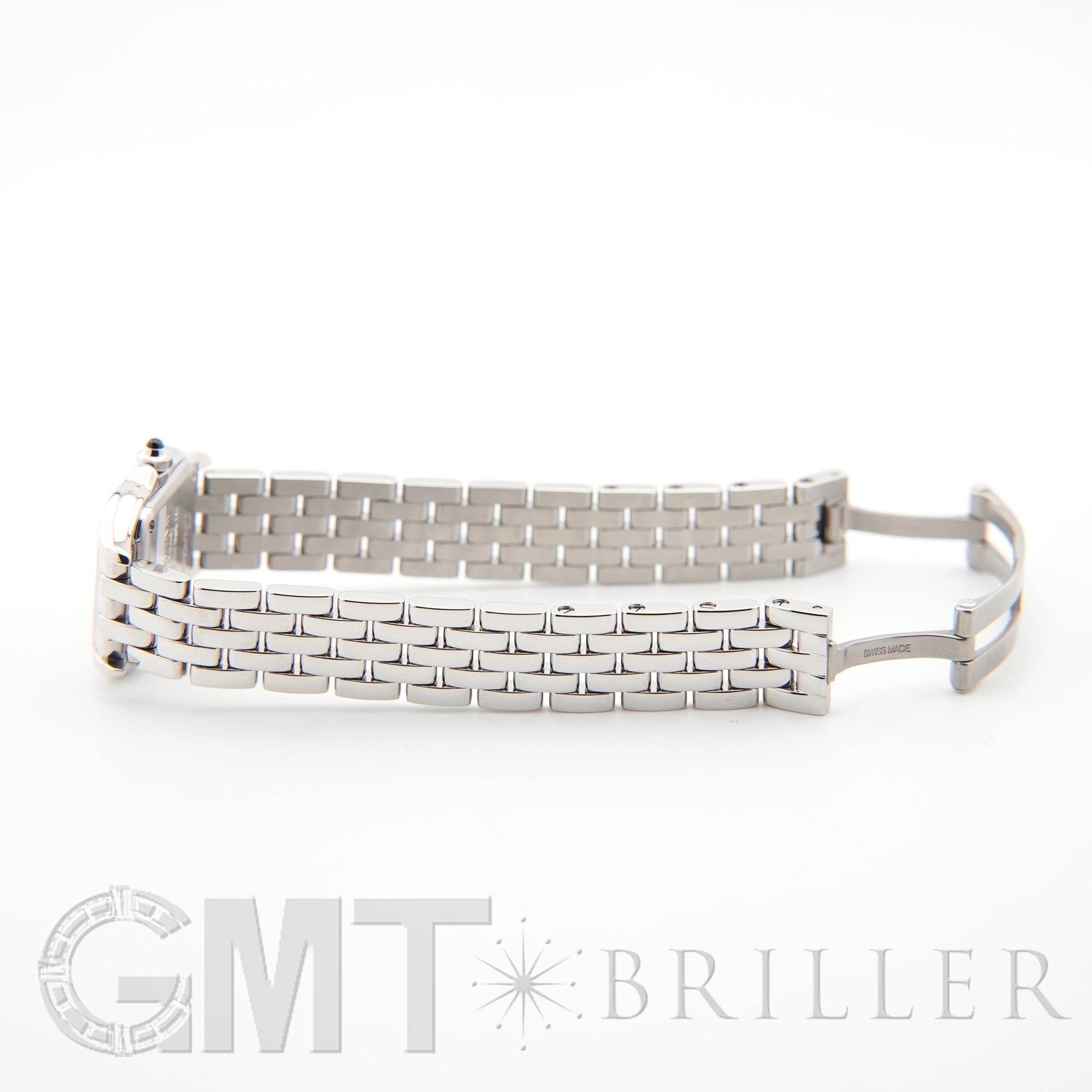 フランスの名門メゾン Cartier を象徴するアイコンウォッチ「パンテール ドゥ カルティエ」。1980年代に誕生し、ジュエリーウォッチの名作として世界中で高い人気を博したコレクションです。その名はフランス語で“豹”を意味し、ブランドの象徴としてジュエリーラインにも度々登場するモチーフ。本モデル「W4PN0016」は、優雅な輝きを纏うベゼルダイヤ仕様のラグジュアリーな一本です。端正なスクエアケースと、パンテールを象徴するしなやかな5連ブレスレットが洗練された存在感を演出。ブレスレットは滑らかに腕元へ沿い、ジュエリーのような快適な装着感を実現しています。ケース素材にはステンレススティールを採用し、日常使いにも適した実用性を確保。さらにベゼルにはダイヤモンドをセッティングし、華やかな輝きを添えています。コンパクトなSMサイズは上品なバランスで、女性の腕元を美しく引き立てます。時計でありながらジュエリーとしての美しさを兼ね備えたエレガントなタイムピースです。カルティエならではの美意識と気品を堪能できる、魅力あふれる一本です。