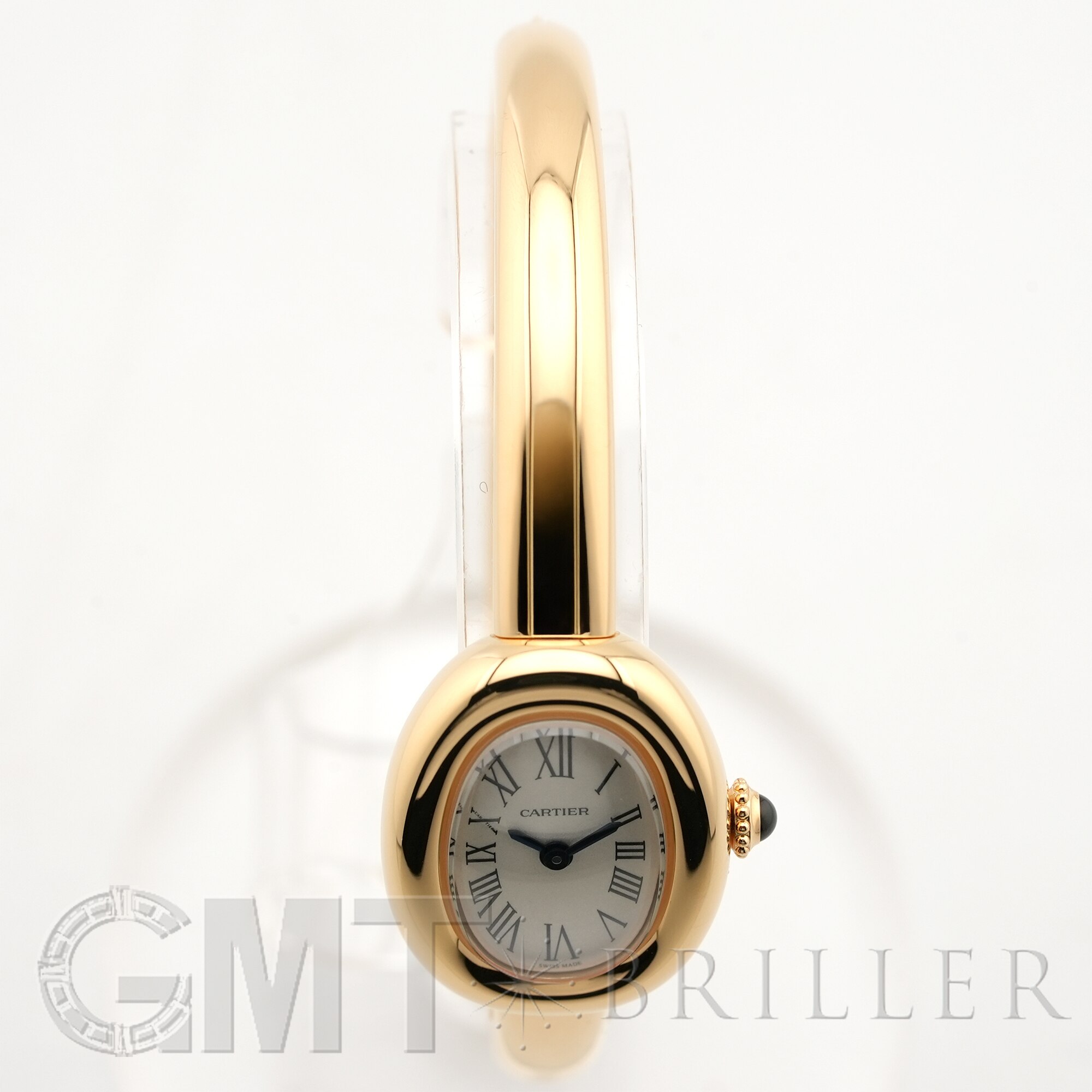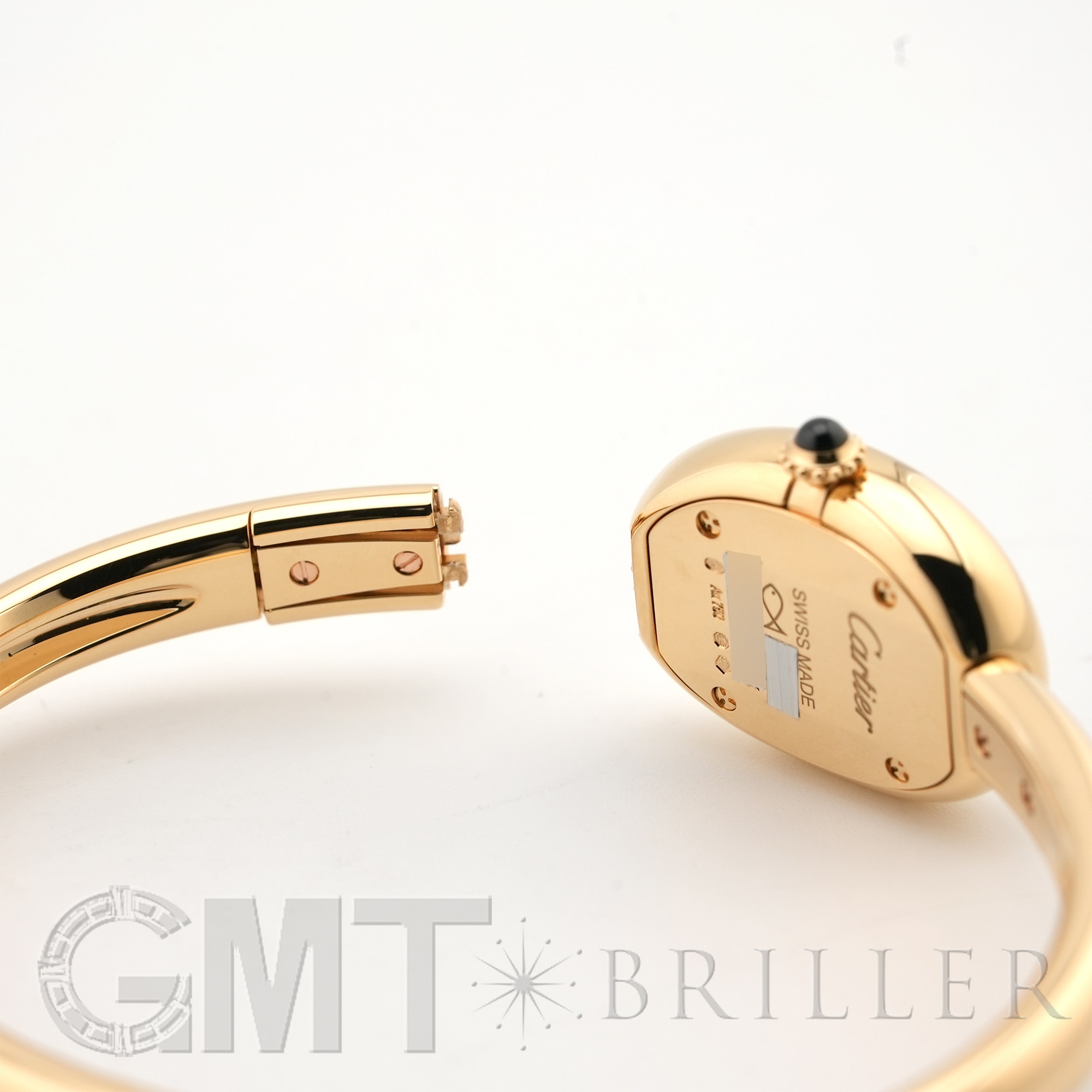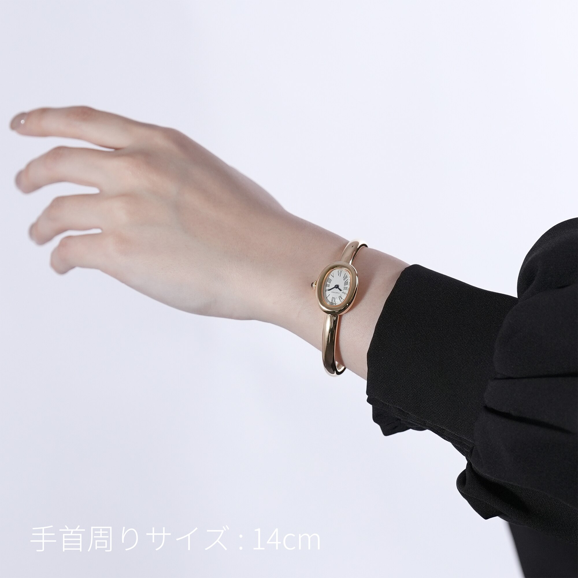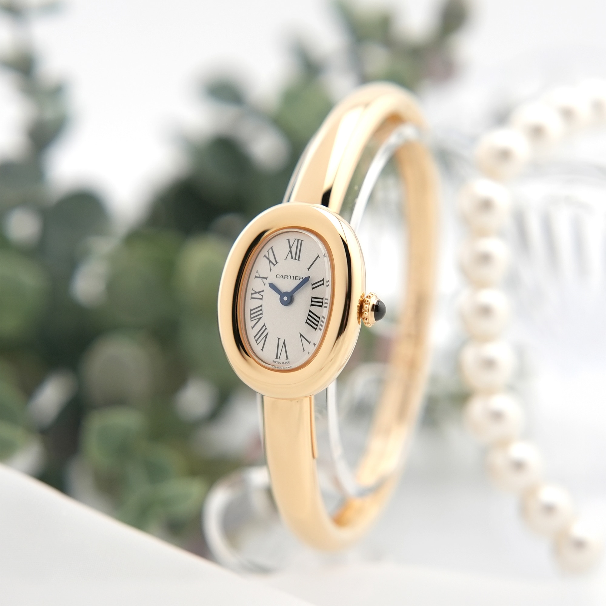 カルティエ ベニュワール ウォッチ (サイズ16) ミニモデル イエローゴールド WGBA0045 Cartierカルティエの優美なデザインを体現する「ベニュワール」ミニモデル。18Kイエローゴールドを贅沢に使用した丸みのあるケースが、クラシカルな気品と現代的な洗練を兼ね備えた手元を演出します。シルバー文字盤にローマンインデックスとブルースチール針を組み合わせた上品なコントラストも魅力。ジュエリーのような一体感をもつバングルブレスレットは、なめらかな着け心地で手元を華やかに彩ります。リューズにあしらわれたサファイアカボションも象徴的なディテール。クォーツムーブメントによる高い実用性も備えた、エレガントなタイムピースです。保証書日付 2026年1月【未使用】※コンディションにつきまして、展示や輸送の過程で生じたスレや細かい傷が見受けられる場合がございますが、使用履歴のない「未使用」状態となります。カルティエ時計の買取りも行っておりますので、お気軽にご相談ください。