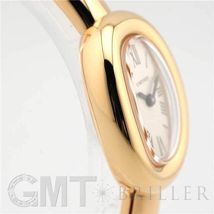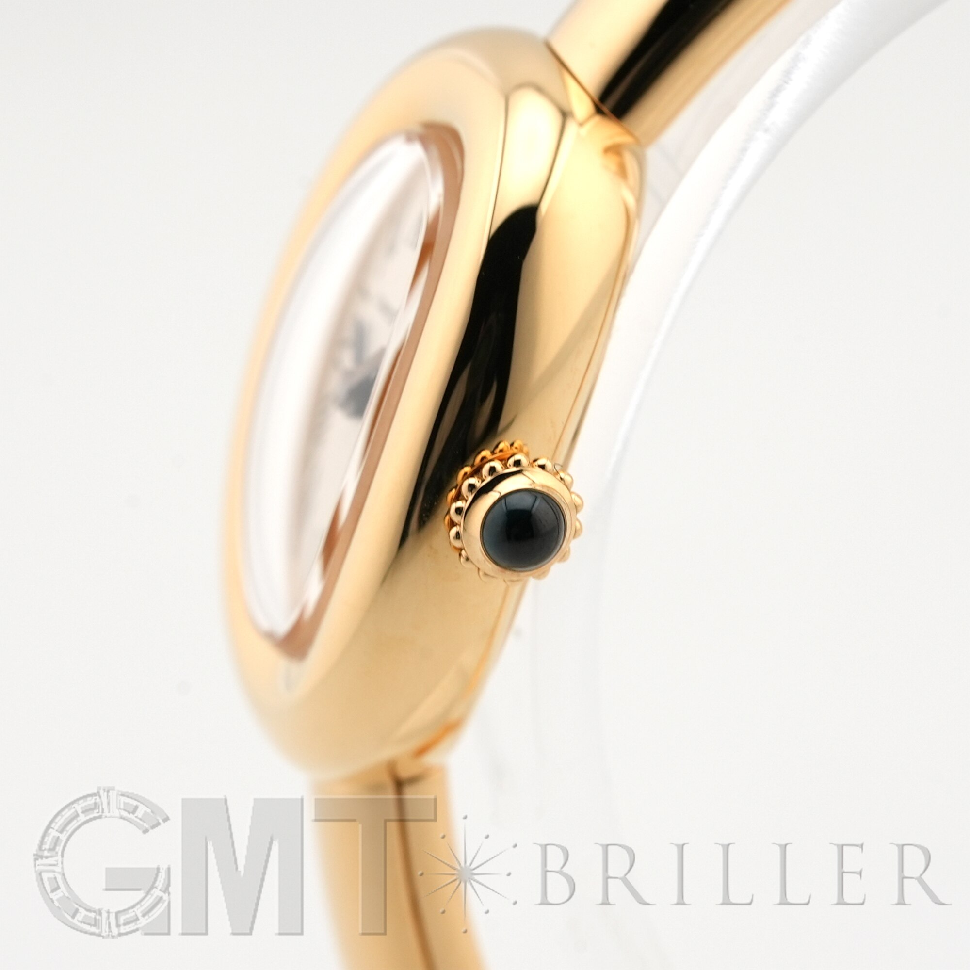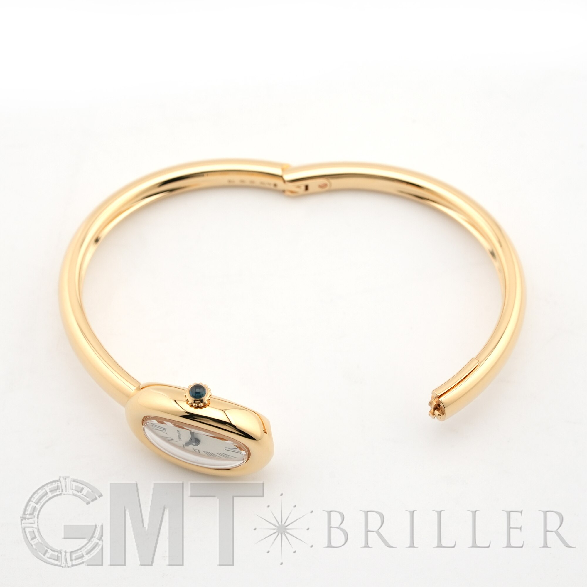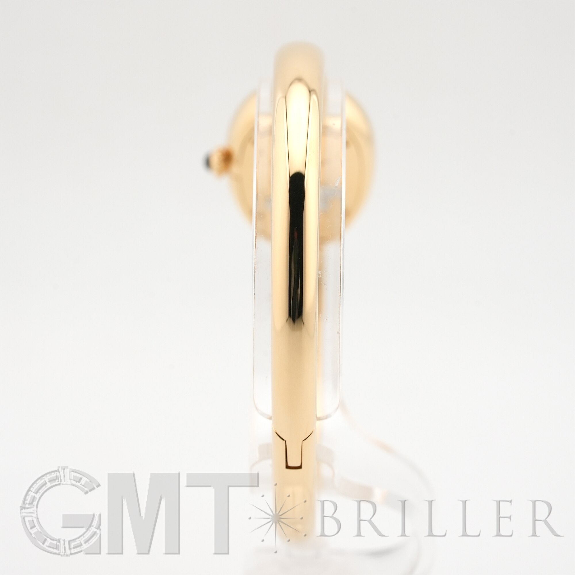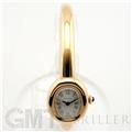 カルティエ ベニュワール ウォッチ (サイズ16) ミニモデル イエローゴールド WGBA0045 Cartierカルティエの優美なデザインを体現する「ベニュワール」ミニモデル。18Kイエローゴールドを贅沢に使用した丸みのあるケースが、クラシカルな気品と現代的な洗練を兼ね備えた手元を演出します。シルバー文字盤にローマンインデックスとブルースチール針を組み合わせた上品なコントラストも魅力。ジュエリーのような一体感をもつバングルブレスレットは、なめらかな着け心地で手元を華やかに彩ります。リューズにあしらわれたサファイアカボションも象徴的なディテール。クォーツムーブメントによる高い実用性も備えた、エレガントなタイムピースです。保証書日付 2026年1月【未使用】※コンディションにつきまして、展示や輸送の過程で生じたスレや細かい傷が見受けられる場合がございますが、使用履歴のない「未使用」状態となります。カルティエ時計の買取りも行っておりますので、お気軽にご相談ください。