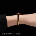 メジャーを手首に巻きつけて、手首のサイズを測ります。 サイズを確認して、ピッタリのサイズをお知らせください。お知らせいただいたサイズを元に、「標準的な余裕」がでるようにブレスレットサイズを調整いたします。 写真の場合、手首周りは「14cm」となります。