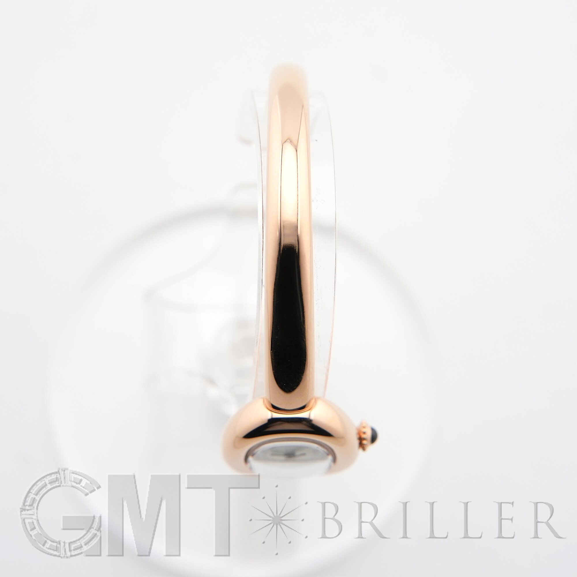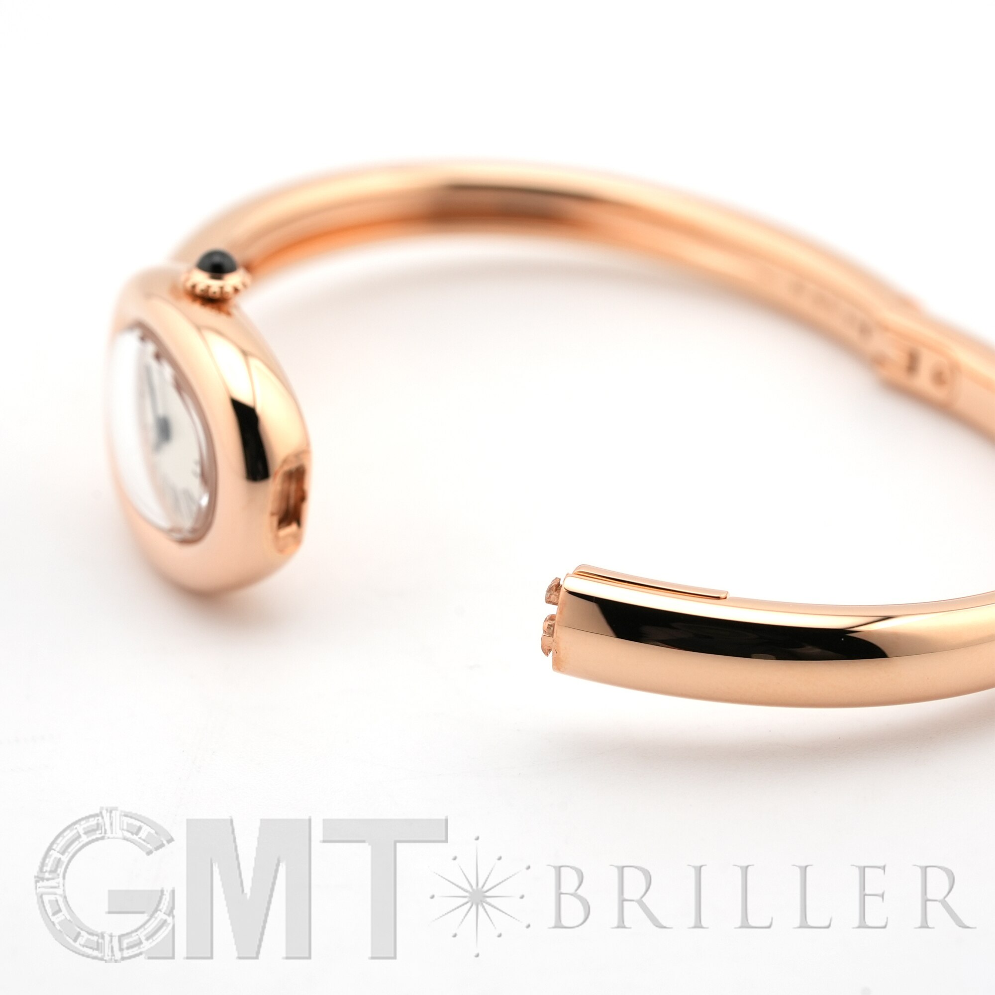 独創的なオーバルシェイプが印象的な「ベニュワール」ミニモデル。フランス語で“バスタブ”を意味する名の通り、ふくよかでなめらかな曲線を描くケースが手元を優美に演出します。素材にはピンクゴールドを採用し、柔らかな光沢が上品な華やかさを添えます。ケースとブレスレットが一体となった流れるようなデザインは、リューズなどの突起を抑えることで純粋な曲線美を強調。時計でありながら上質なジュエリーのような存在感を放ちます。単体使いはもちろん、重ね付けにも映える洗練された一本です。