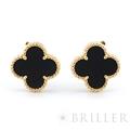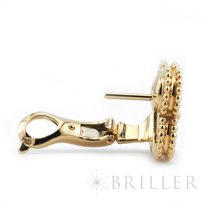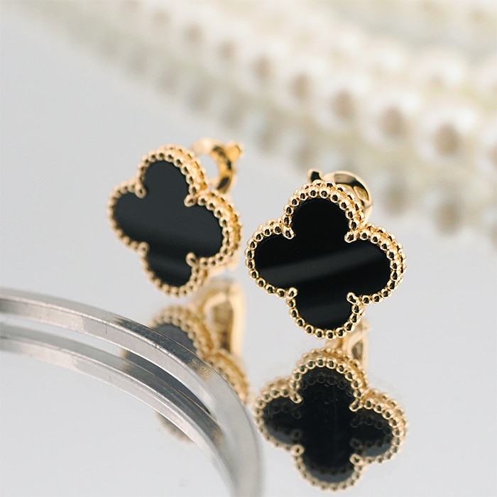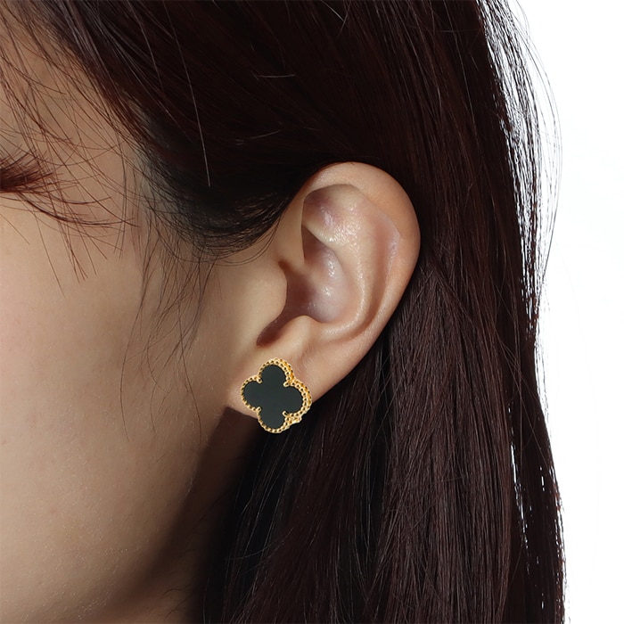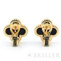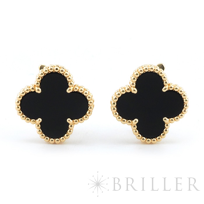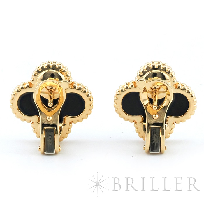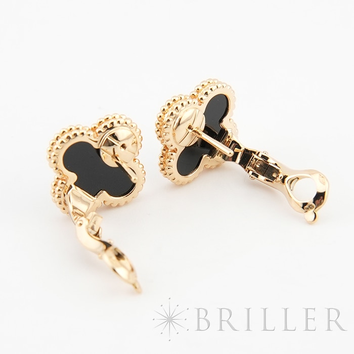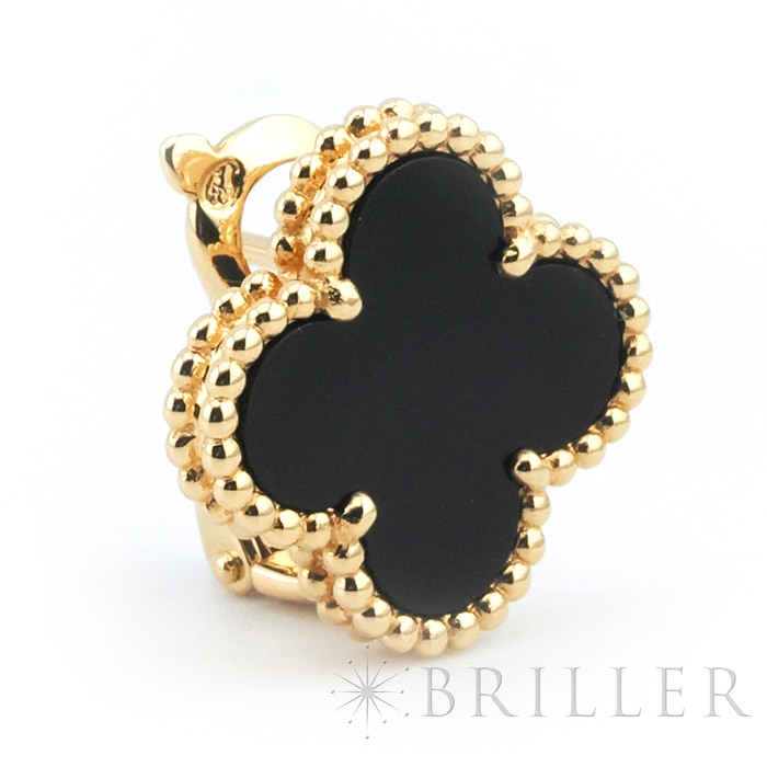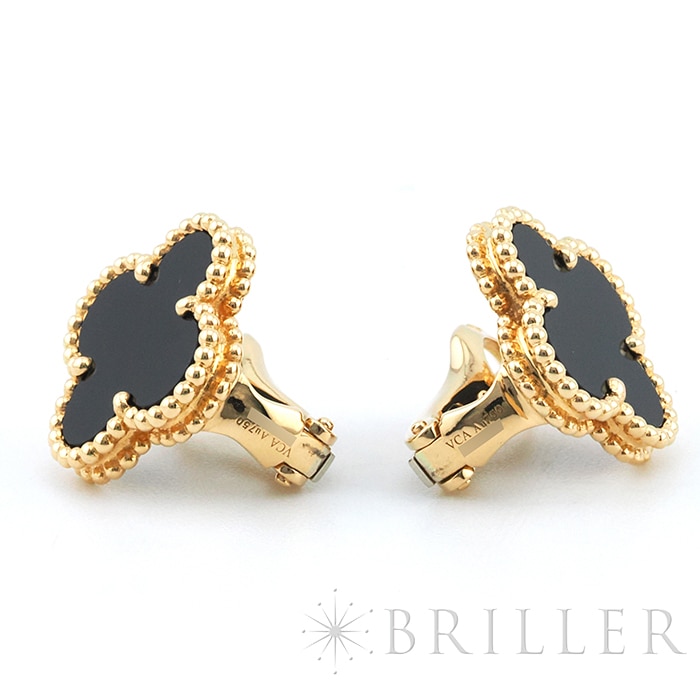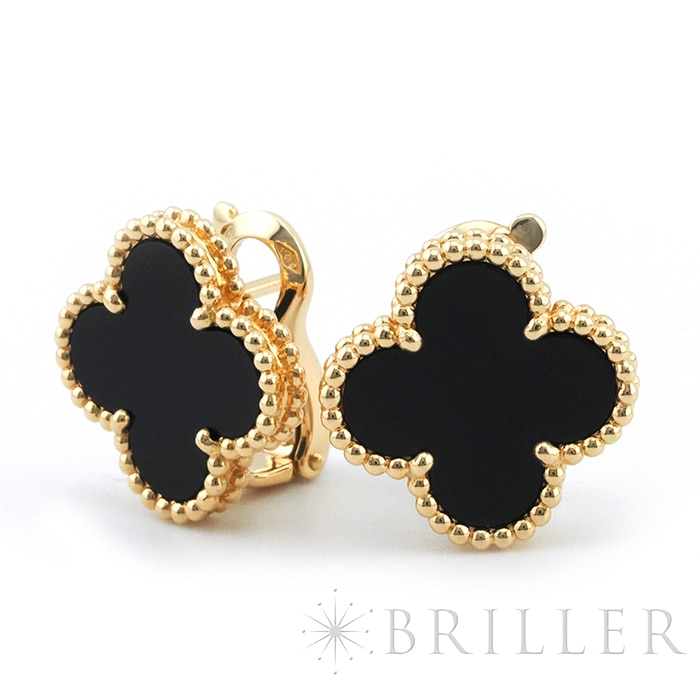 ヴァンクリーフ&アーペル ヴィンテージ アルハンブラ イヤリング オニキス イエローゴールド Van Cleef & Arpelsヴァン クリーフ&アーペルを象徴する「ヴィンテージ アルハンブラ」イヤリング。幸運の象徴である四つ葉のクローバーをモチーフに、艶やかなオニキスをセッティングした洗練のモデルです。深みのあるブラックとイエローゴールドのコントラストが際立ち、顔まわりを引き締めつつ上品な存在感を演出します。甘さを抑えたシックな印象で、カジュアルからフォーマルまで幅広く活躍。流行に左右されないタイムレスなデザインで、長く愛用いただける人気アイテムです。証明書日付 2014年10月中古のお品物ではございますが、ご着用時に気になる傷はございません。