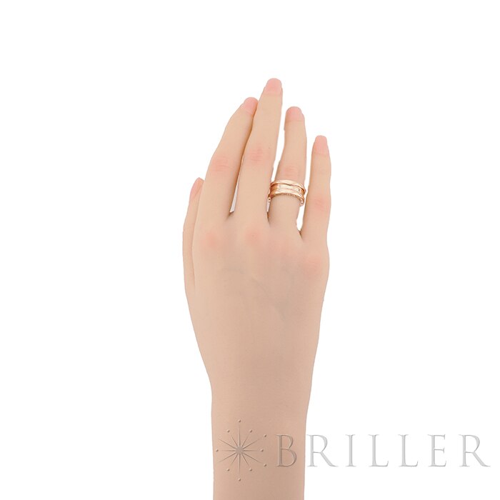 イタリア・ローマが誇る円形競技場「コロッセオ」からインスピレーションを得て1999年に誕生した、ブルガリの永遠のアイコン「ビー・ゼロワン」。象徴的なダブルロゴと、。指先の動きに合わせて内側のスパイラルが微細に可動する精巧な作りが目を惹きます。こちらは中央部分が3連になった、程よいボリューム感の「3バンドリング」。単体で着けても手元に確かな存在感を放ち、洗練された大人のデイリースタイルを格上げしてくれる、エレガントな逸品です。