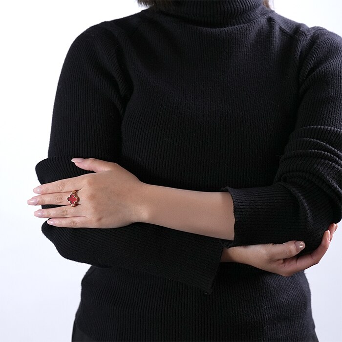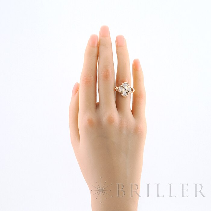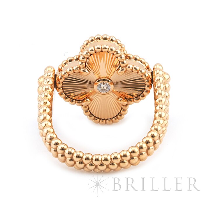 ヴァンクリーフ&アーペルの象徴とも言える「アルハンブラ」コレクション。2024年に登場したこちらのリングはリバーシブルでお楽しみいただけます。 本モデルは、メゾンの独創性を体現するリバーシブル仕様が魅力です。 モチーフ部分を回転させることで、異なる2つの表情をお楽しみいただけます。 片面には、温かみのある色彩が魅力のカーネリアンをセット。 もう一方には、繊細なギヨシェ彫りが施されたローズゴールドに、ダイヤモンドがさりげなく輝きを添えます。 ゴールドビーズによる縁取りがアルハンブラらしい優雅さを引き立て、手元に洗練された存在感を演出。 装いや気分に合わせて表情を変えられる、タイムレスな魅力を宿す特別なリングです。